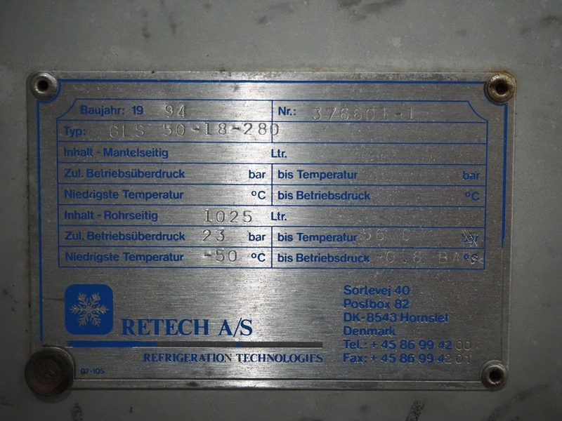 - 2 Retech evaporator blocks for spiral freezer installation, type: GLS 50-18-280, dimensions: (2x) 3500 mm x 2800 mm x 1650 mm;