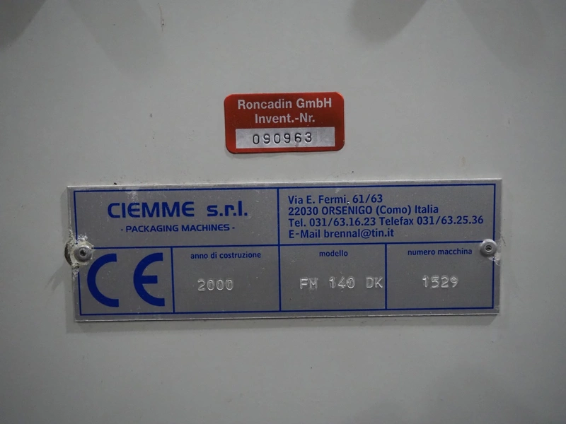 - Ciemme carton erector, model: FM 140 DK, number: 1529, year of construction: 2000, dimensions: 1900 mm x 1450 mm x 2200 mm;