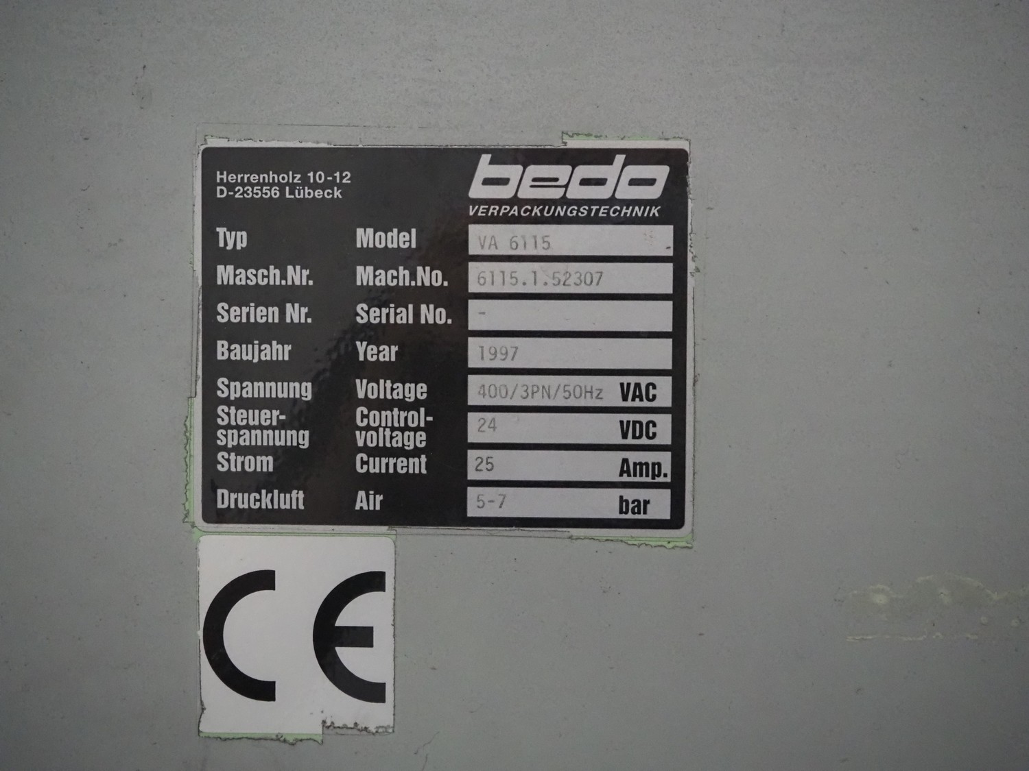 - Bedo box closing machine, model: VA 6115, number: 6115.1.52307, dip and transfer unit, dimensions: 3550 mm x 2450 mm x 2250 mm;