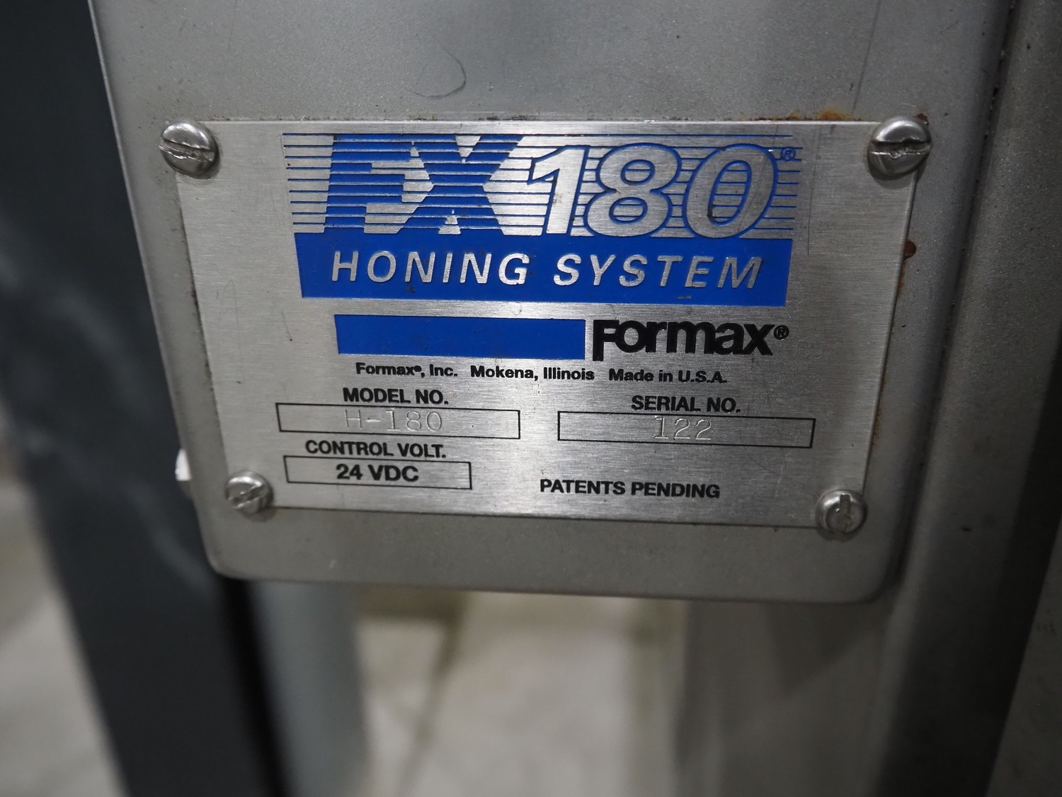 Formax knife sharpener, model number: H-180, serial number: 122, 24 VDC, dimensions: 1020 mm x 810 mm x 1940 mm.