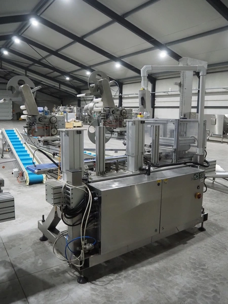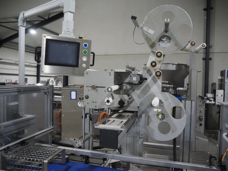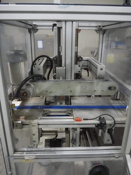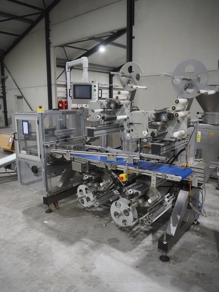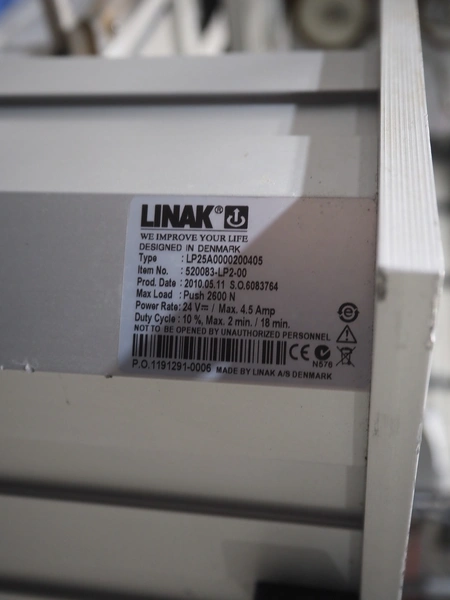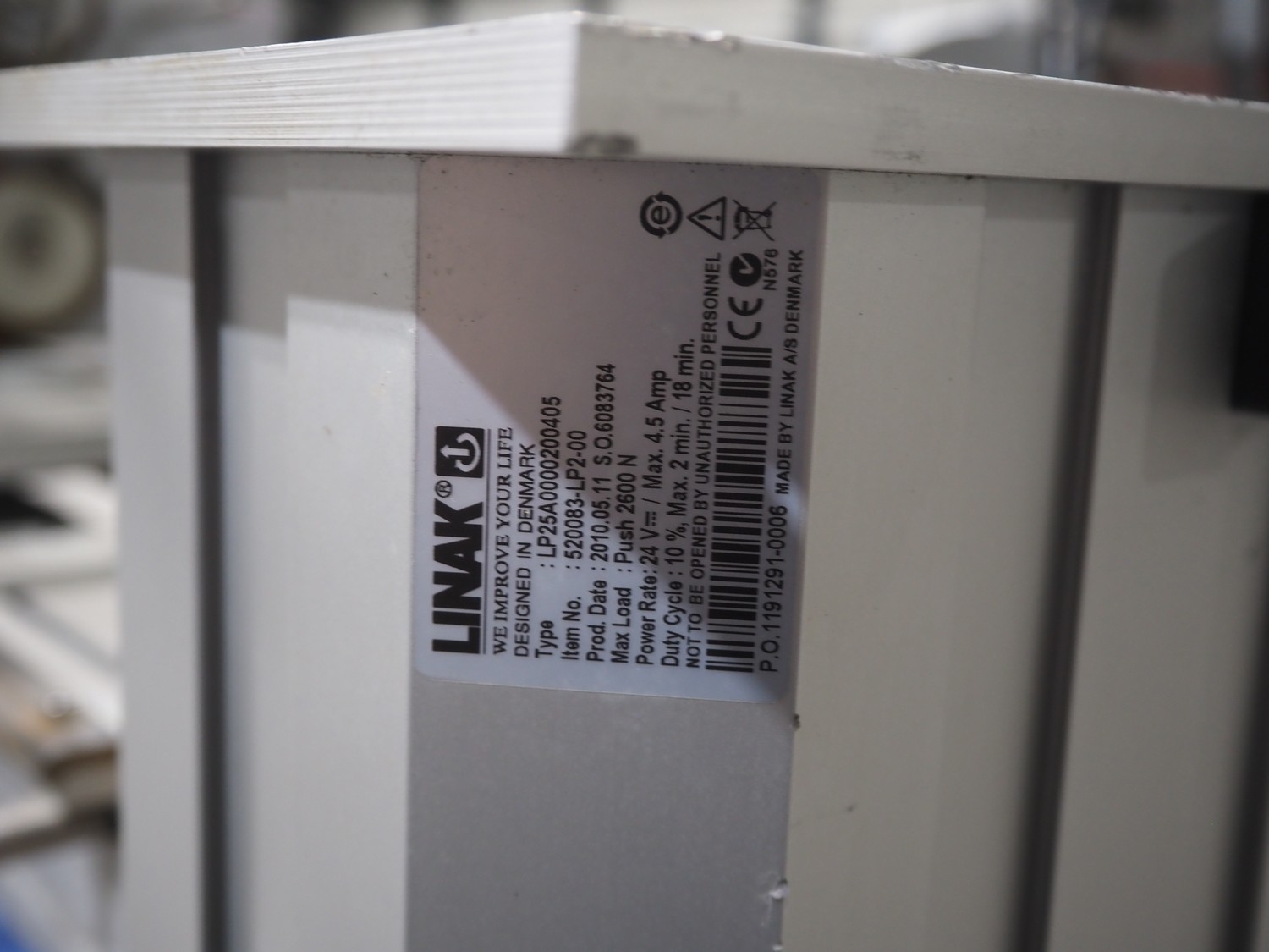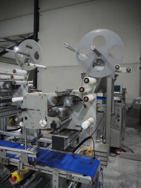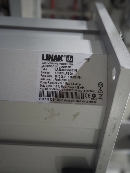 Linak A/S labeller with double top and double bottom labeller, type: LP25A0000200405, plastic belt, belt width: 285 mm, total dimensions: 2600 mm x 1200 mm x 2010 mm. Technical condition unknown.