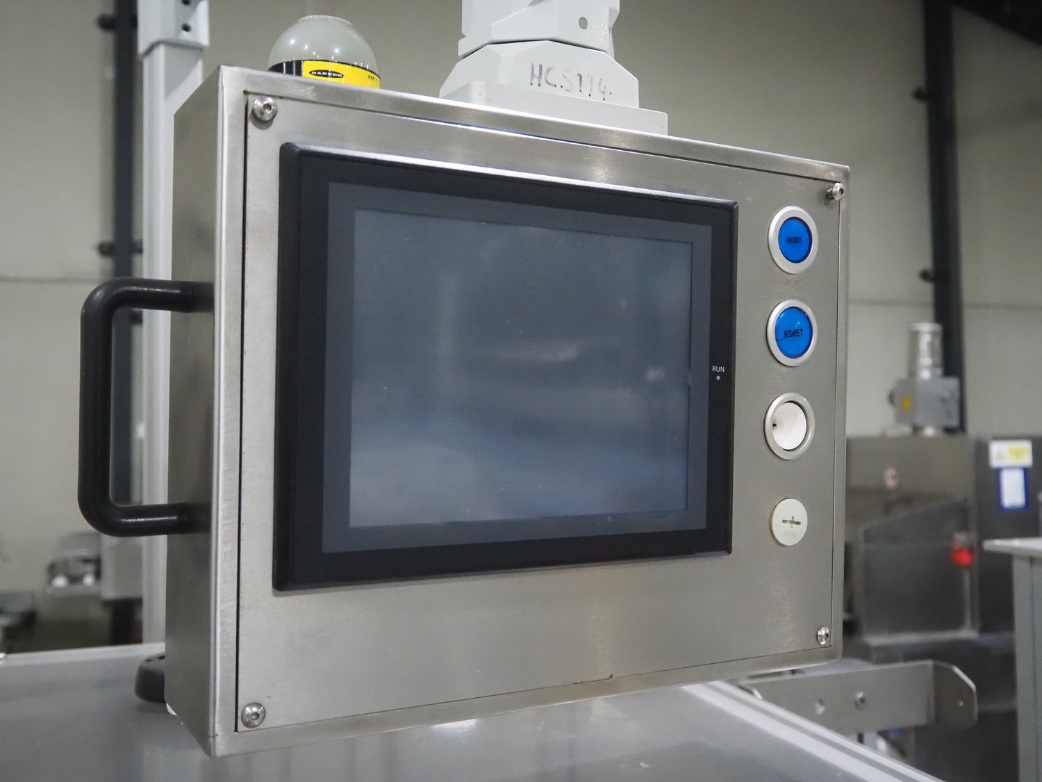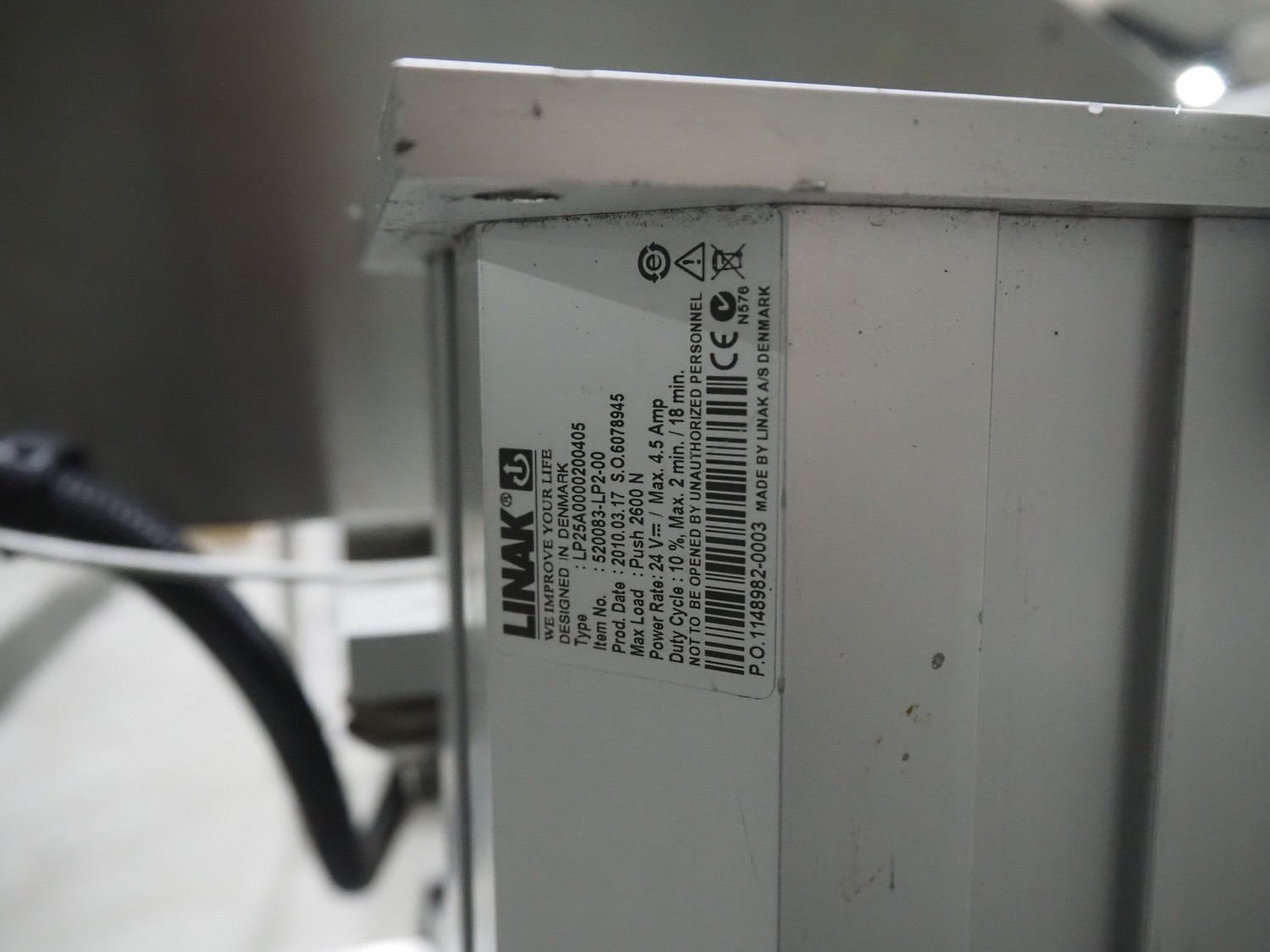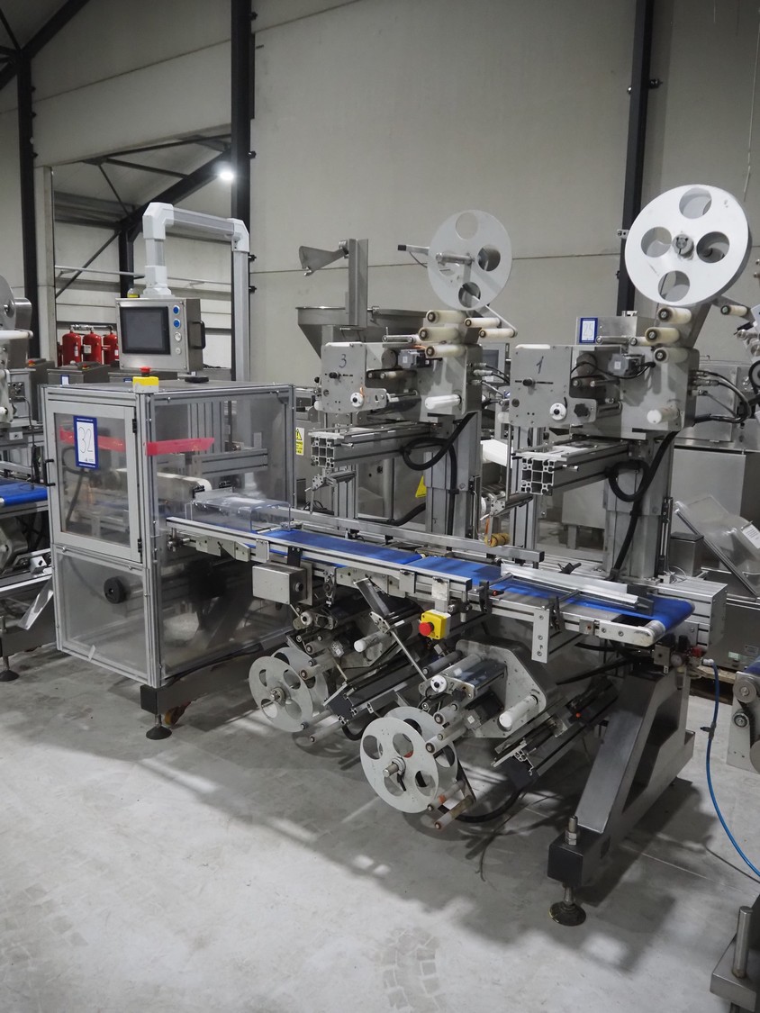 Linak A/S labeller with double top and double bottom labeller, type: LP25A0000200405, plastic belt, belt width: 285 mm, total dimensions: 2600 mm x 1200 mm x 2010 mm. Technical condition unknown.