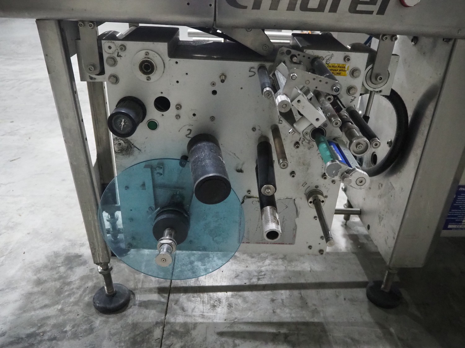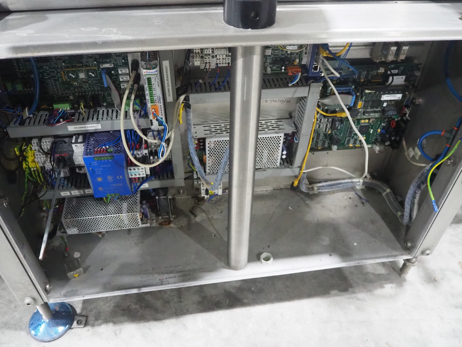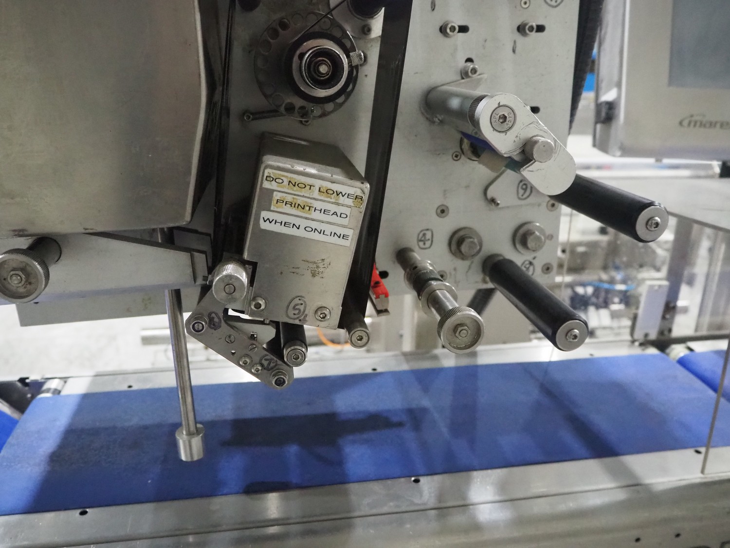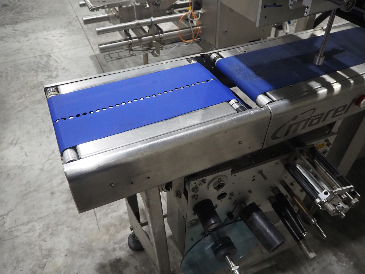 Marel / AEW Delford weighing and labelling machine, model: 9060, serial number: 1049954496084, Max capacity: 5.5 kg, 230 V, 50 Hz, belt speed: 0.3-0.5 m/s, plastic belt, belt width: 195 mm, total dimensions: 2600 mm x 650 mm x 1780 mm.