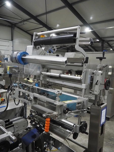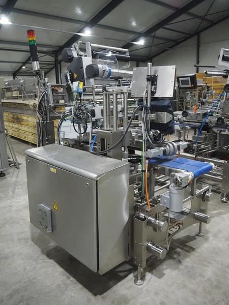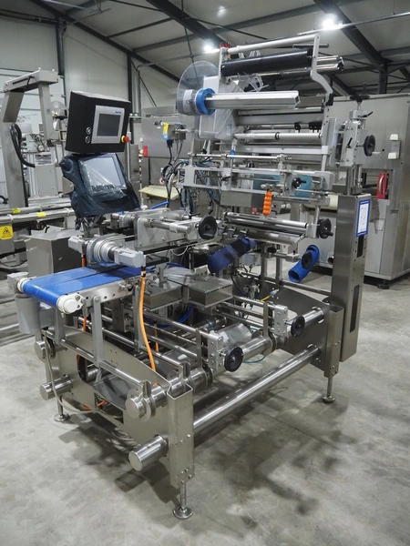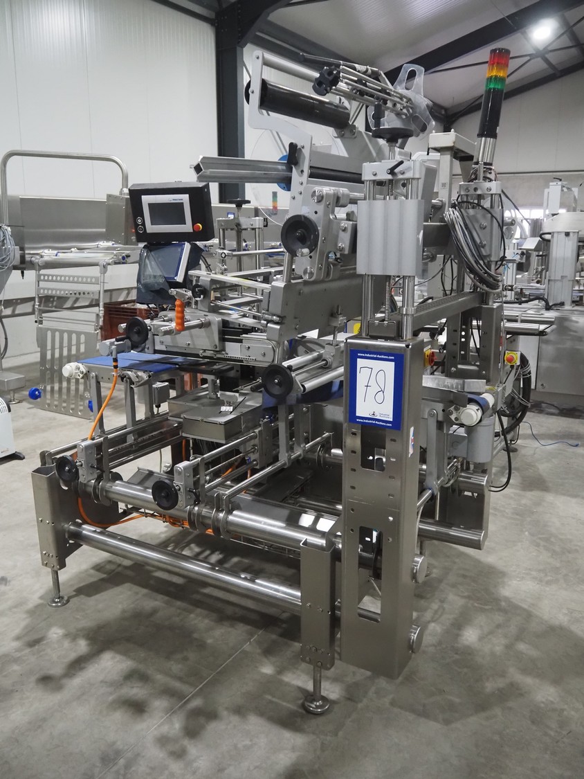 Multivac labeller, type: L310, machine number: 266619, year of construction: 2018, 400 V, 3 Ph, 2000 VA, belt width: (2x) 135 mm, 90 mm, total dimensions: 1800 mm x 1500 mm x 1980 mm.