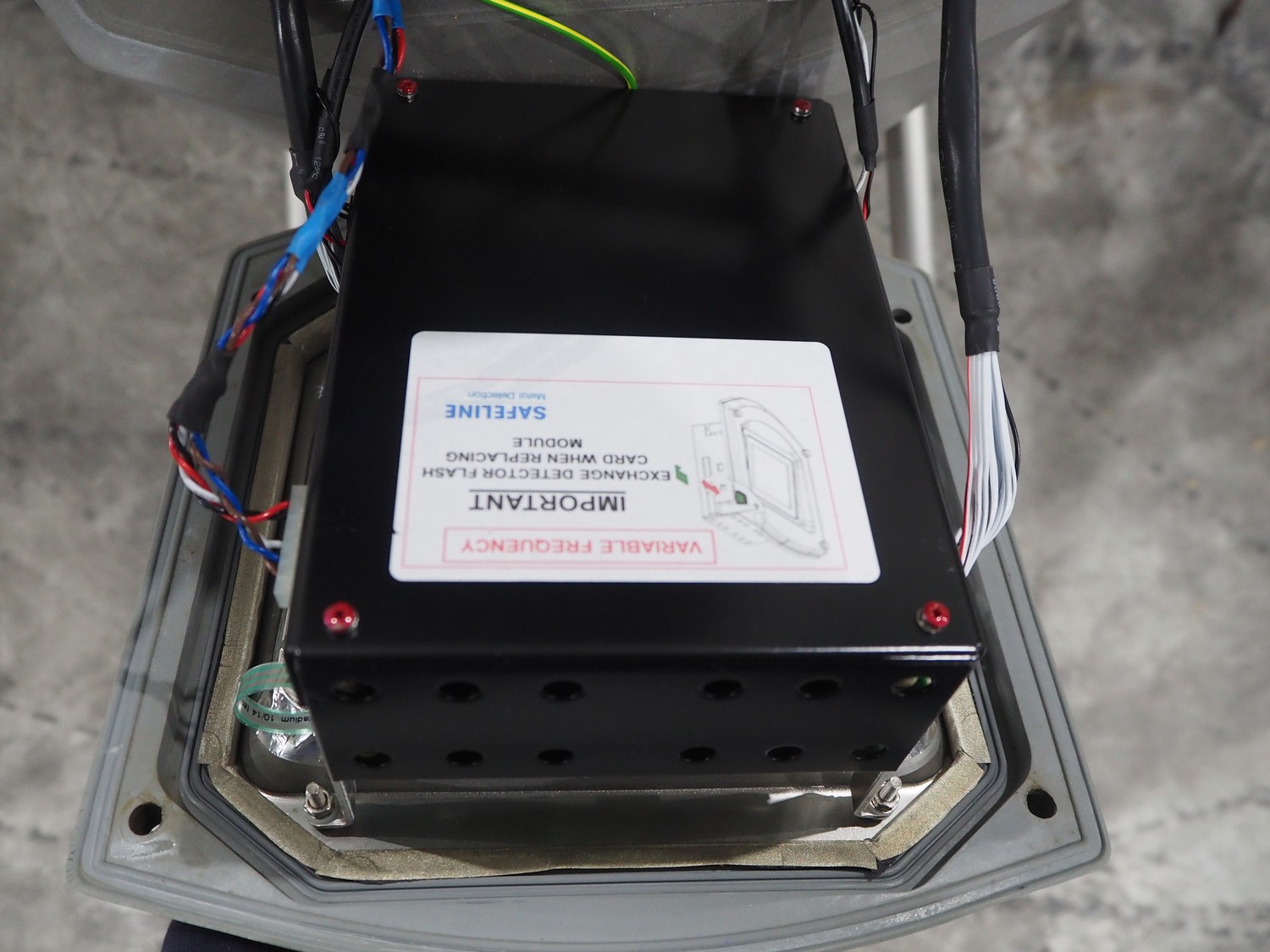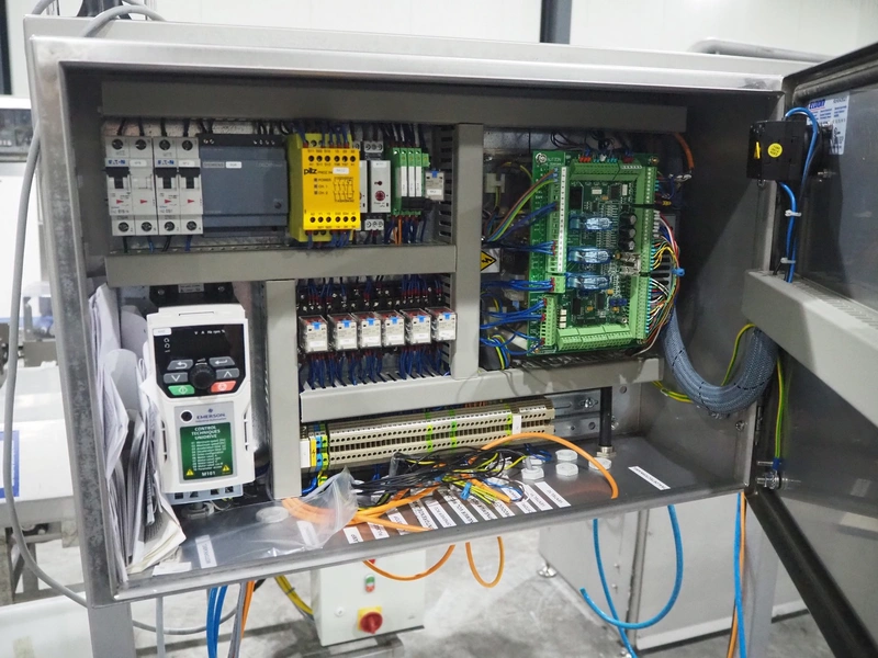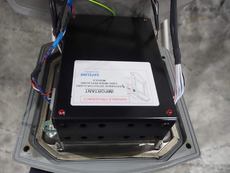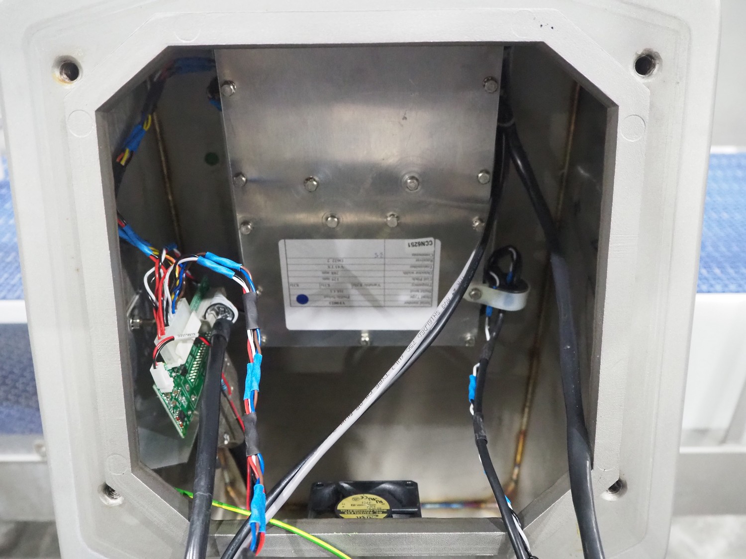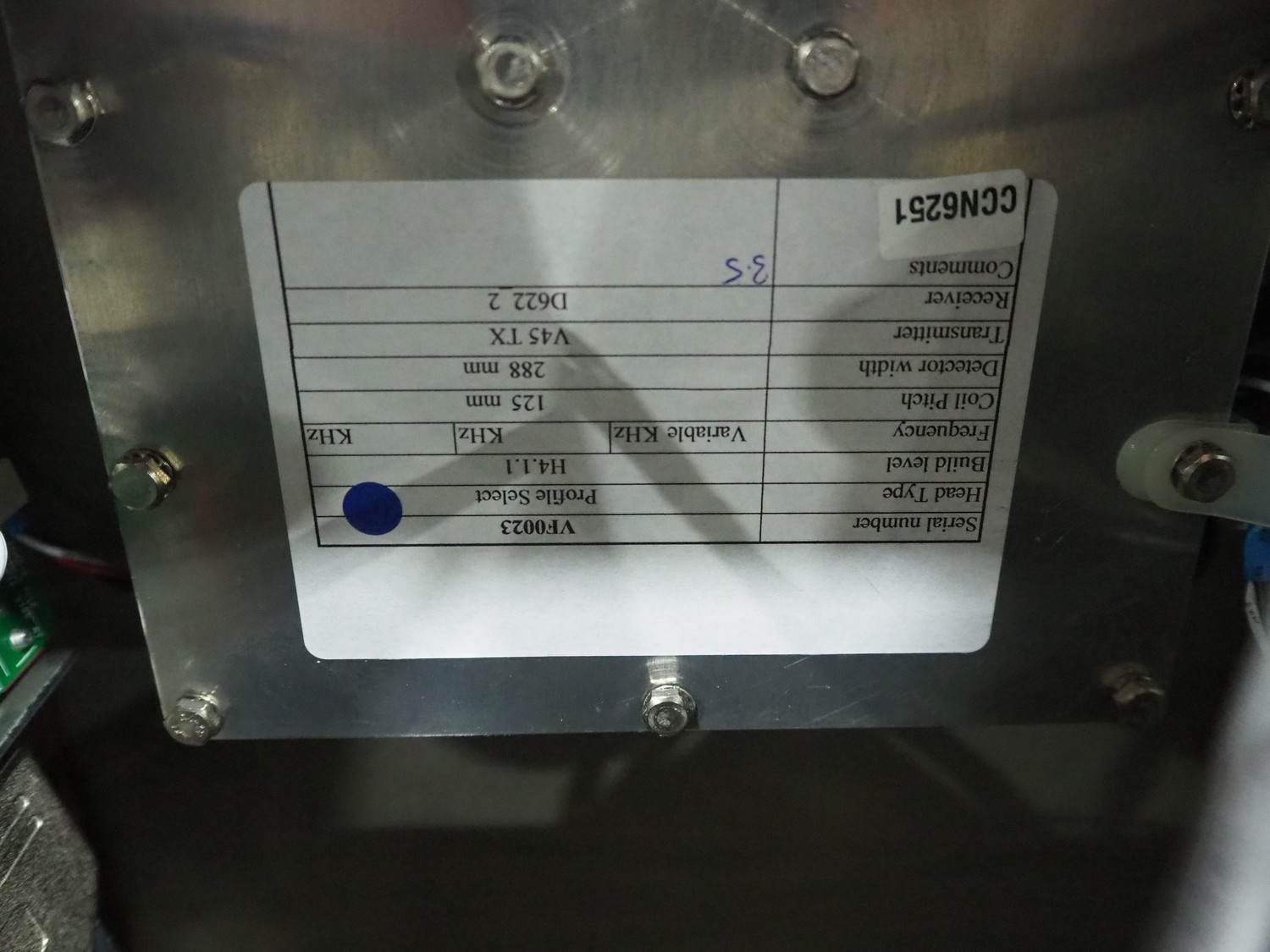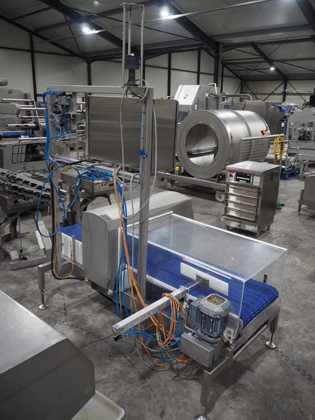 Mettler Toledo safeline metal detector with rejector, serial number: 125565, year of construction: 2015, 50 Hz, 230 V, 50 Hz, 6 A, 0.5 kW, plastic mesh belt, belt width: 430 mm, clearance: 445 mm x 215 mm, total dimensions: 1850 mm x 1470 mm x 2110 mm.