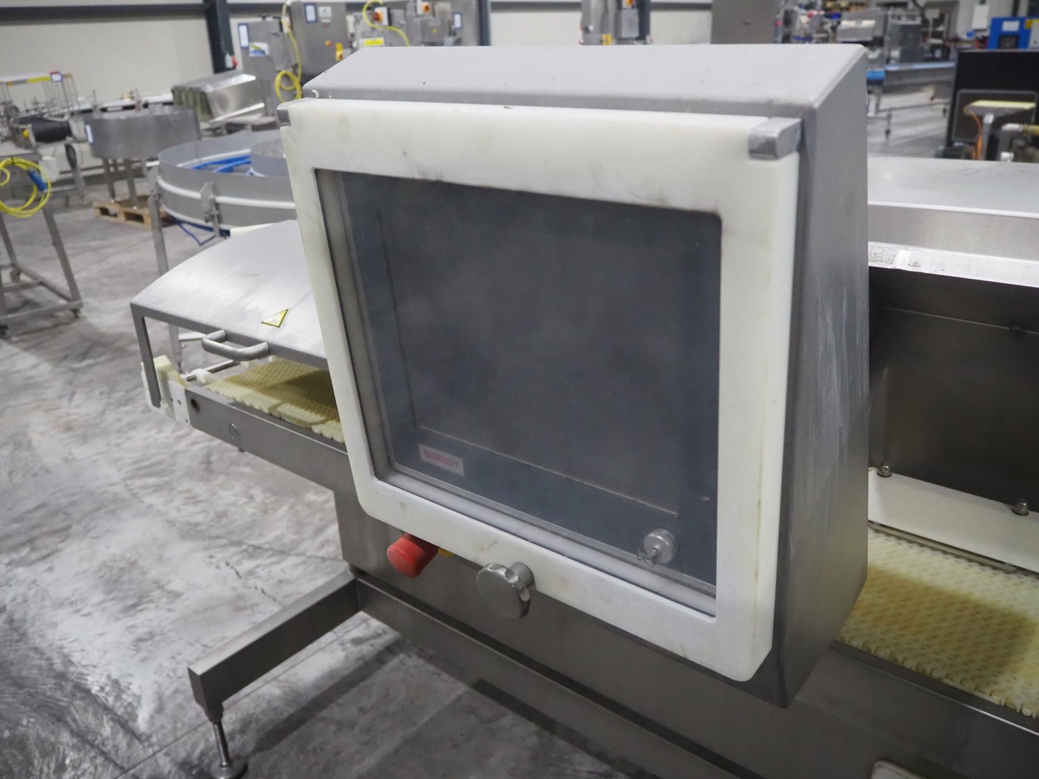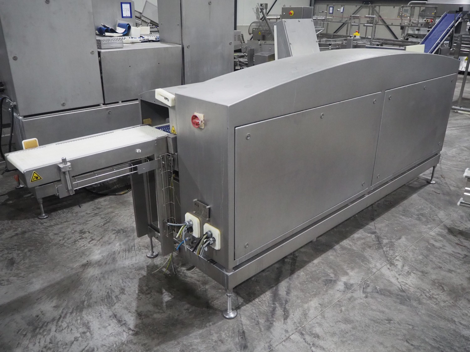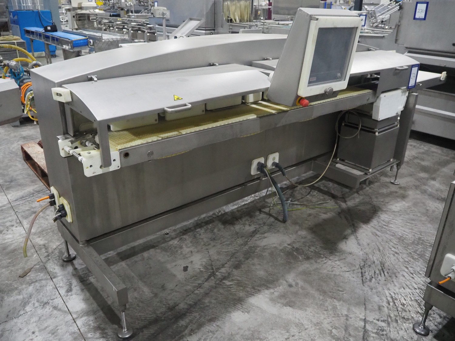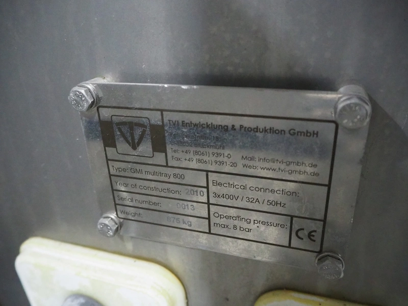 TVI Entwicklung & Produktion GmbH weighing belt with 4 rejectors, type: GMI multitray 800, serial number: 0013, year of construction: 2010, 400 V, 3 Ph, 50 Hz, 32 A, 8 bar, 875 kg, belt width: 250 mm, total dimensions: 3600 mm x 1050 mm x 1540 mm.