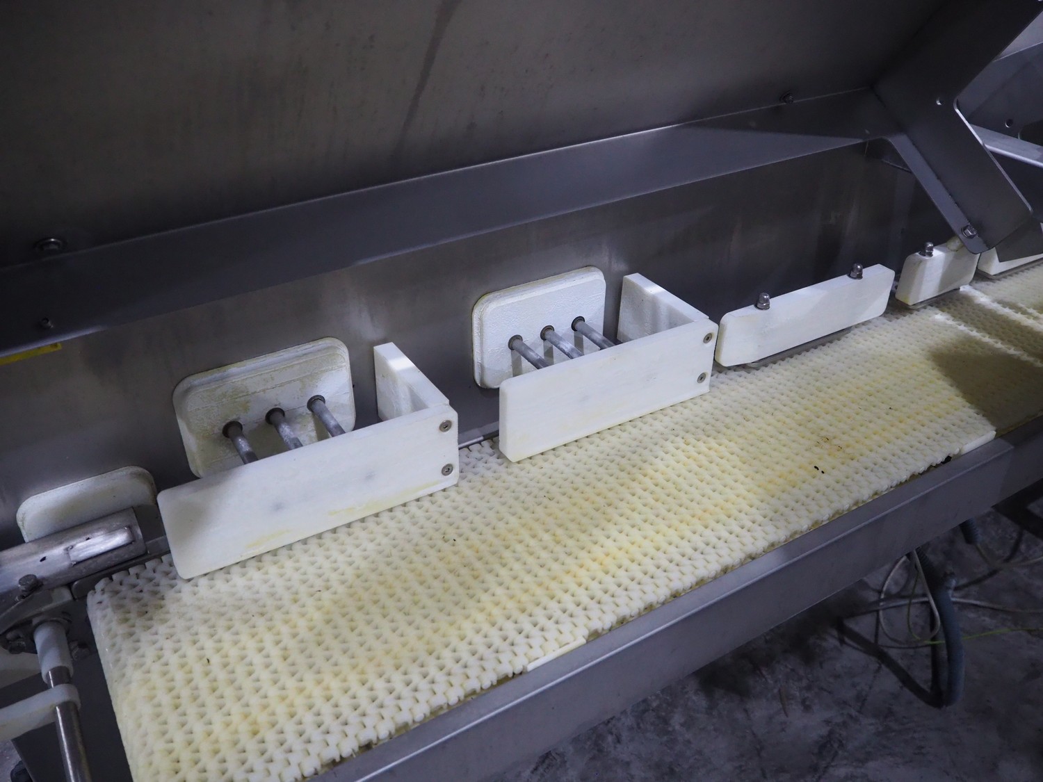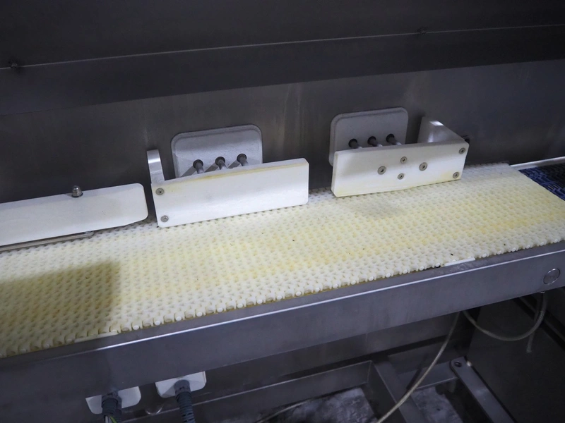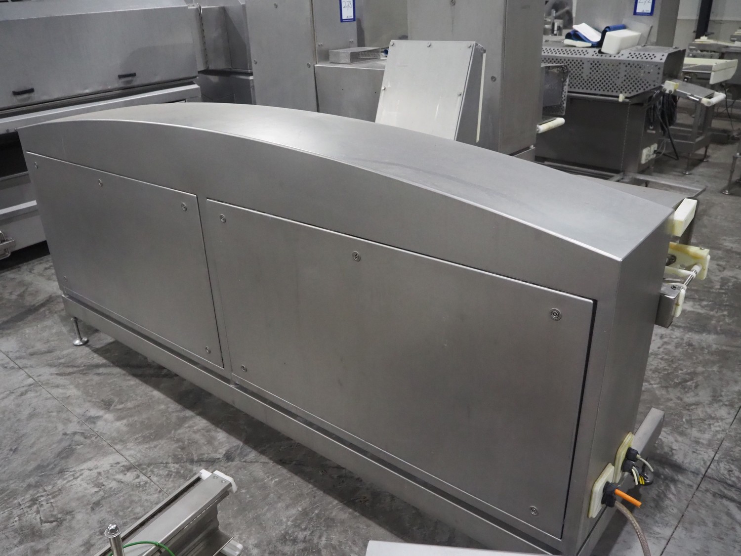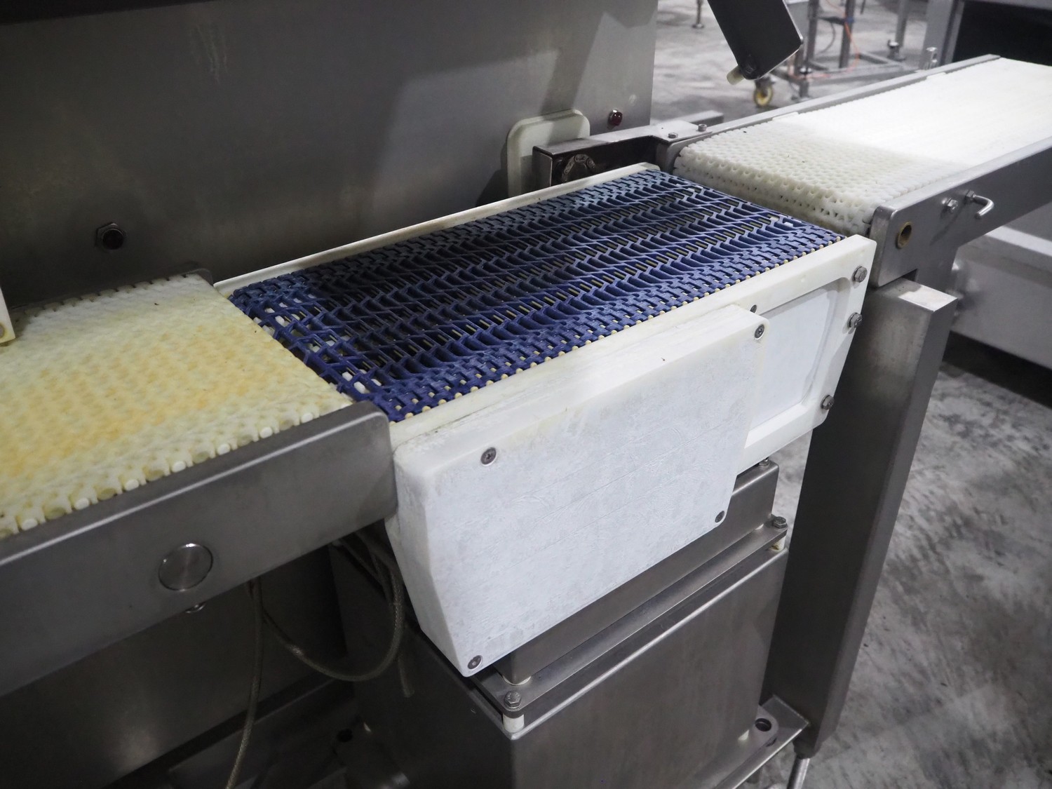 TVI Entwicklung & Produktion GmbH weighing belt with 4 rejectors, type: GMI multitray 800, serial number: 0013, year of construction: 2010, 400 V, 3 Ph, 50 Hz, 32 A, 8 bar, 875 kg, belt width: 250 mm, total dimensions: 3600 mm x 1050 mm x 1540 mm.