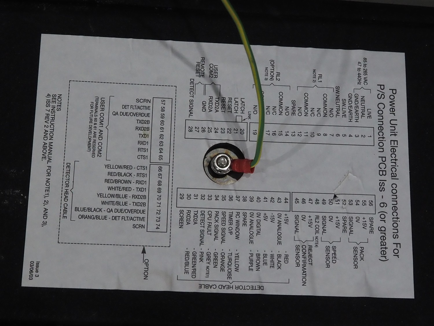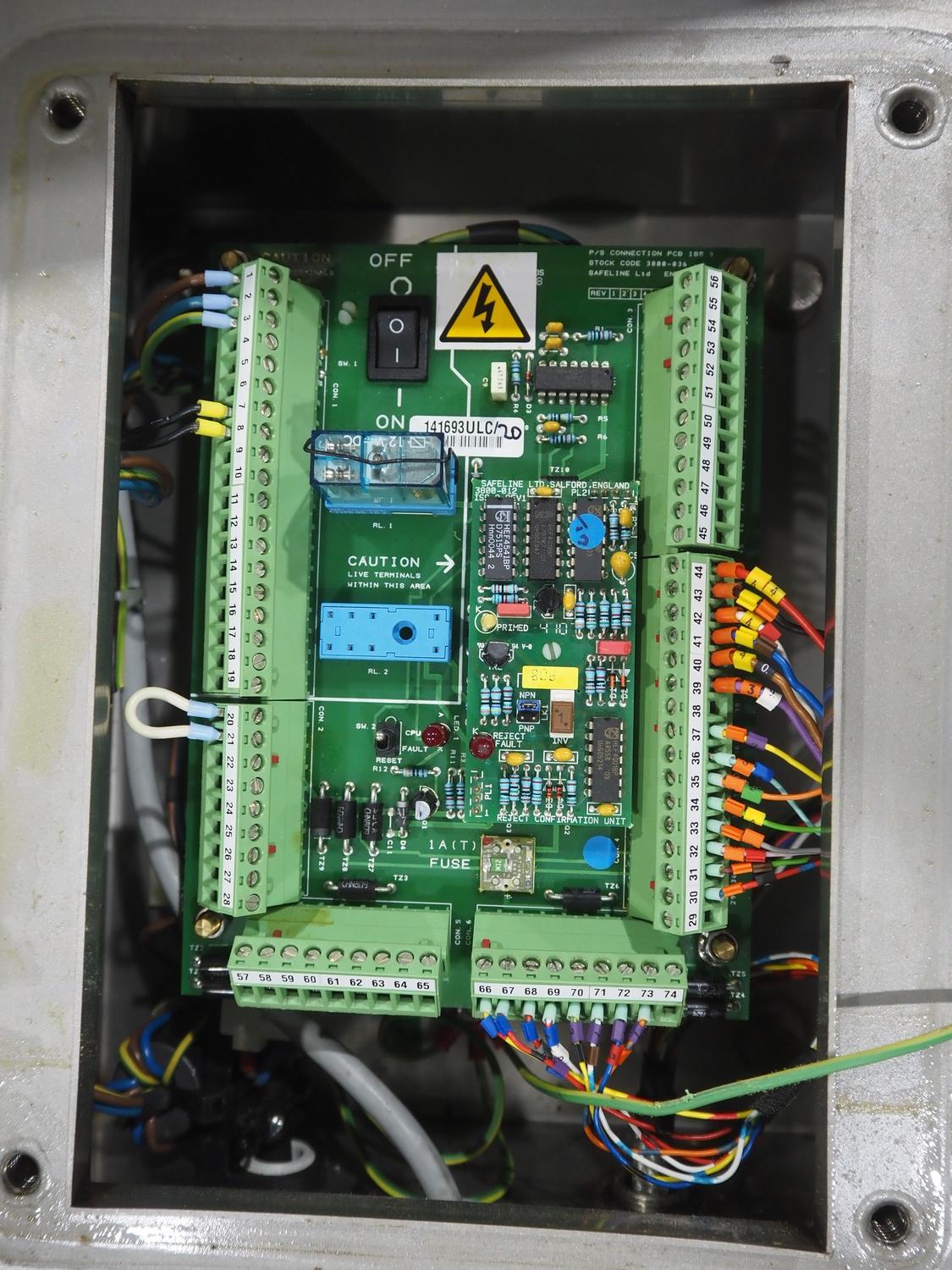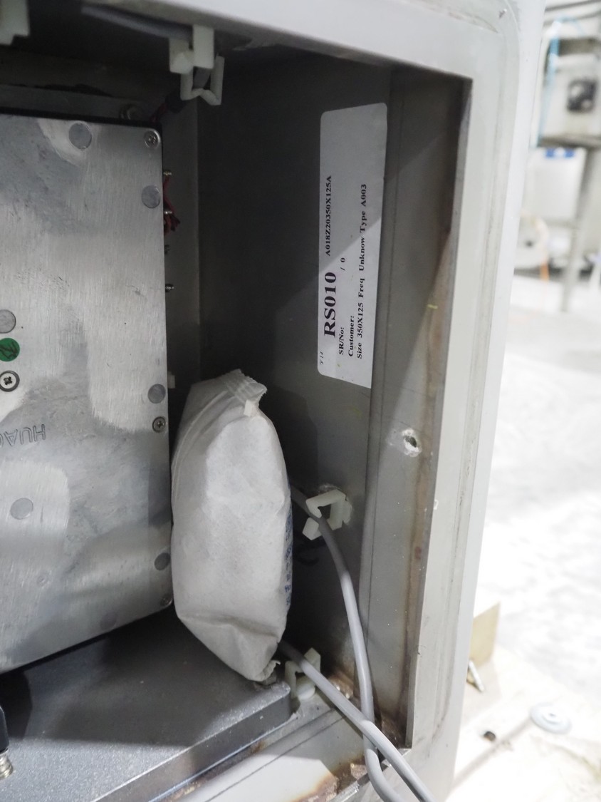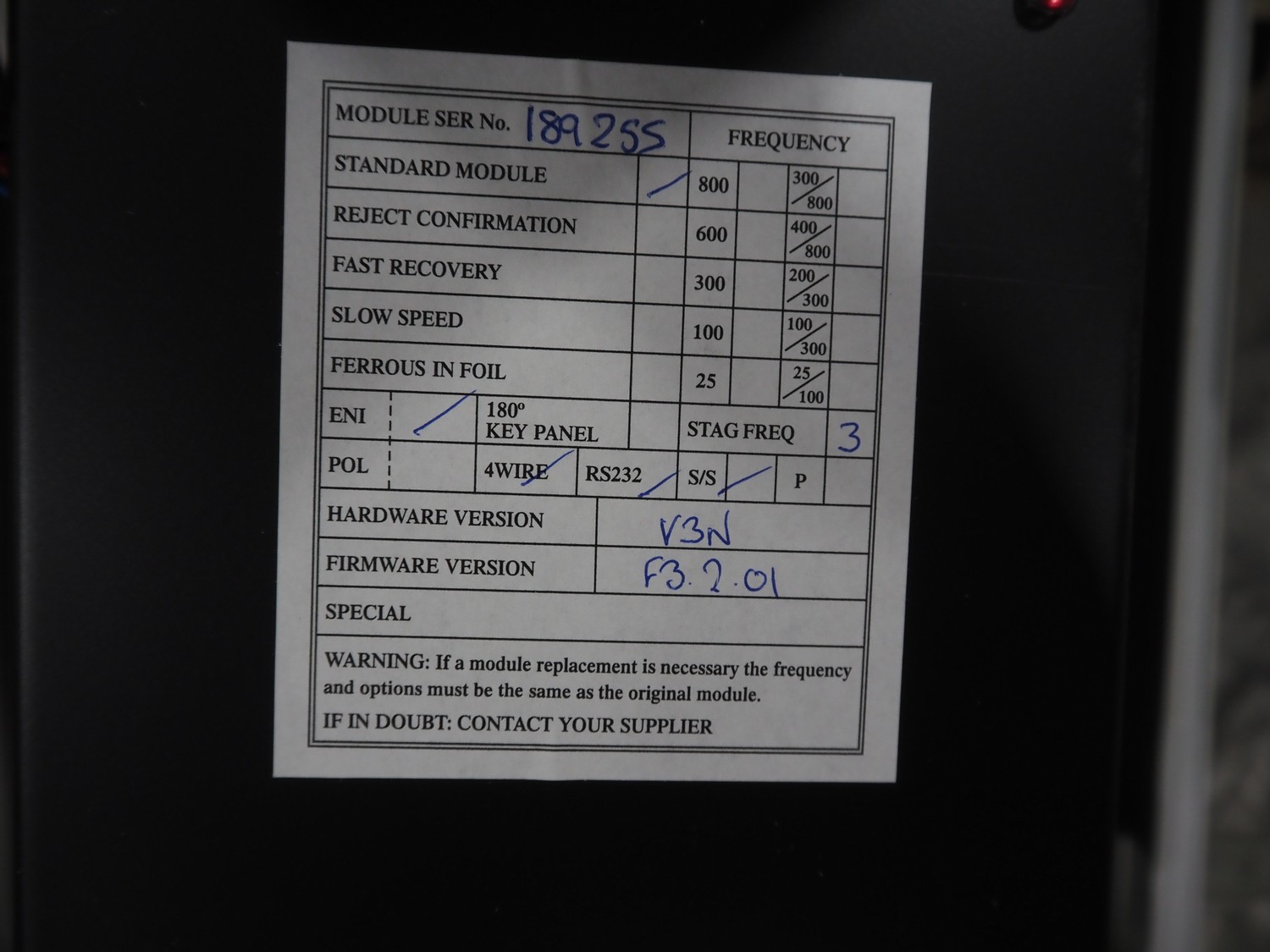 Mettler Toledo Safeline metal detector head, serial number: 92847, 50/60 Hz, 330 Watt, clearance: 350 mm x 125 mm, total dimensions: 870 mm x 290 mm x 410 mm.