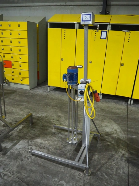 Silverson mixer on mobile s/s frame, length mixing arm: 820 mm, total dimensions: 850 mm x 775 mm x 1870 mm.