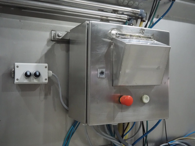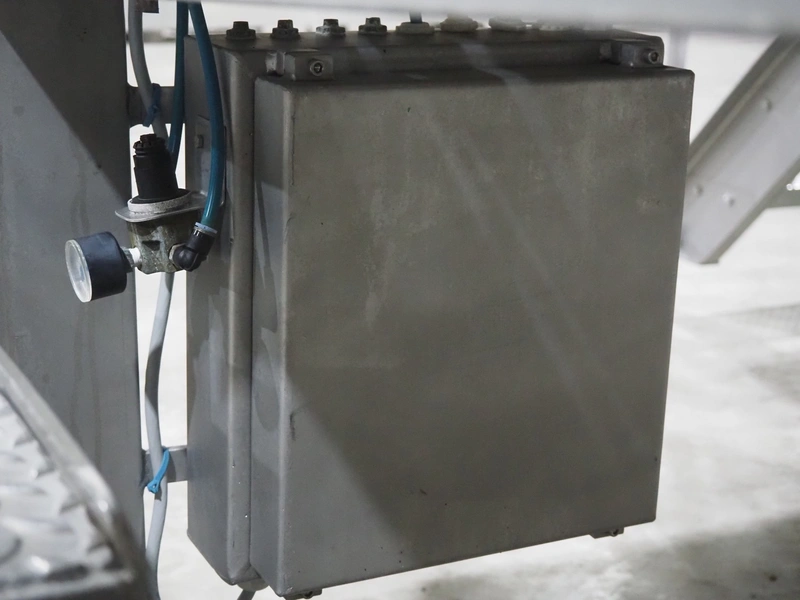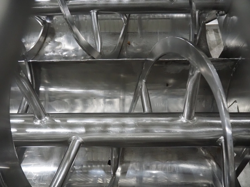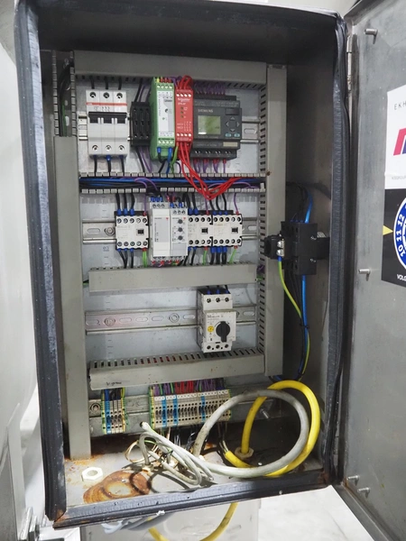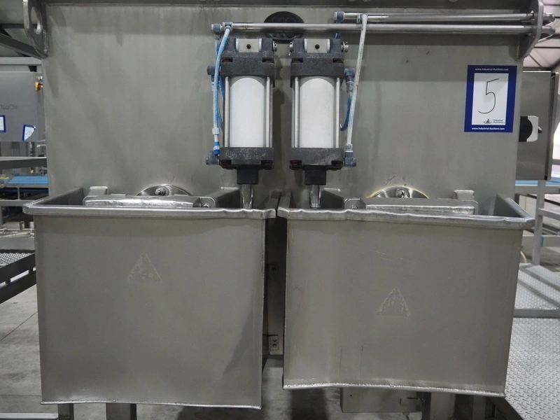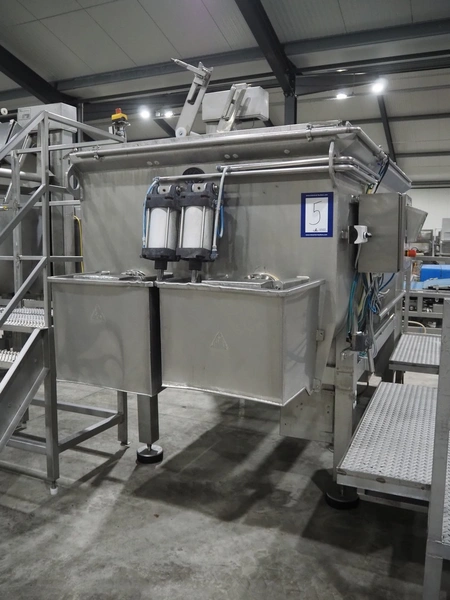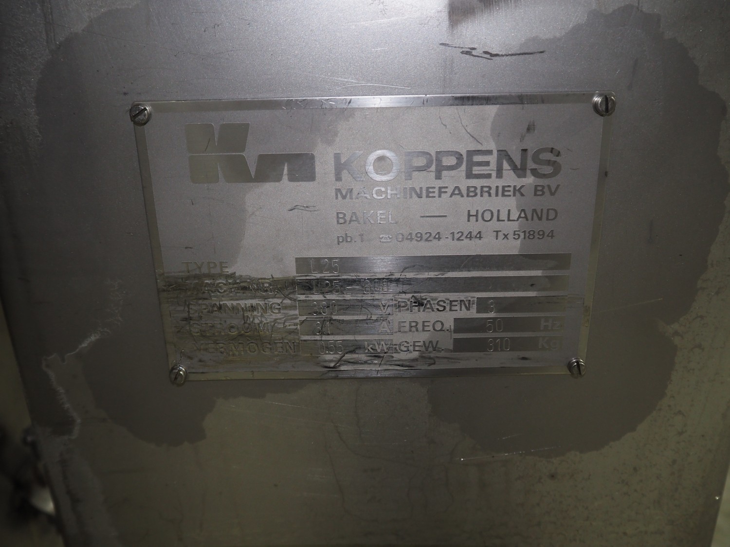 Karl Schnell GmbH & Co double shaft ribbon mixer with Koppens lifter for 200 liter meat bins, inside dimensions mixer: 2450 mm x 650 mm x 1090 mm, total dimensions mixer: 3900 mm x 1950 mm x 1980 mm. Type lifter: L 25, machine number: L 25-608, 380 V, 3 Ph, 50 Hz, 3.1 A, 0.55 kW, weight: 310 kg, dimensions lifter: 1900 mm x 800 mm x 2900 mm.