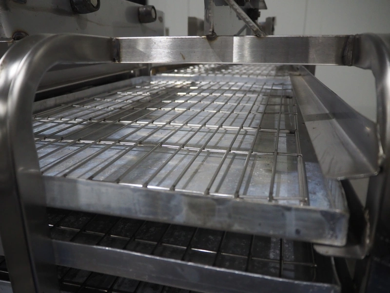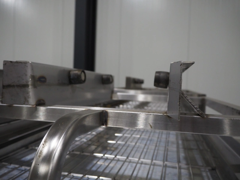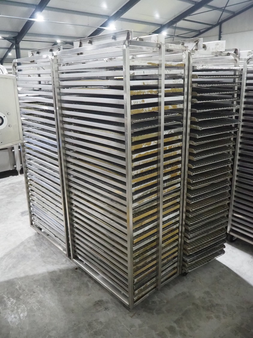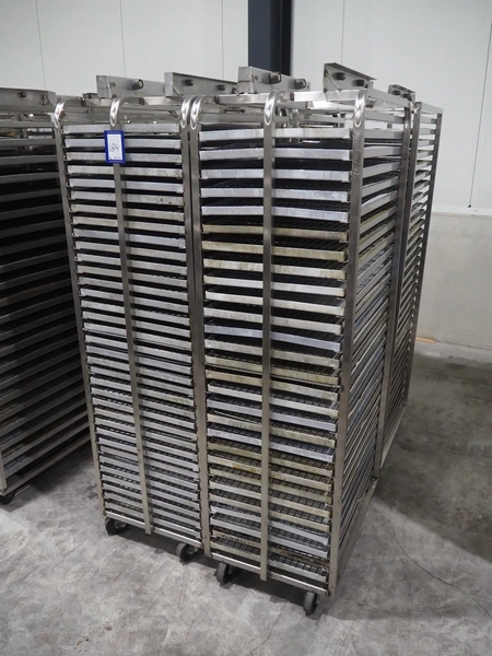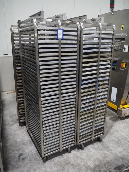 4 s/s trolleys for rotary oven, 32 floors, floor dimensions: 760 mm x 460 mm, total dimensions: (4x) 770 mm x 530 mm x 1830 mm.