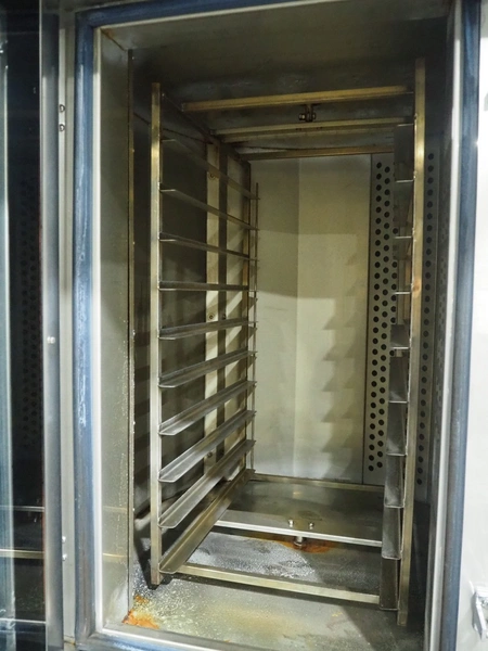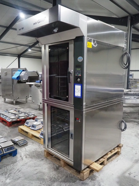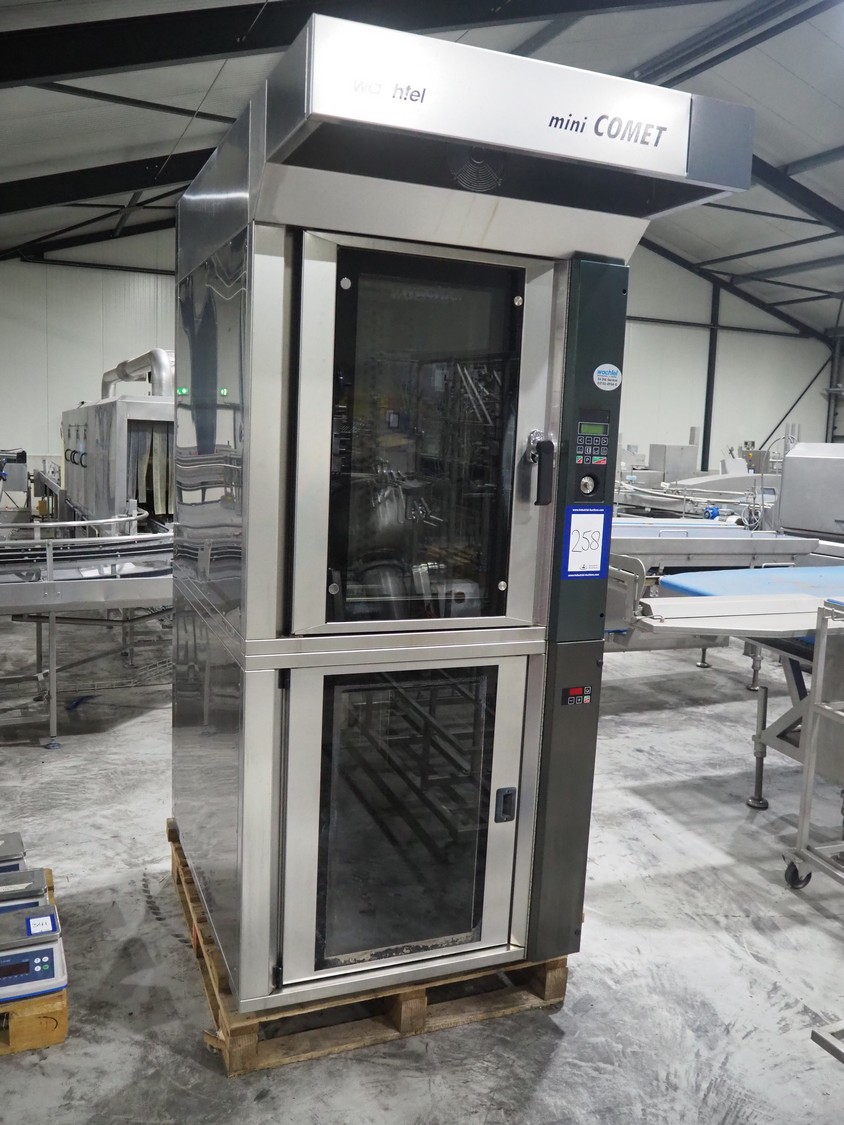 Wachtel oven, type: mini Comet 10/64. serial number: 23101BRR, year of construction: 04/2010, 400 V, 3 Ph, 50 Hz, 22,1 kW, 20 floors, (10x) top floor dimensions: 590 mm x 405 mm, (10x) lower floor dimensions: 800 mm x 600 mm, total dimensions: 1700 mm x 980 mm x 2220 mm.