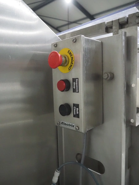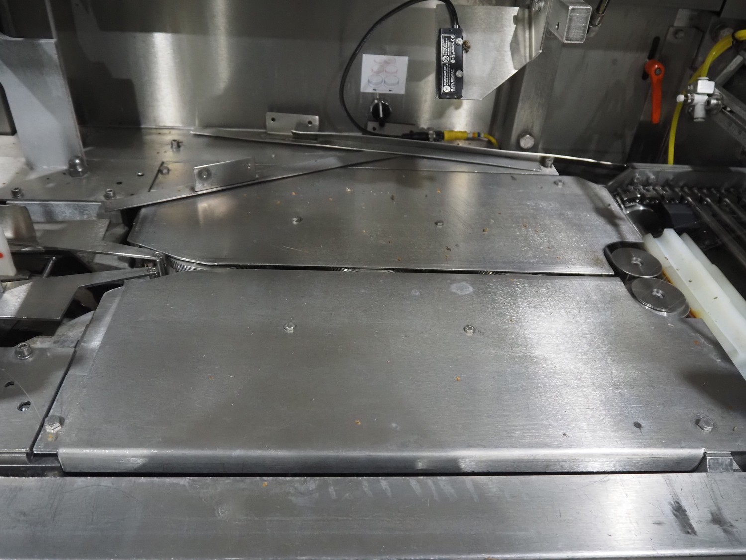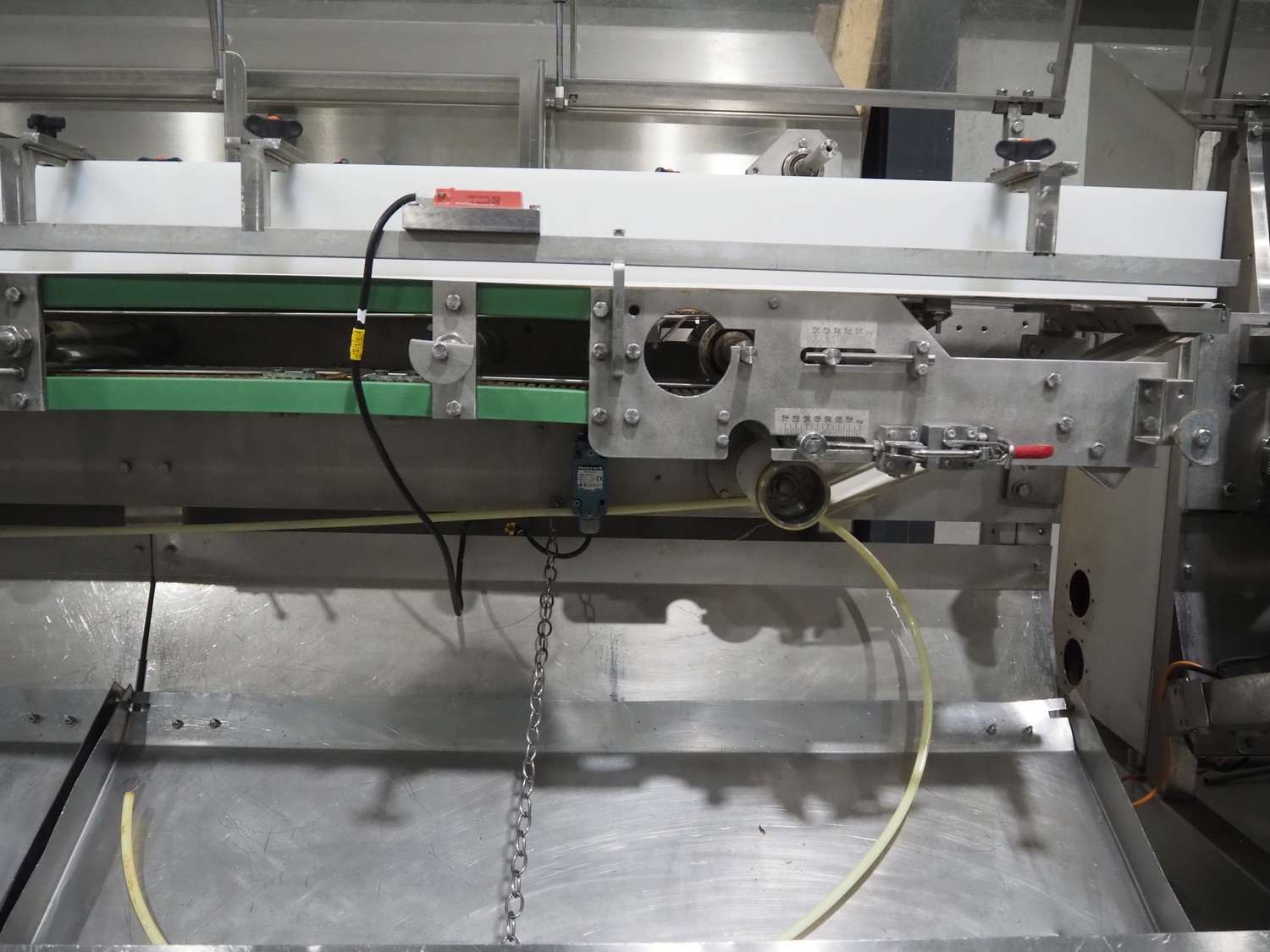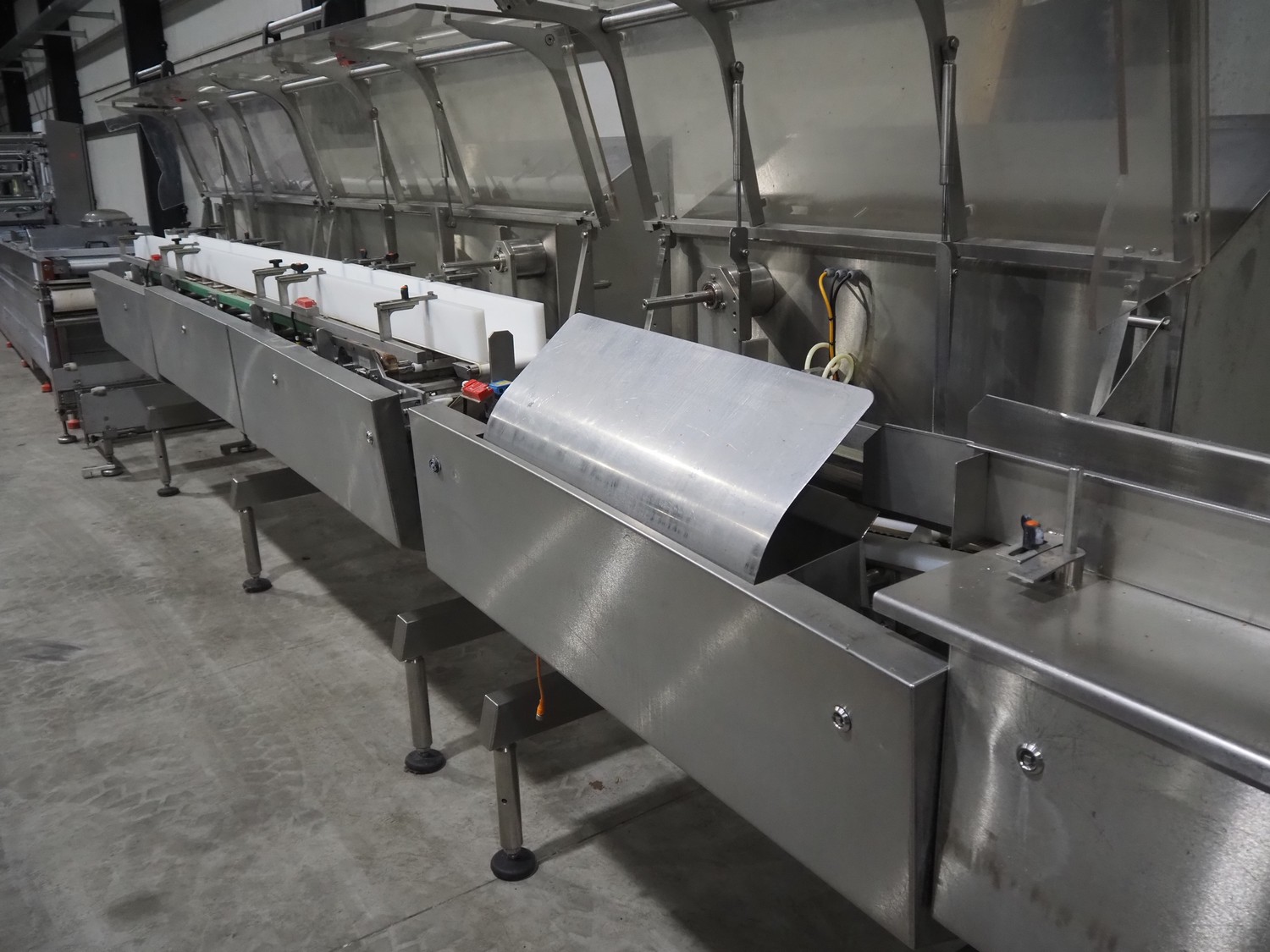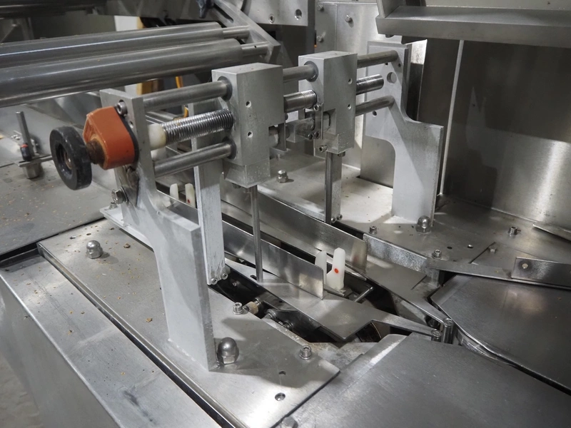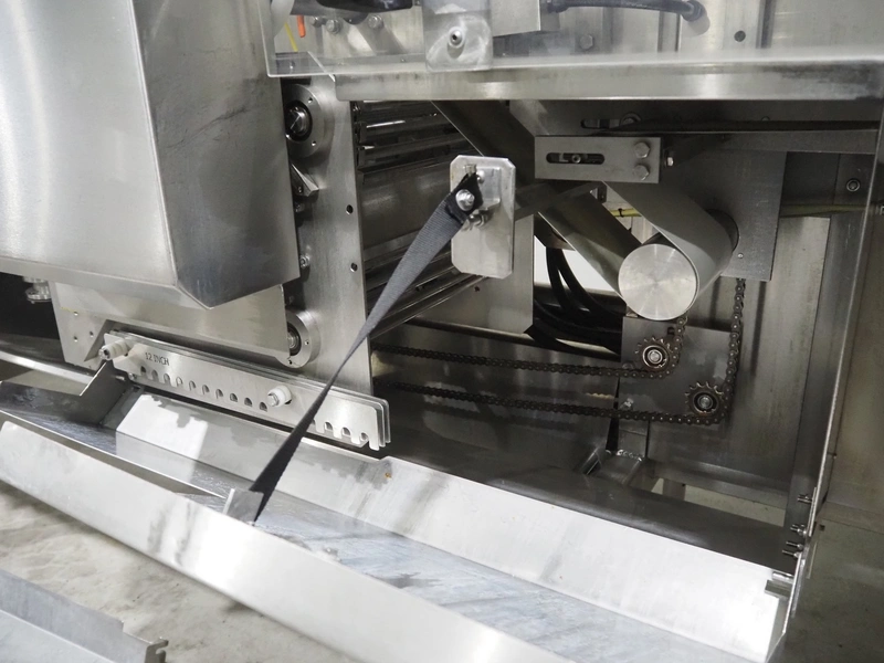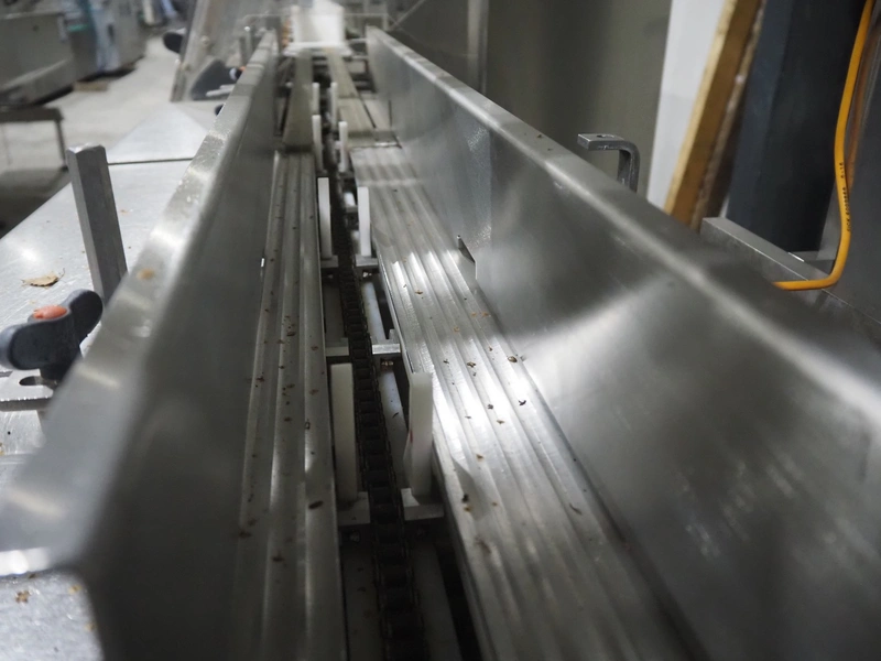 Bradman Lake Group dual feed flow packer, machine type: FT120CLX, serial number: 7098, year of construction: 2006, 415 V, 3 Ph, 50 Hz, 10 kW, plastic belt with dividers, belt width: (2x) 40 mm, divider height: 35 mm, distance between dividers: 300 mm, seal width: 230 mm, total dimensions: 5750 mm x 1200 mm x 2500 mm. Including infeed and outfeed belt, plastic infeed belt , belt width: 160 mm, total dimension: 3500 mm x 980 mm x 1550 mm. plastic outfeed belt, plastic mesh belt, belt width: 300 mm, total dimensions: 2600 mm x 600 mm x 1250 mm.