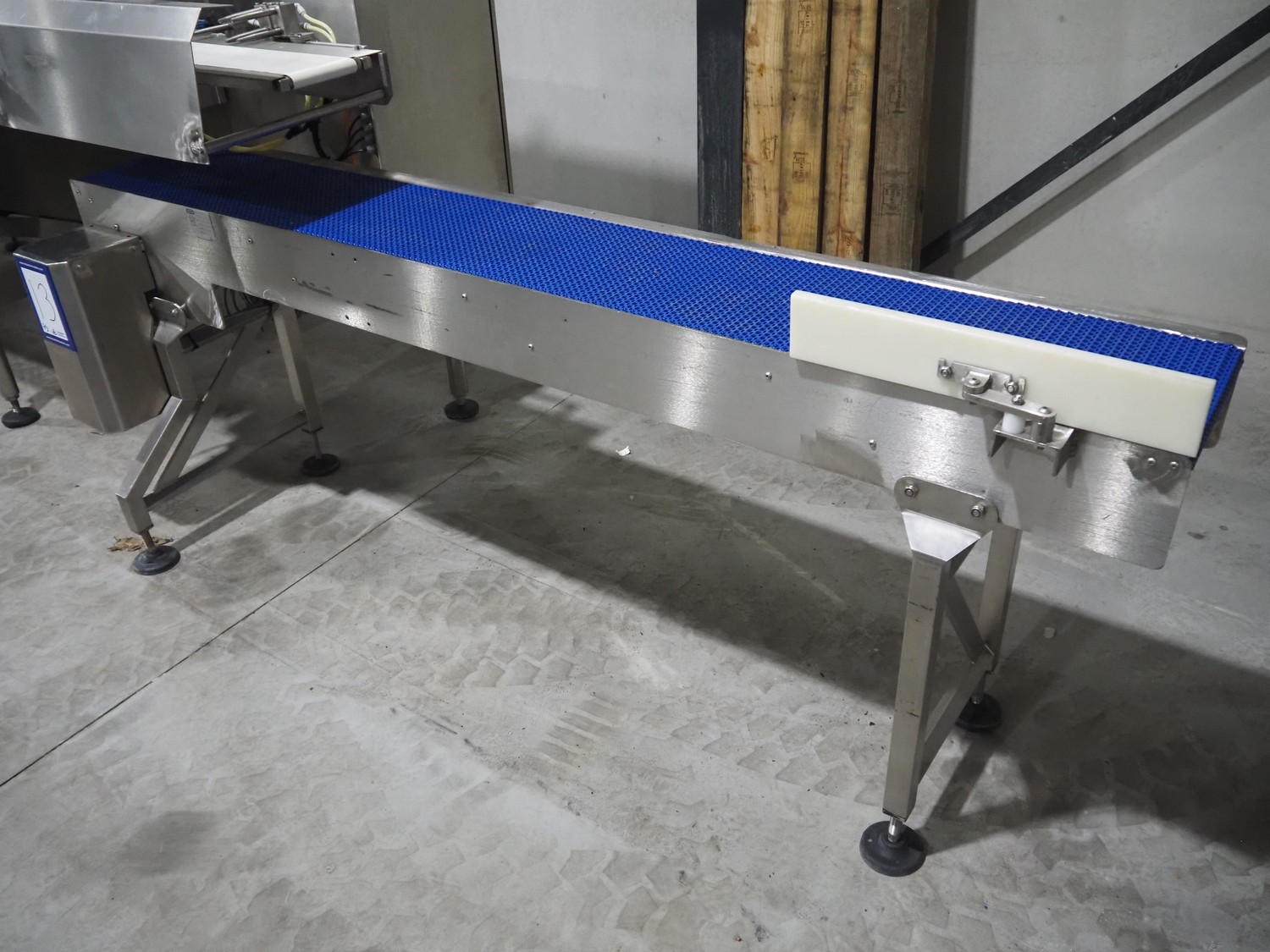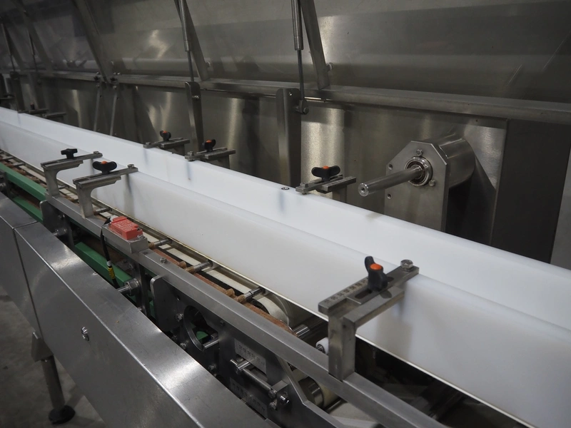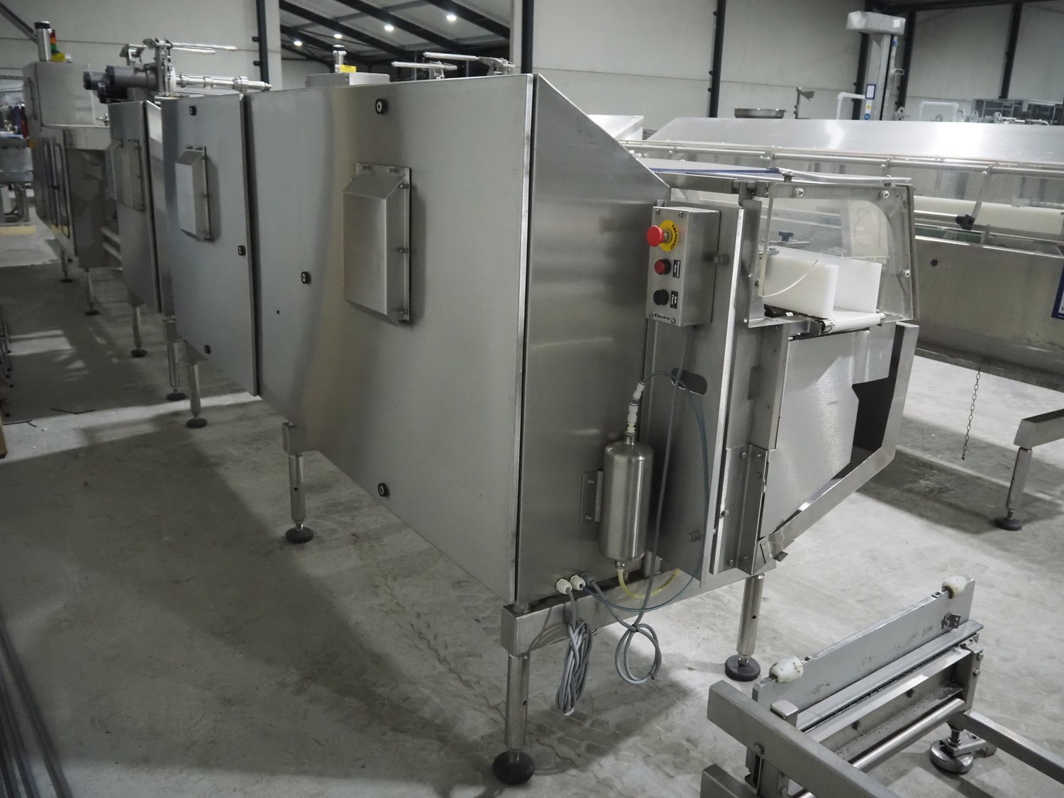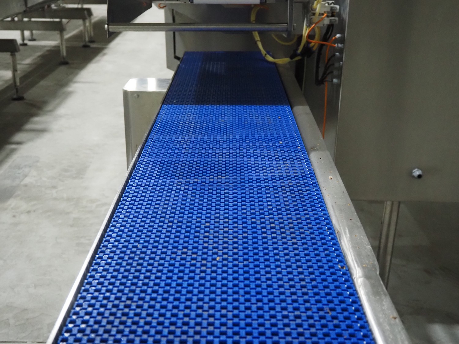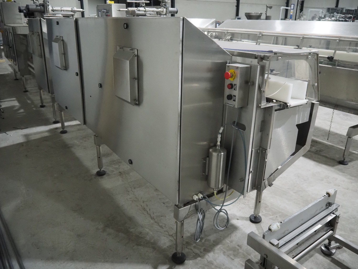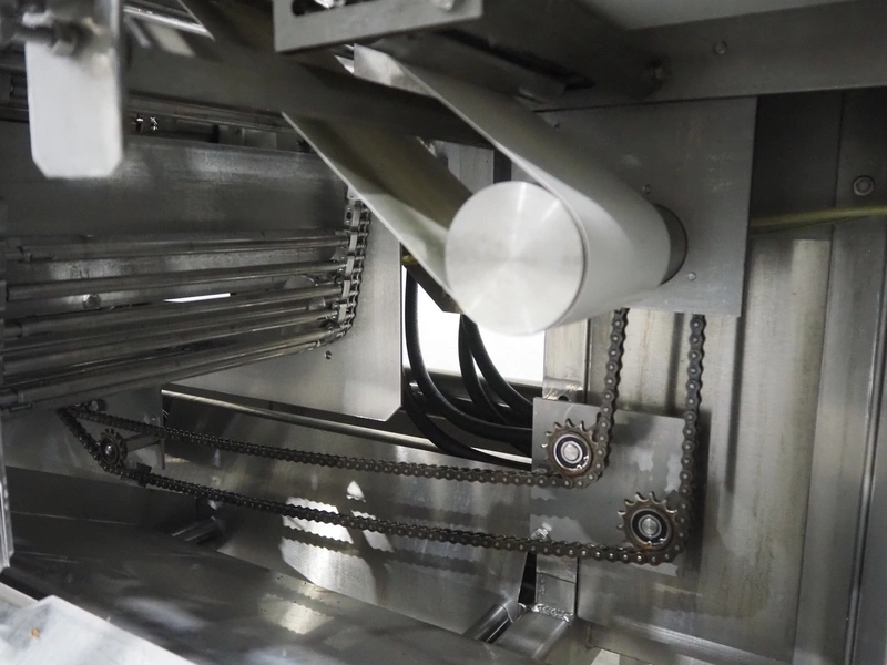 Bradman Lake Group dual feed flow packer, machine type: FT120CLX, serial number: 7098, year of construction: 2006, 415 V, 3 Ph, 50 Hz, 10 kW, plastic belt with dividers, belt width: (2x) 40 mm, divider height: 35 mm, distance between dividers: 300 mm, seal width: 230 mm, total dimensions: 5750 mm x 1200 mm x 2500 mm. Including infeed and outfeed belt, plastic infeed belt , belt width: 160 mm, total dimension: 3500 mm x 980 mm x 1550 mm. plastic outfeed belt, plastic mesh belt, belt width: 300 mm, total dimensions: 2600 mm x 600 mm x 1250 mm.