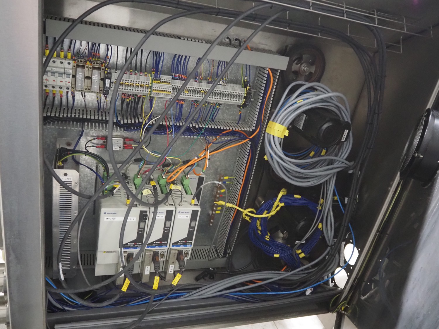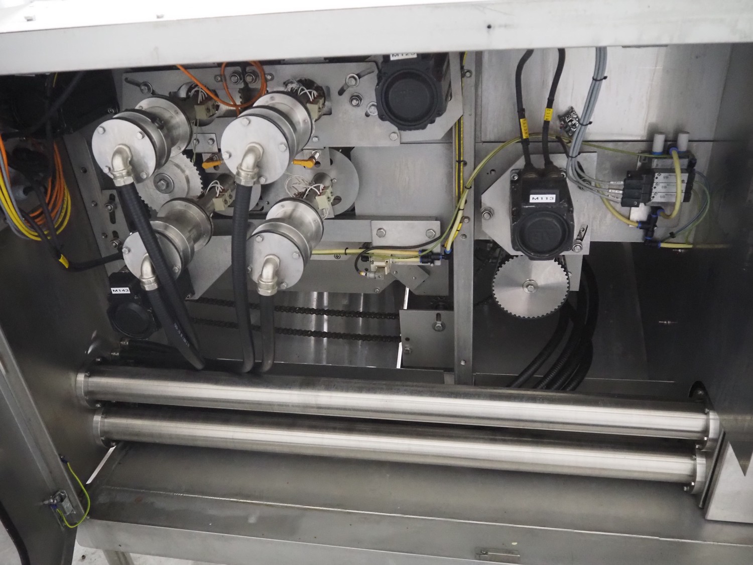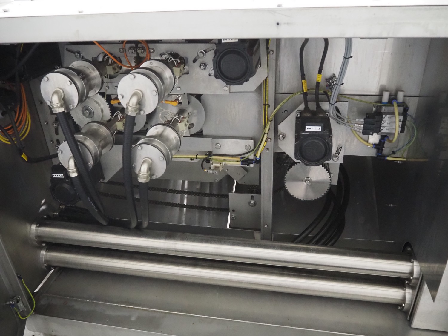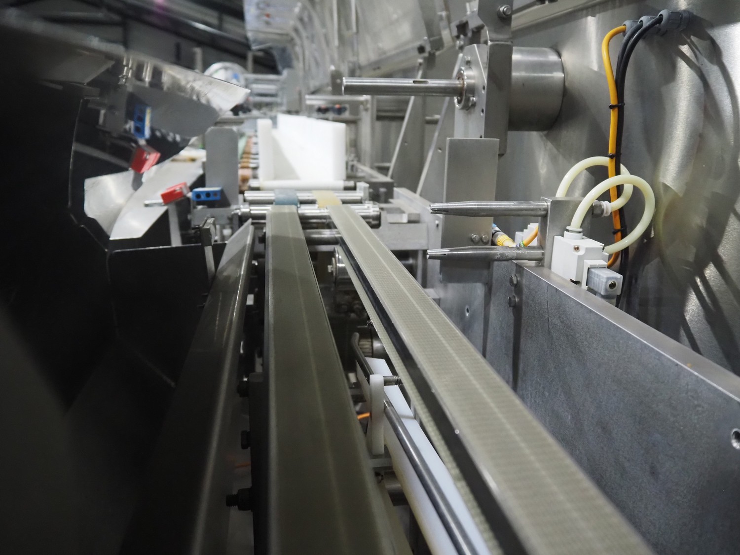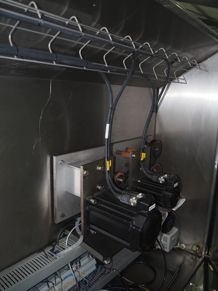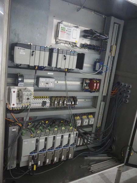 Bradman Lake Group dual feed flow packer, machine type: FT120CLX, serial number: 7098, year of construction: 2006, 415 V, 3 Ph, 50 Hz, 10 kW, plastic belt with dividers, belt width: (2x) 40 mm, divider height: 35 mm, distance between dividers: 300 mm, seal width: 230 mm, total dimensions: 5750 mm x 1200 mm x 2500 mm. Including infeed and outfeed belt, plastic infeed belt , belt width: 160 mm, total dimension: 3500 mm x 980 mm x 1550 mm. plastic outfeed belt, plastic mesh belt, belt width: 300 mm, total dimensions: 2600 mm x 600 mm x 1250 mm.