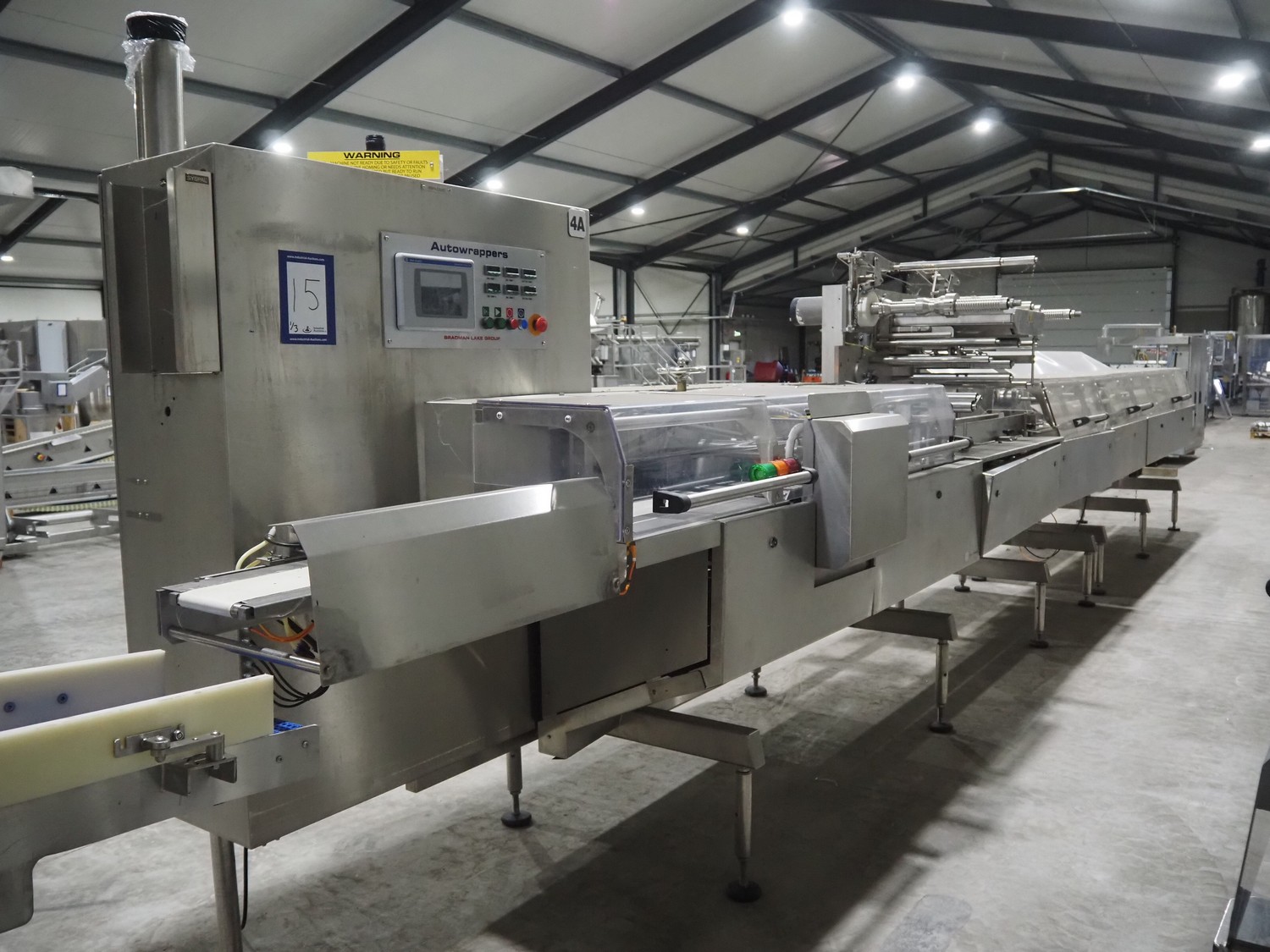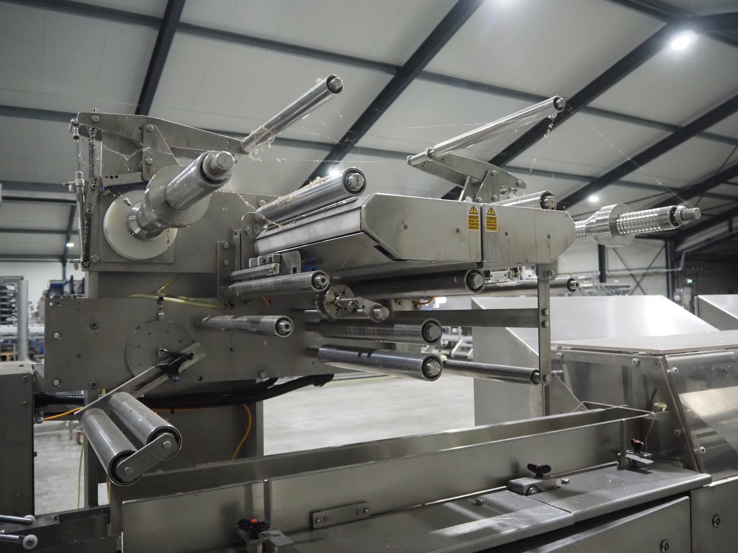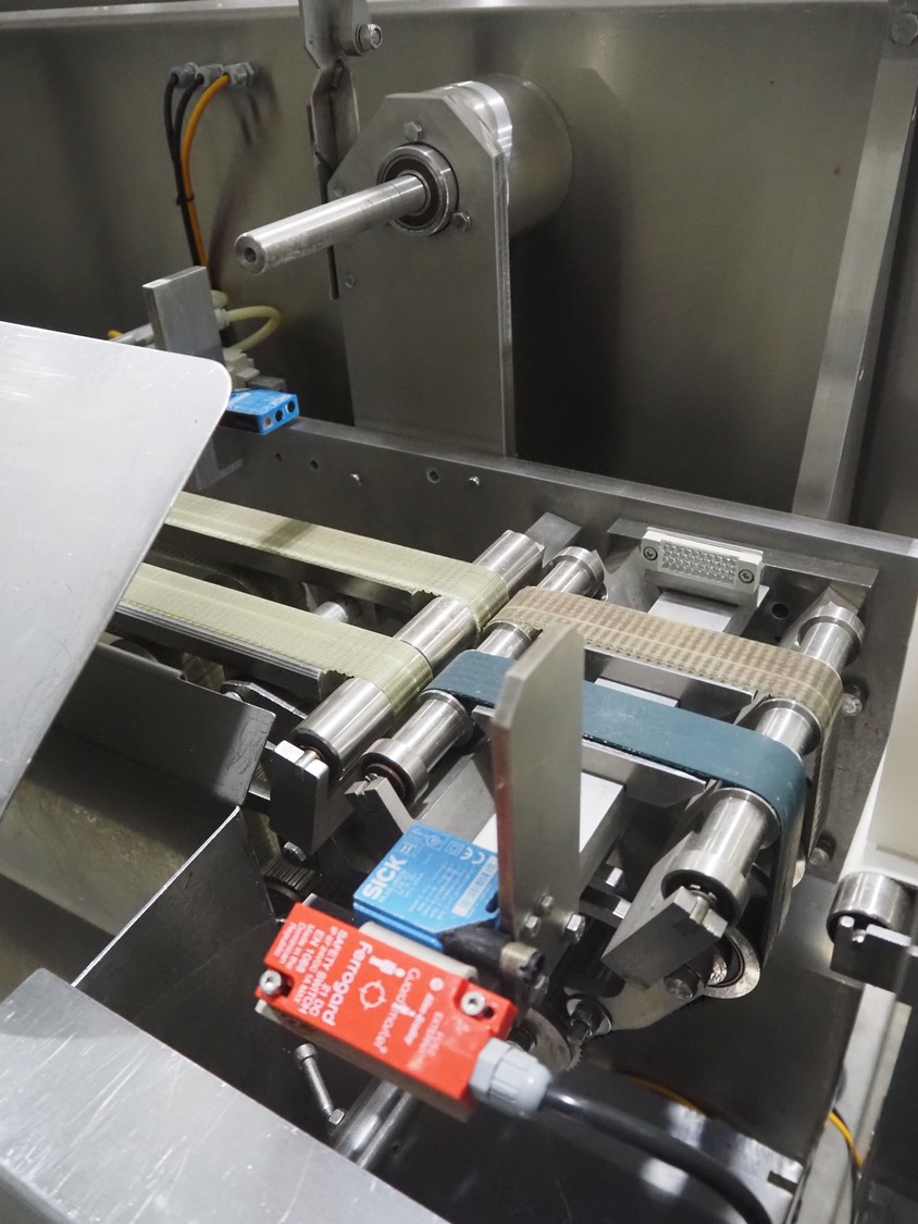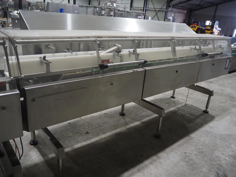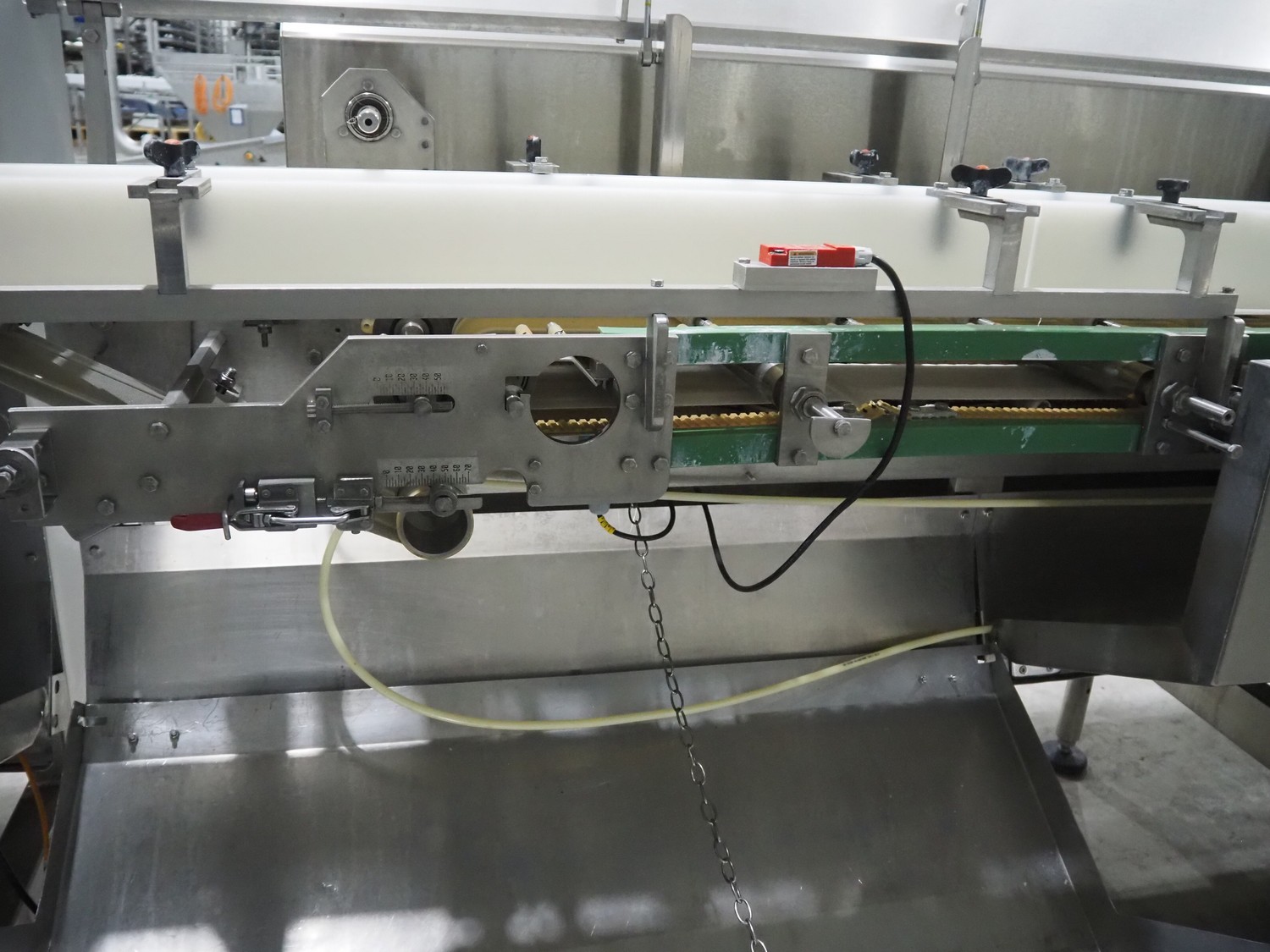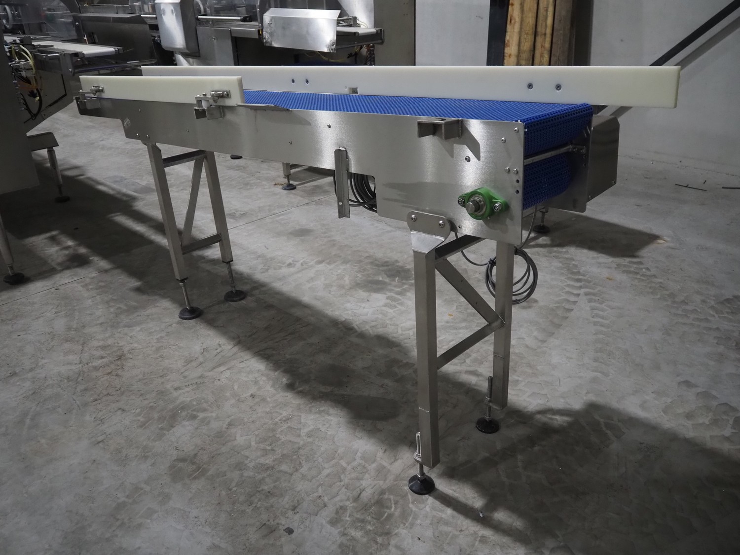 Bradman Lake Group dual feed flow packer, machine type: FT120CLX, serial number: 7097, year of construction: 2006, 415 V, 3 Ph, 50 Hz, 10 kW, plastic infeed belt with dividers, belt width: (2x) 40 mm, divider height: 35 mm, distance between dividers: 300 mm, seal width: 230 mm, total dimensions: 5750 mm x 1200 mm x 2500 mm. Including infeed and outfeed belt, plastic mesh infeed belt, 160 mm, total dimensions: 3500 mm x 980 mm x 1550 mm. Plastic outfeed belt, belt width: 300 mm, total dimensions: 2600 mm x 600 mm x 1250 mm.