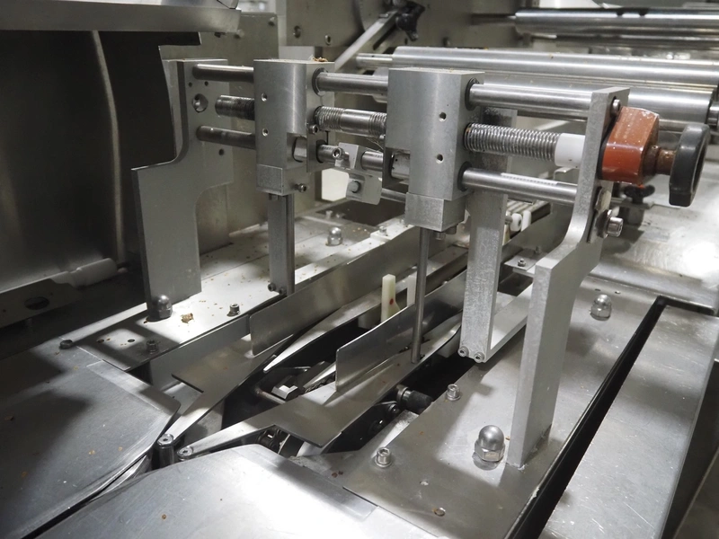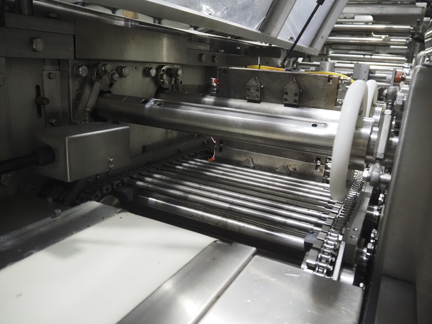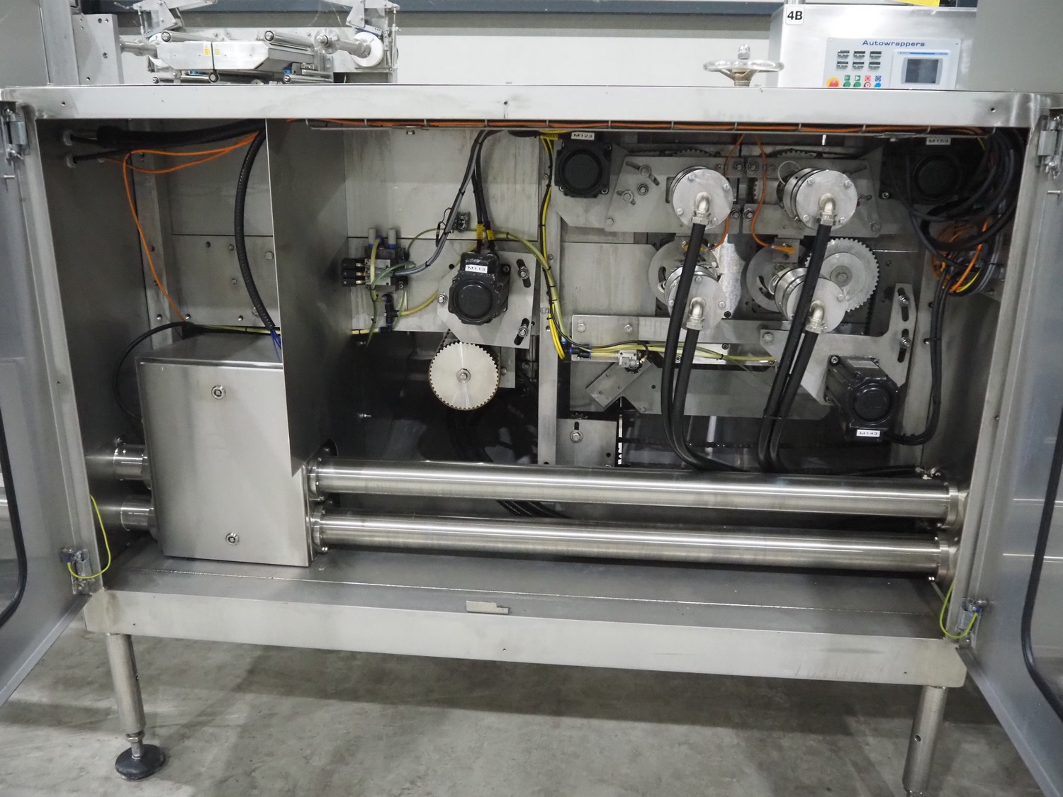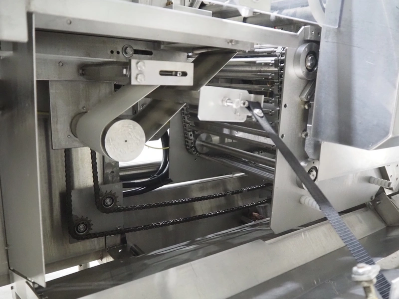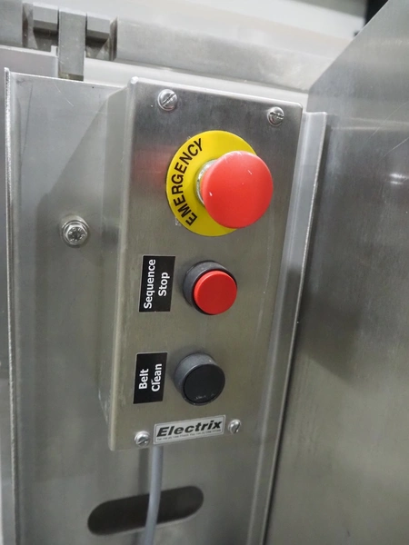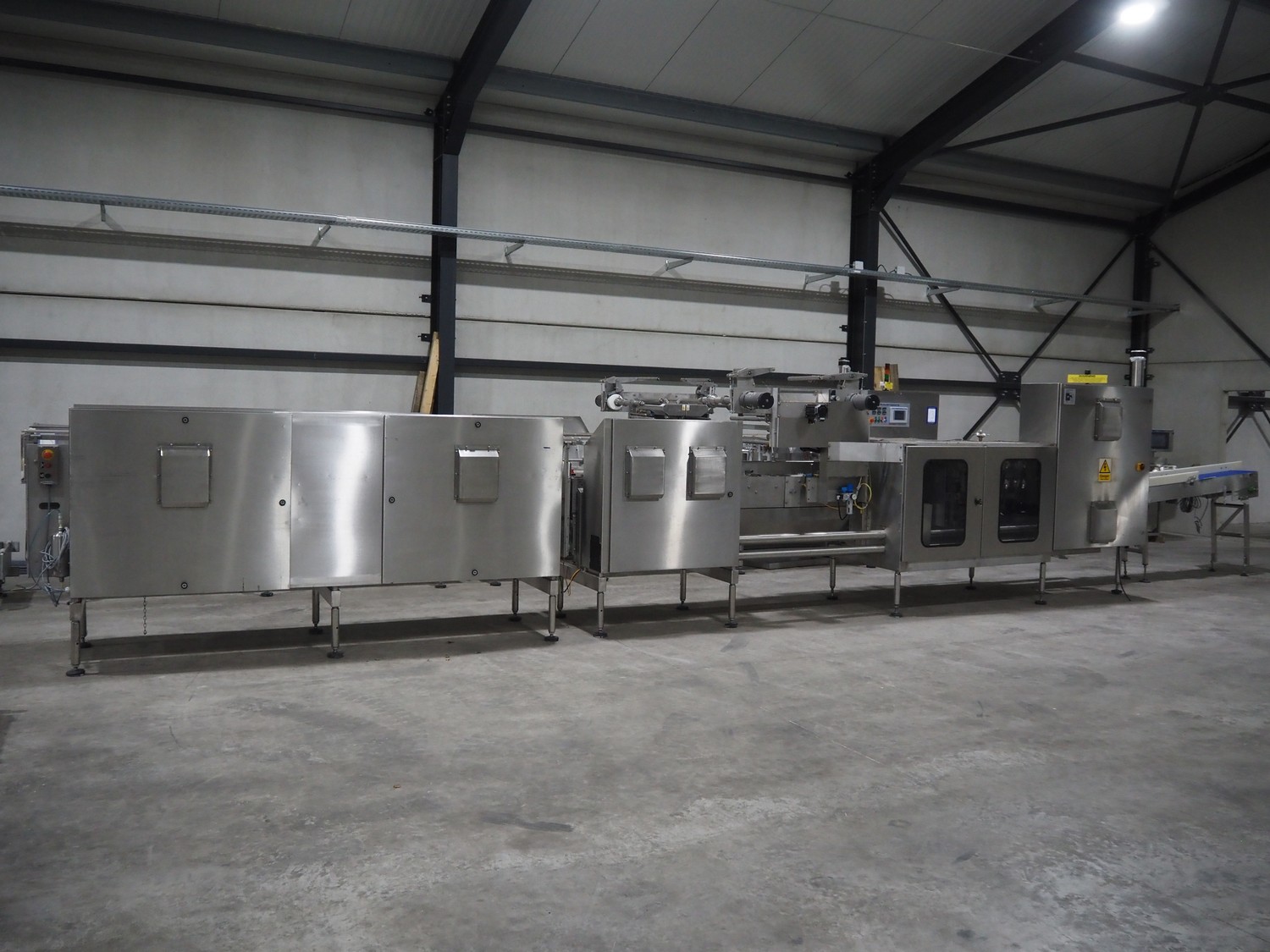 Bradman Lake Group dual feed flow packer, machine type: FT120CLX, serial number: 7097, year of construction: 2006, 415 V, 3 Ph, 50 Hz, 10 kW, plastic infeed belt with dividers, belt width: (2x) 40 mm, divider height: 35 mm, distance between dividers: 300 mm, seal width: 230 mm, total dimensions: 5750 mm x 1200 mm x 2500 mm. Including infeed and outfeed belt, plastic mesh infeed belt, 160 mm, total dimensions: 3500 mm x 980 mm x 1550 mm. Plastic outfeed belt, belt width: 300 mm, total dimensions: 2600 mm x 600 mm x 1250 mm.