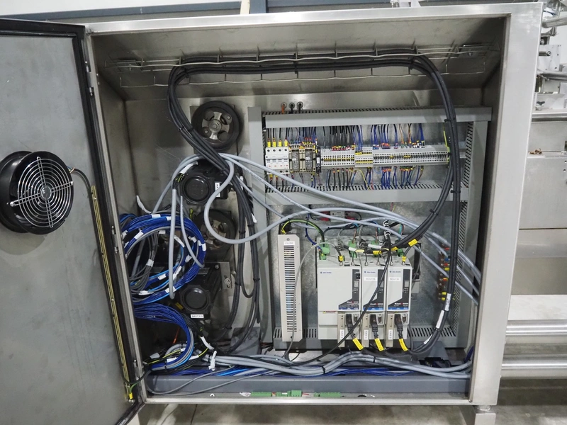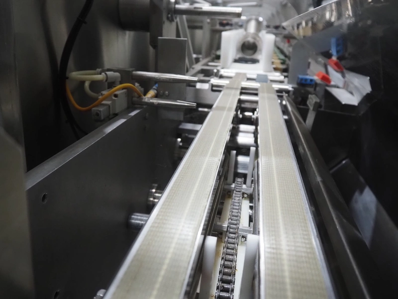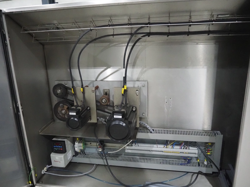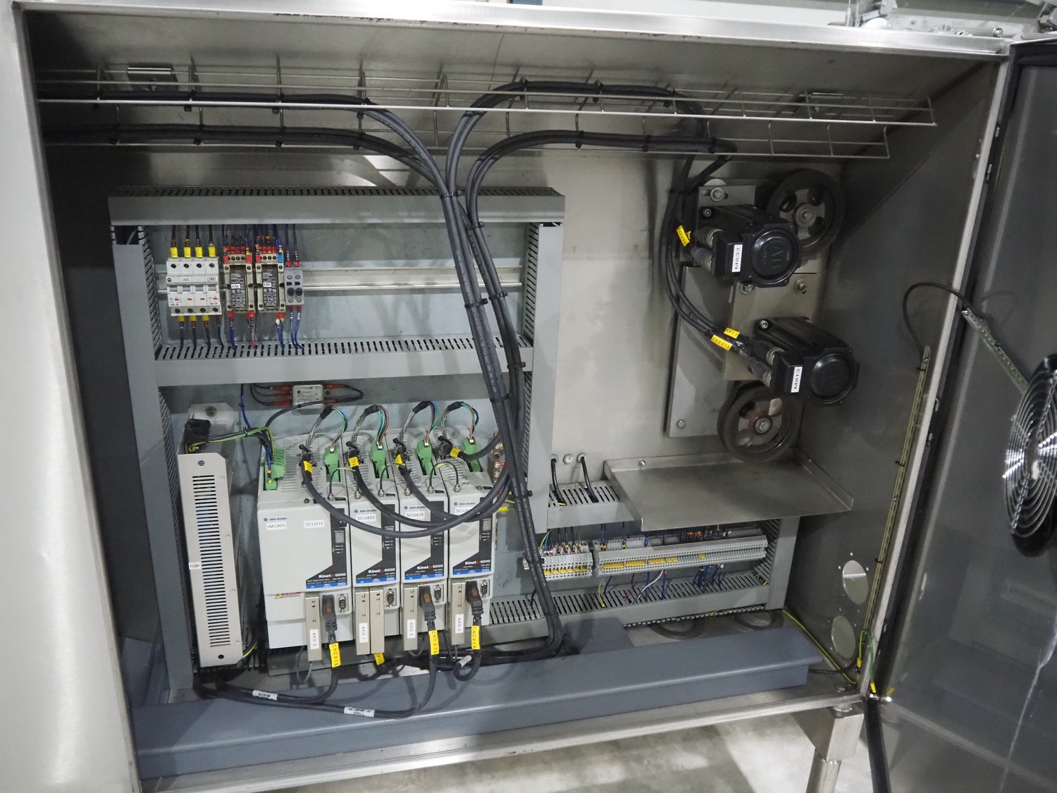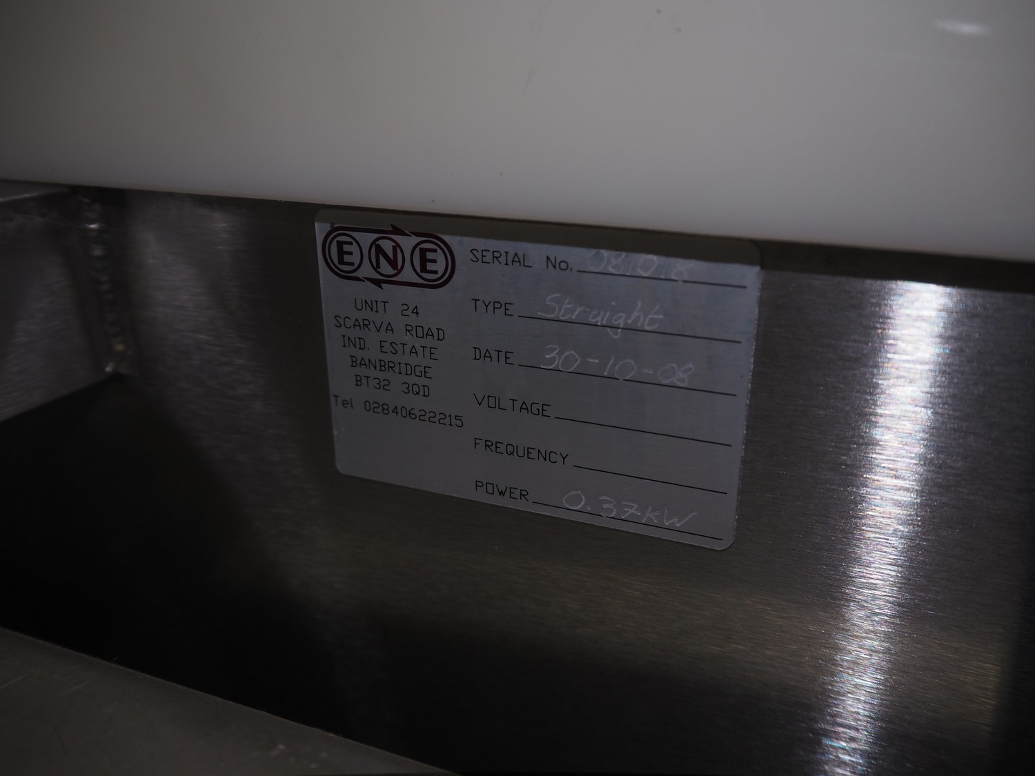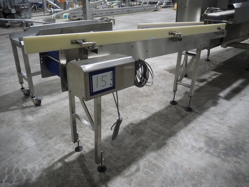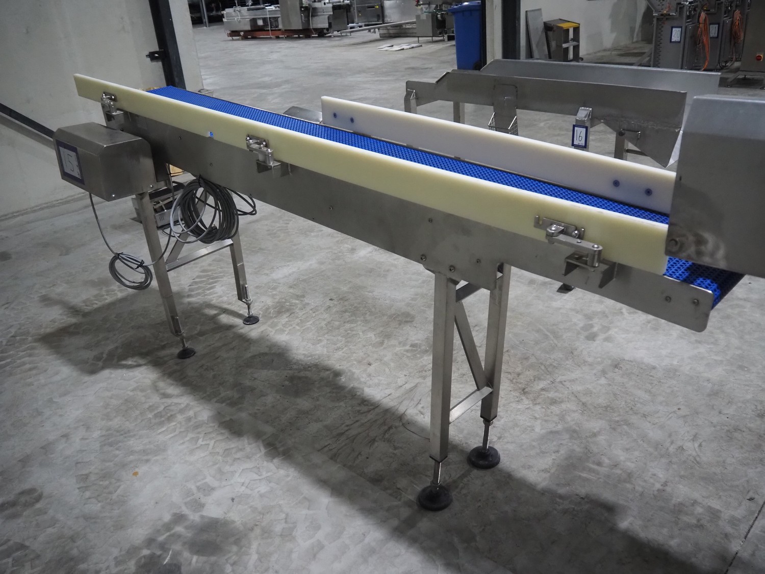 Bradman Lake Group dual feed flow packer, machine type: FT120CLX, serial number: 7097, year of construction: 2006, 415 V, 3 Ph, 50 Hz, 10 kW, plastic infeed belt with dividers, belt width: (2x) 40 mm, divider height: 35 mm, distance between dividers: 300 mm, seal width: 230 mm, total dimensions: 5750 mm x 1200 mm x 2500 mm. Including infeed and outfeed belt, plastic mesh infeed belt, 160 mm, total dimensions: 3500 mm x 980 mm x 1550 mm. Plastic outfeed belt, belt width: 300 mm, total dimensions: 2600 mm x 600 mm x 1250 mm.