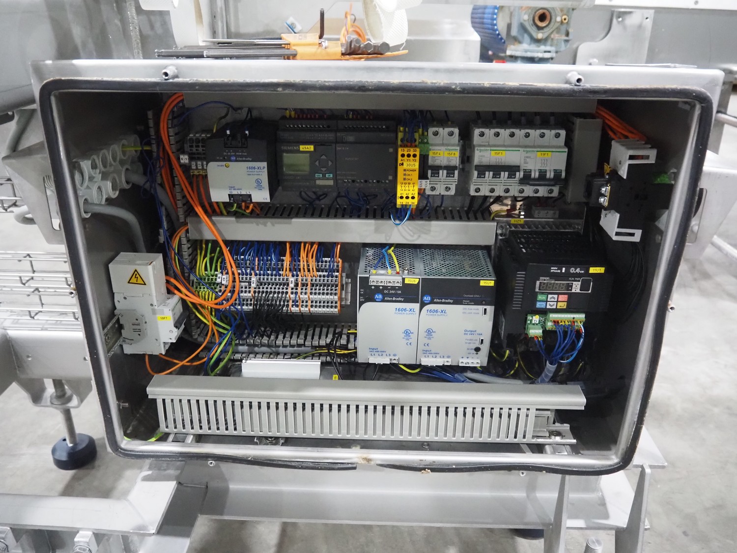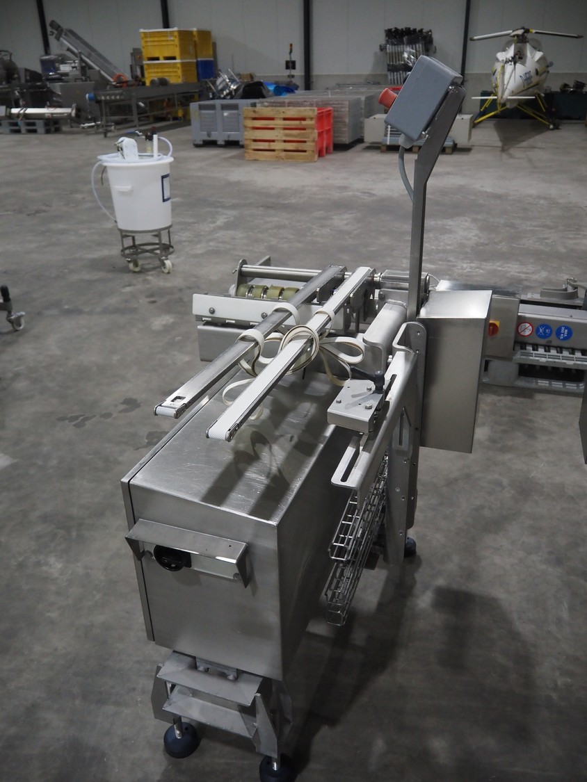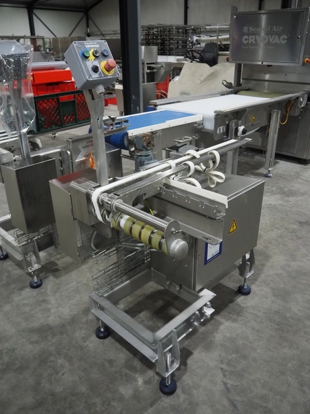 Cryovac mobile bag blower, model: LU 15, serial number: SN00104, year of construction: 2011, 400 V, 3 Ph, 50 Hz, 20 A, 0.55 kW, plastic belt, belt width: (1x) 30 mm, 2 lanes, total dimensions: 1060 mm x 800 mm x 1500 mm.