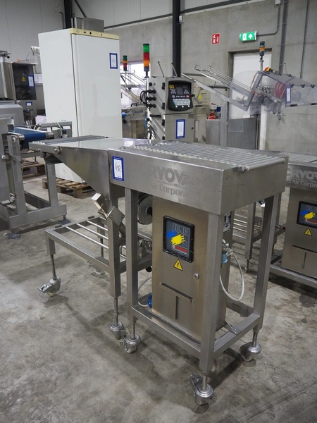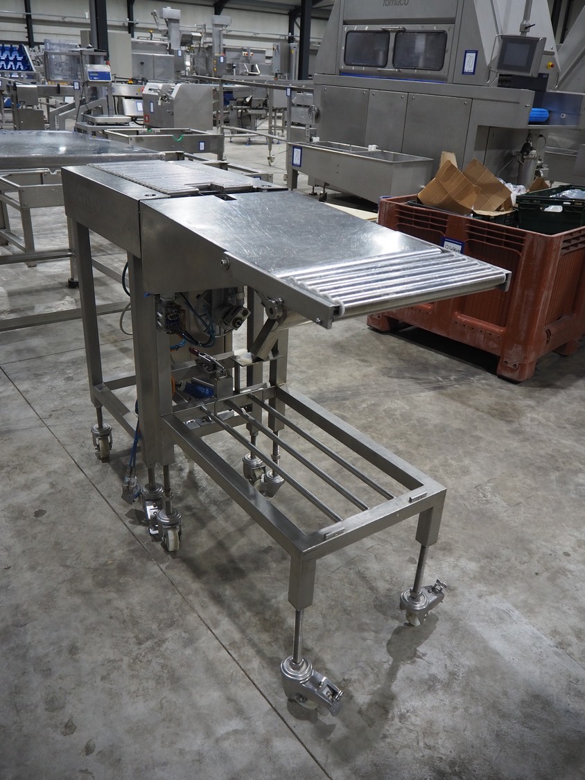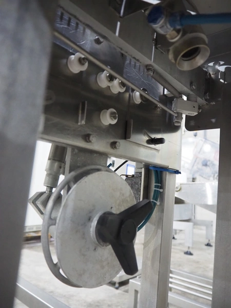 Cryovac bag blower, model: BL 19, serial number: A50200514, year of construction: 2003, 230 V, 50 Hz, 0.4 A, 0.1 kW, s/s rollers, roller width: 420 mm, 250 mm, total dimensions: 1400 mm x 520 mm x 900 mm.