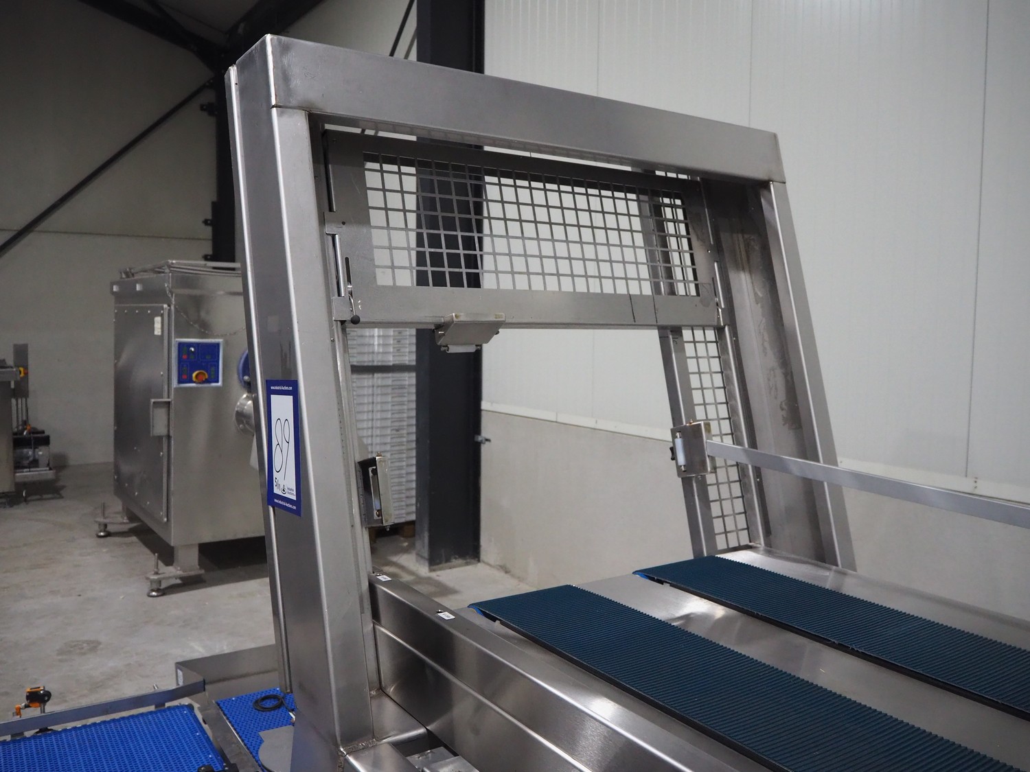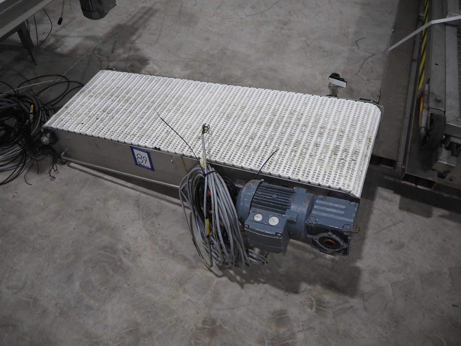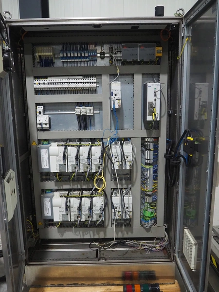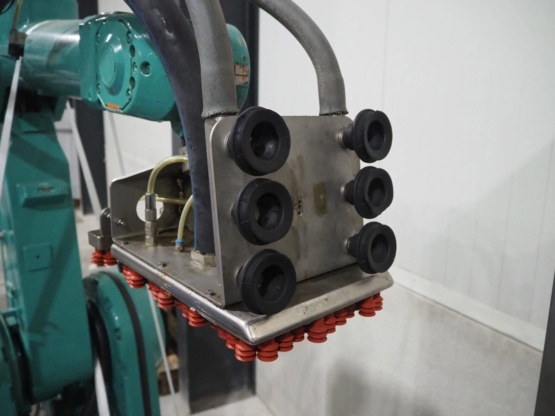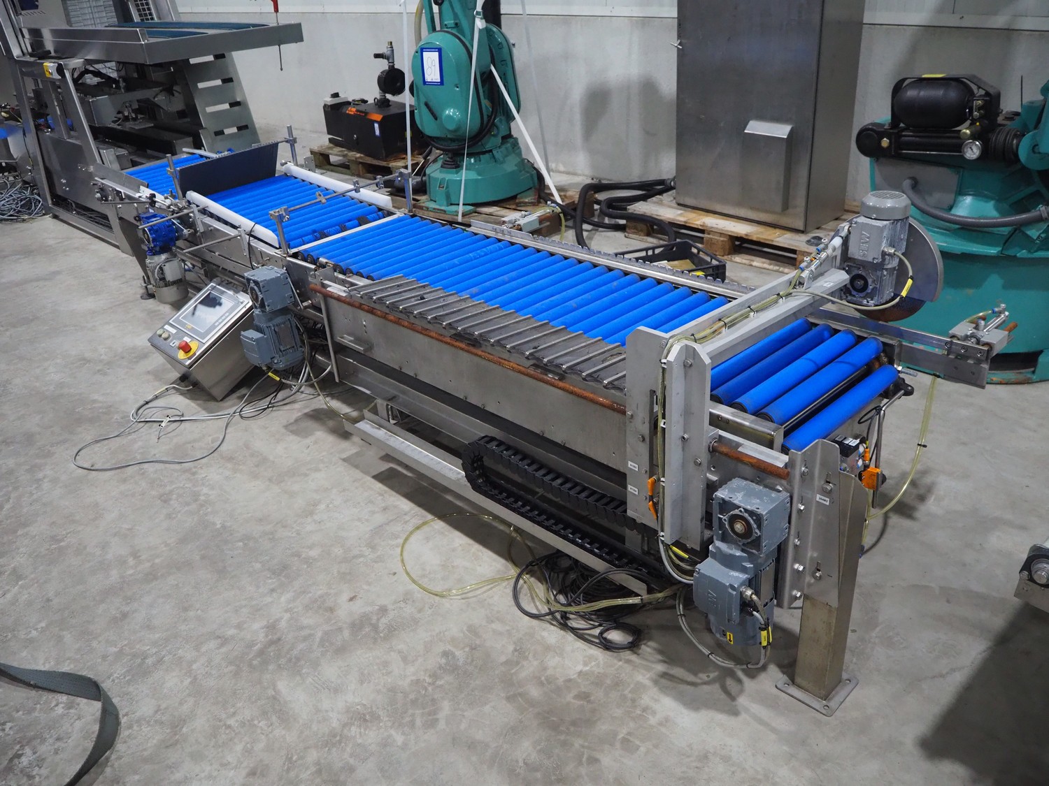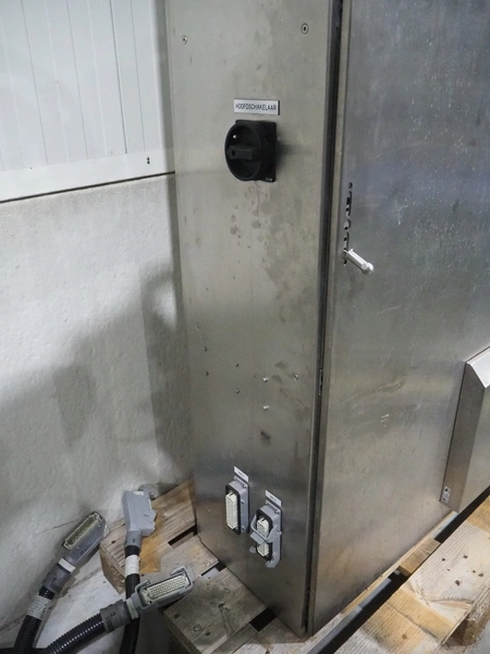 Kuka packaging robot, consisting of: Kuka robot, number: 991134623, 1600 mm x 800 mm x 1800 mm, ABB Robotics robot, dimensions: 2200 mm x 1100 mm x 2550 mm, 2 pallets with switch cabinets, dimensions: 1200 mm x 800 mm x 2250 mm, 1200 mm x 800 mm x 1950 mm, Busch pump, model: Mink MM 1144 BV, dimensions: 1200 mm x 800 mm x 650 mm, infeed conveyor, clearance: 285 mm, plastic belt, belt width: (2x) 200 mm, dimensions: 2850 mm x 1200 mm x 2100 mm, infeed belt, plastic mesh belt, belt width: 530 mm, total dimensions: 1650 mm x 1170 mm x 650 mm, roller conveyor, plastic rollers, roller width: 490 mm, total dimensions: 4150 mm x 1100 mm x 1000 mm, transport belt, coat belt, belt width: 545 mm, total dimensions: 1200 mm x 1150 mm x 1000 mm, pallet with racks, dimensions: 2300 mm x 1800 mm x 600 mm. Technical condition unknown.