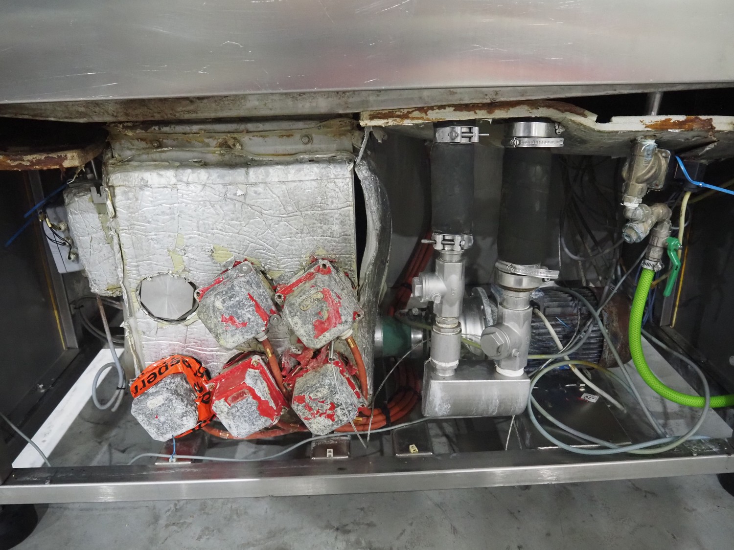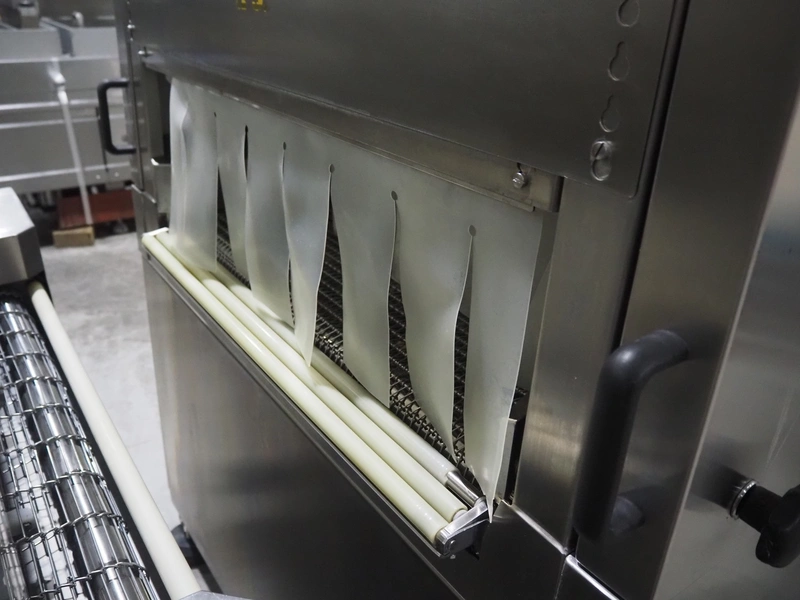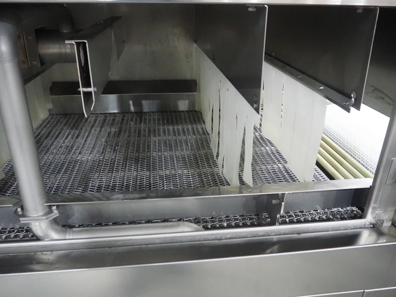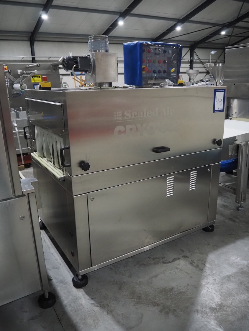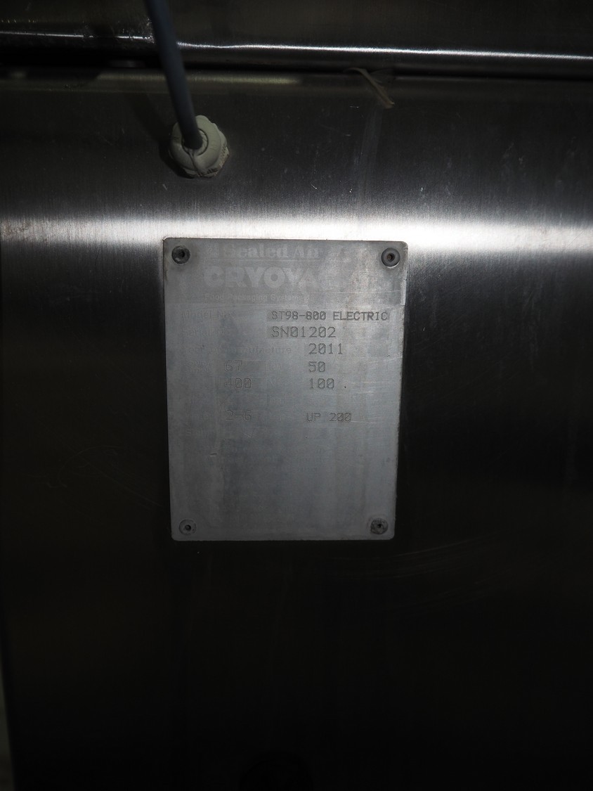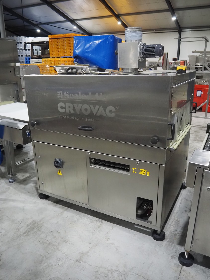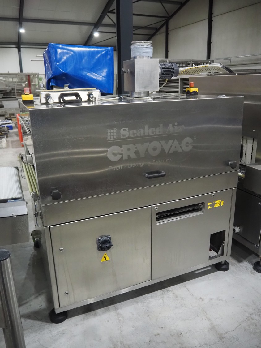 Cryovac shrink tunnel, model number: ST98-800 ELECTRIC, serial number: SN01202, year of construction: 2011, 400 V, 50 Hz, 67 A, s/s belt, belt width: 900 mm, clearance: 195 mm x 830 mm, total dimensions: 1550 mm x 1250 mm x 1900 mm.