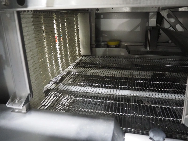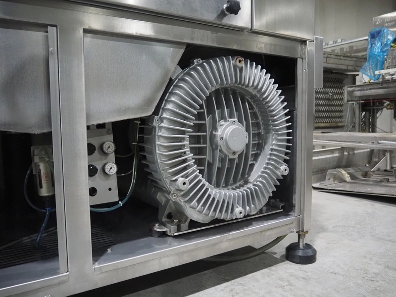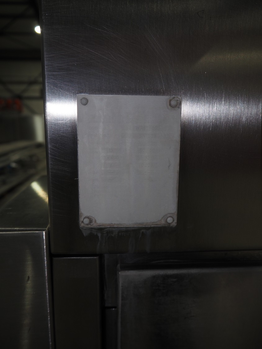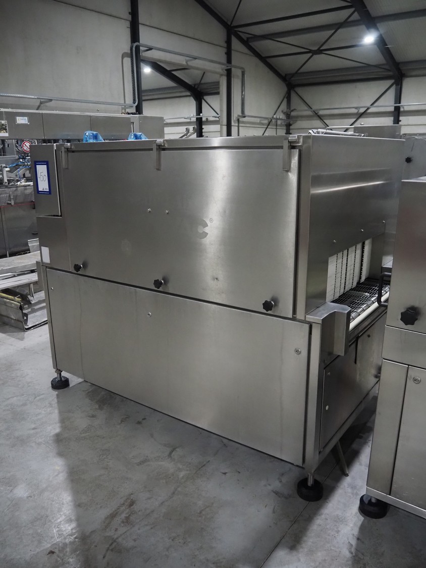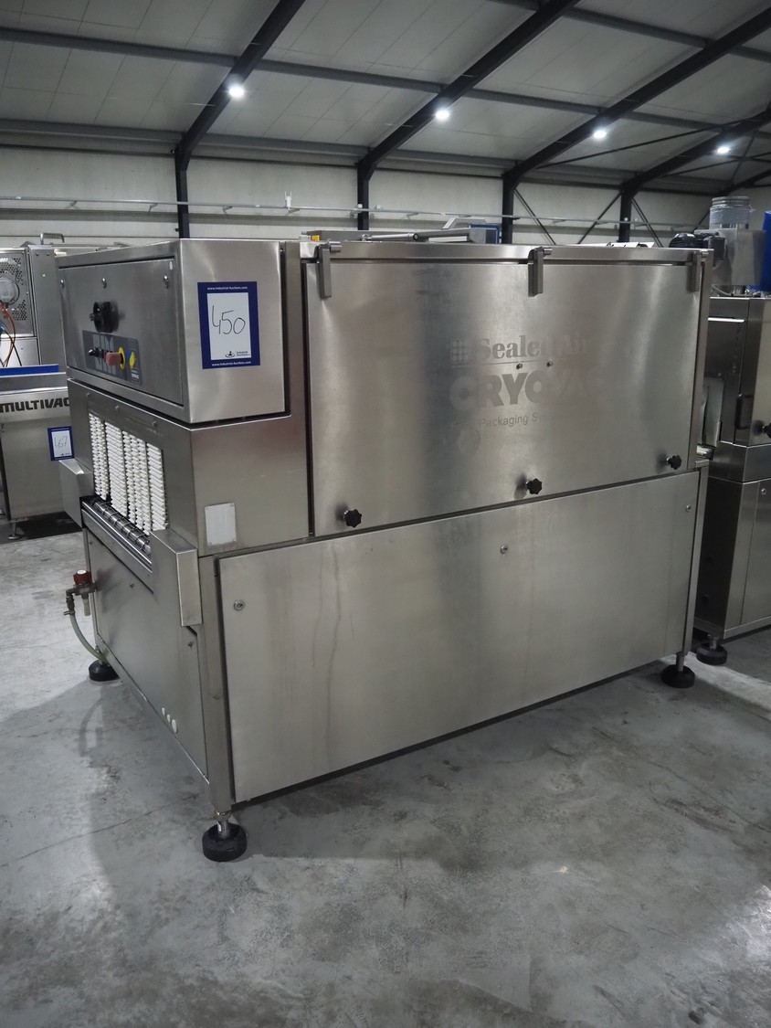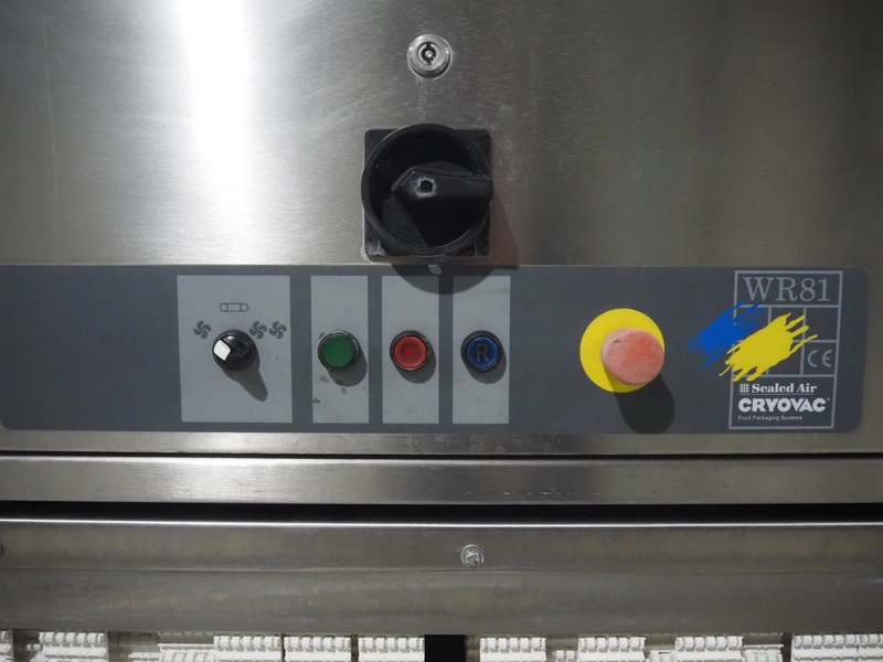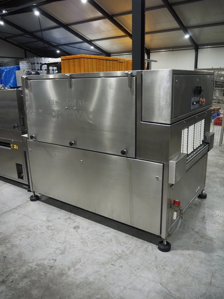 Cryovac dryer tunnel, model: WR81, serial number: SN7009, year of construction: 2011, 400 V, 3 Ph, 50/60 Hz, 13 A, 35 kW, s/s belt, belt width: 850 mm, clearance: 800 mm x 300 mm, total dimensions: 2050 mm x 1450 mm x 1600 mm.