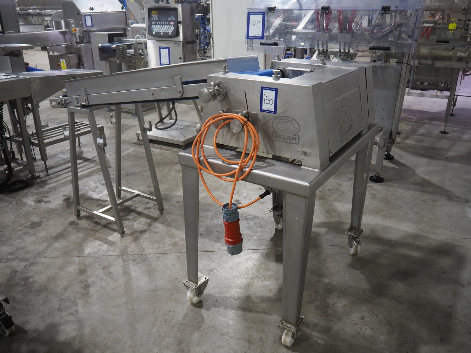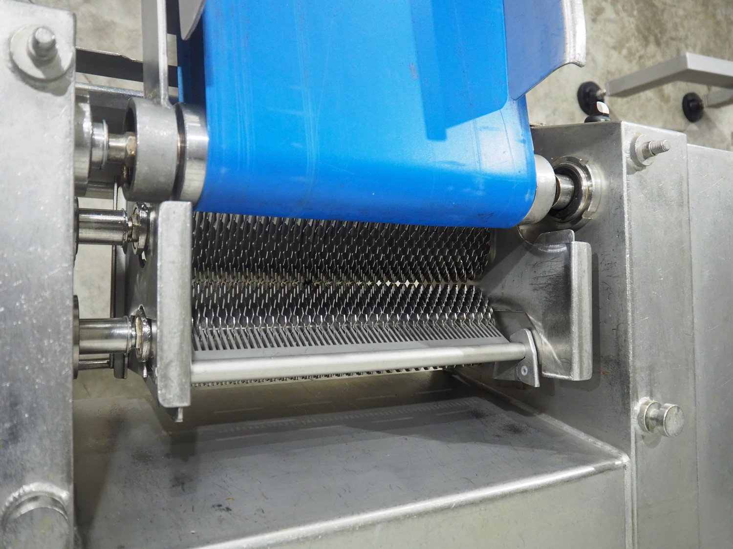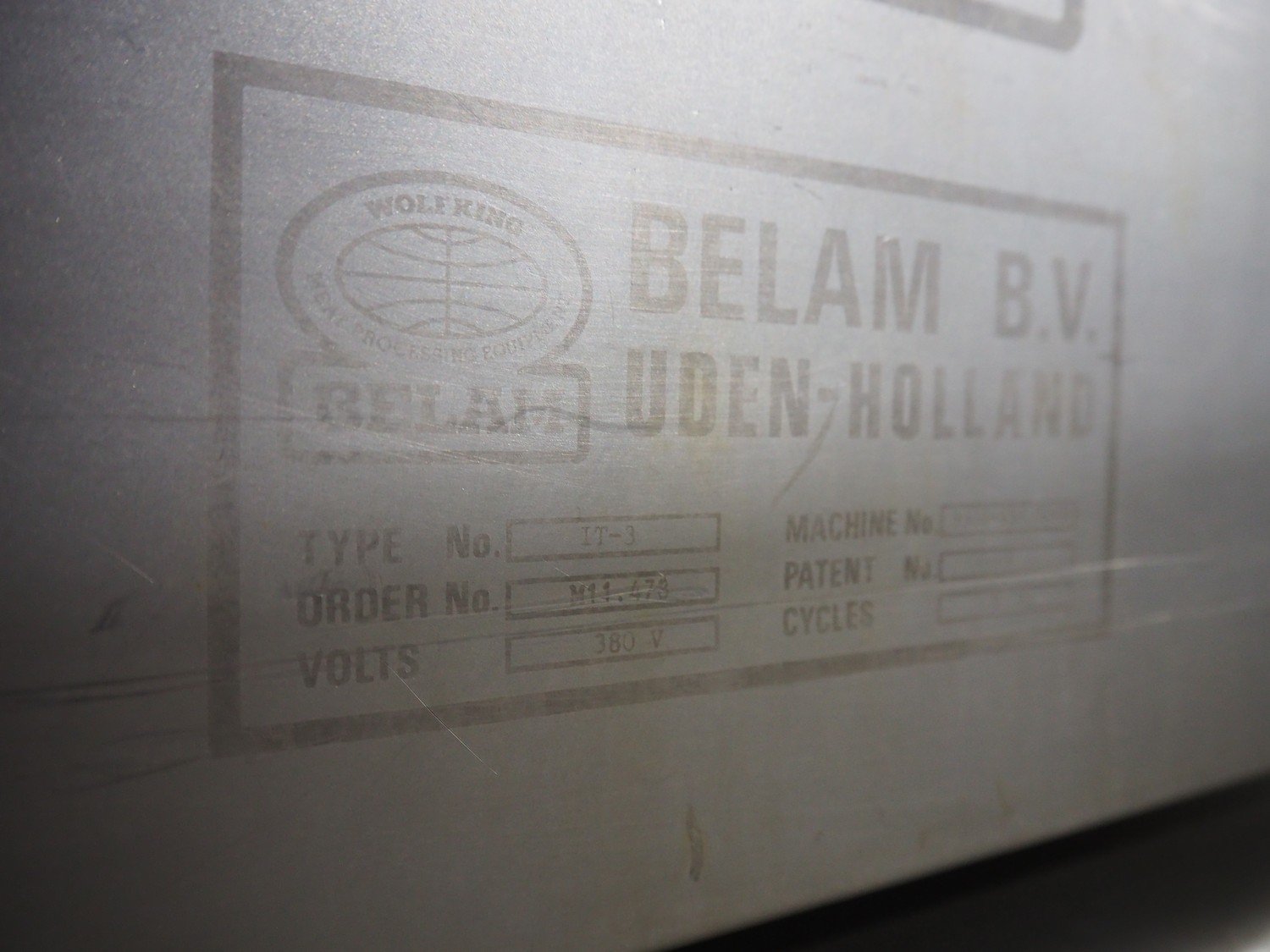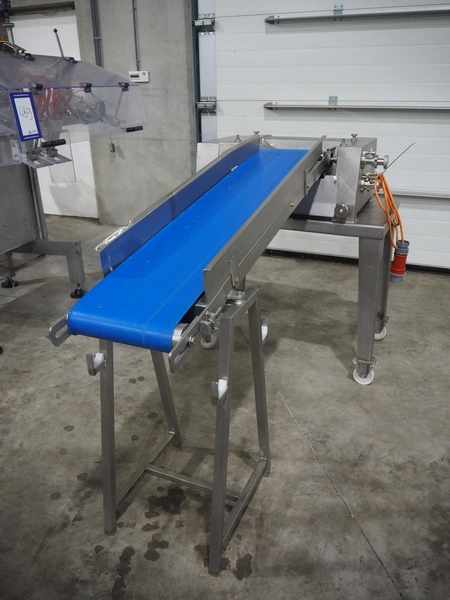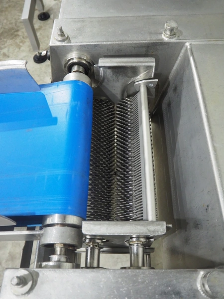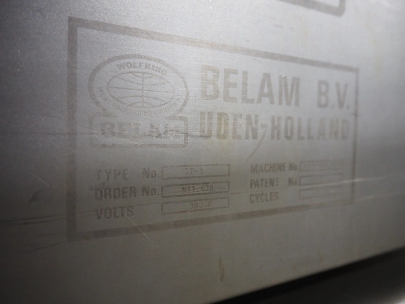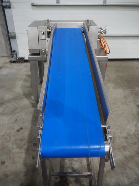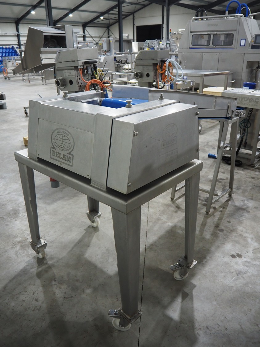 Belam B.V. tenderiser, type: IT-3, machine number: 9306-951.0069, 380 V, 50 Hz, plastic belt, belt width: 300 mm, working width: 330 mm, total dimensions: 2000 mm x 950 mm x 1250 mm.