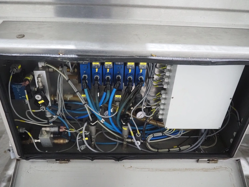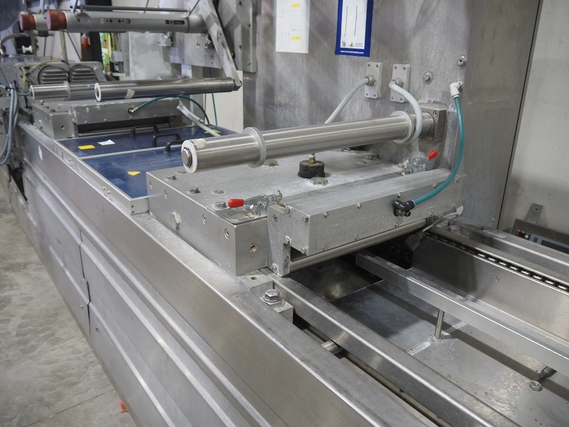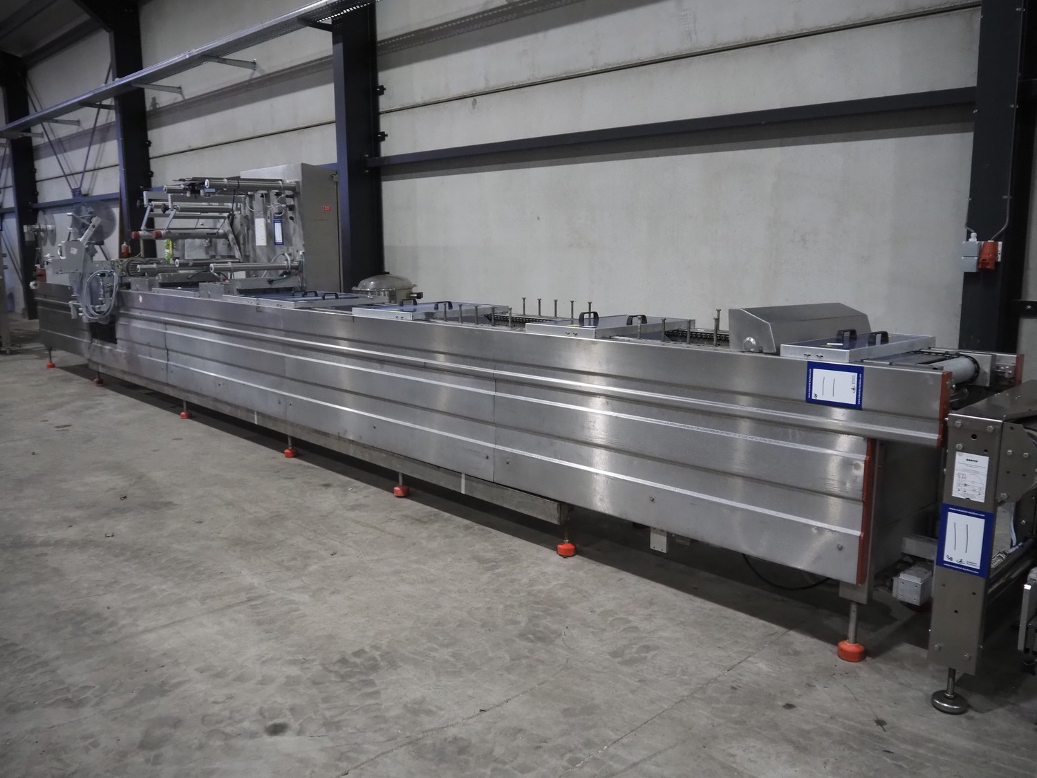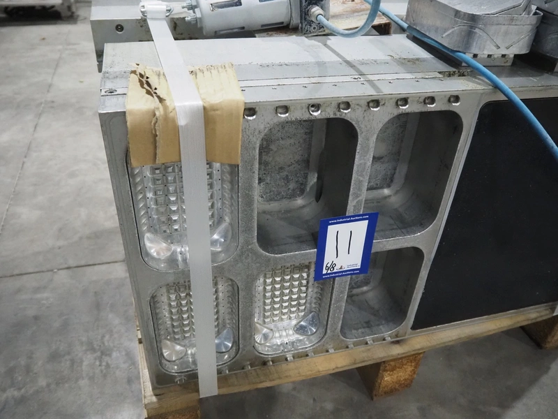 Repak thermoformer, type: RF3, machine number: 20321, year of construction: 2002, 220/380 V, 3 Ph, 50 Hz, 54 A, 20 kW, dye: (4x) 185 mm x 185 mm x 55 mm, plastic outfeed belts, belt width: (2x) 155 mm, ELS labeller, type: 520, machine number: 3854/2002, total dimensions: 10570 mm x 1680 mm x 2000 mm. Including suction device for rest film, dimensions: Ø 530 mm x 1160 mm, Additif film unwinding device, type: Jumbo, dimensions: 1150 mm x 850 mm x 900 mm, and 4 pallets with parts and dyes, dyes: (4x) 185 mm x 180 mm, (6x) 180 mm x 115 mm. Without vacuum pump.