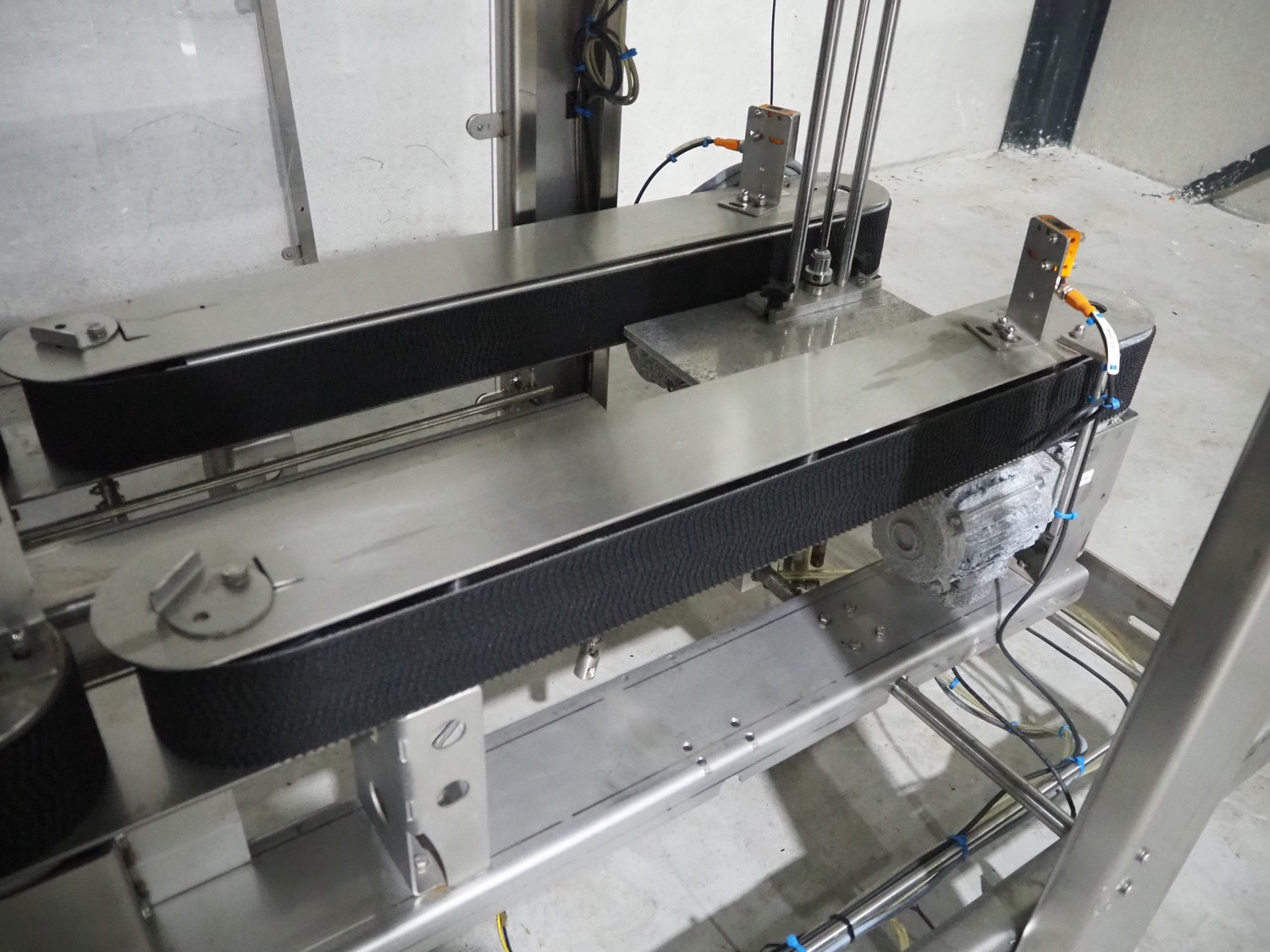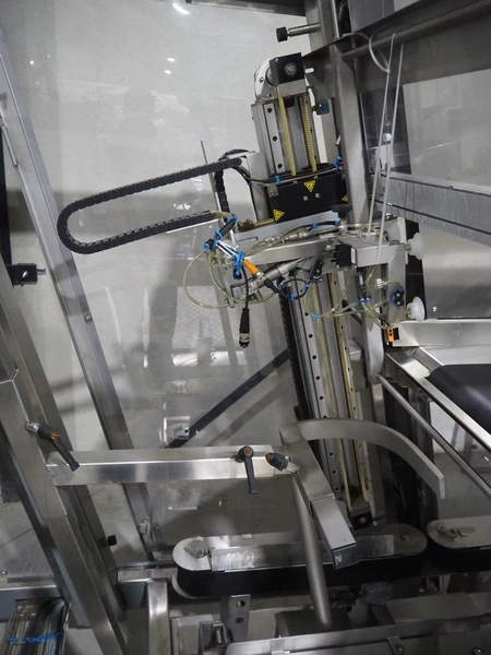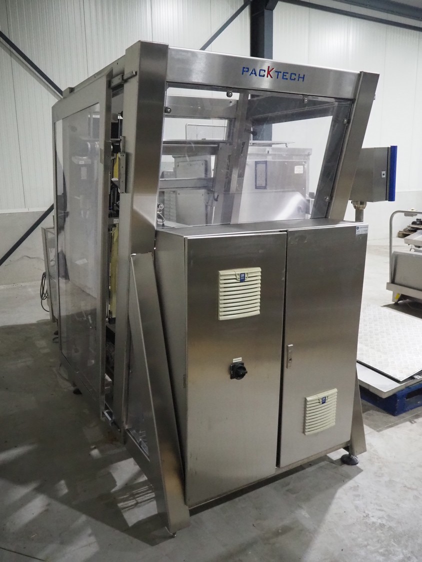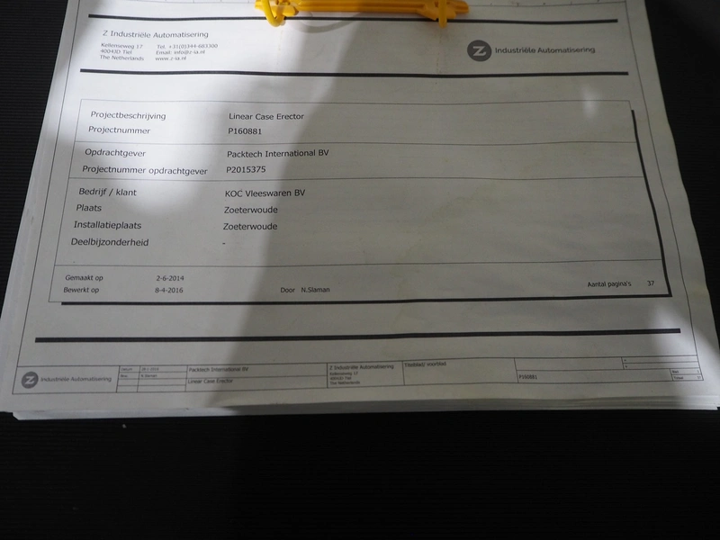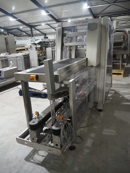 Paktech linear case erector, plastic belt, belt width: 400 mm, clearance: 225 mm, total dimensions: 3700 mm x 1650 mm x 2100 mm.