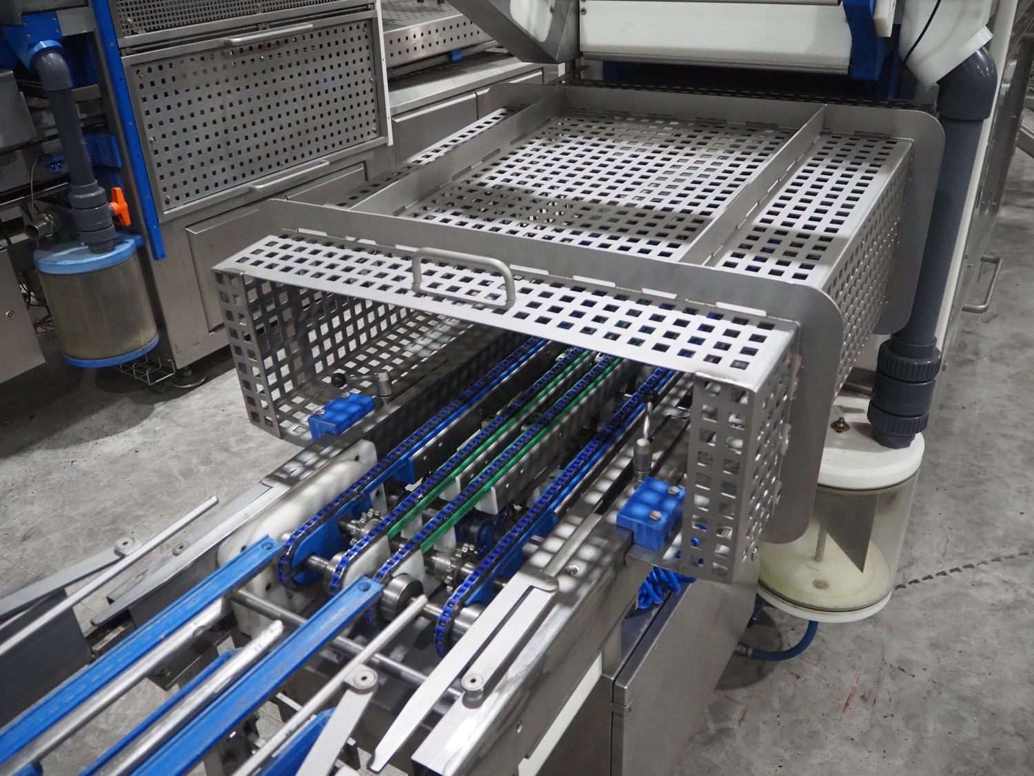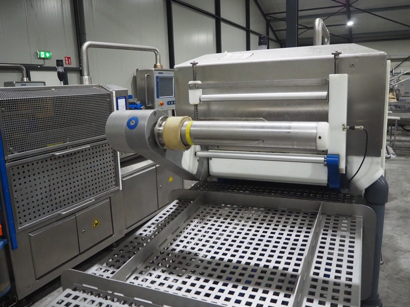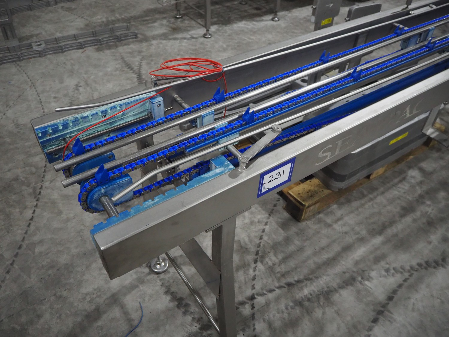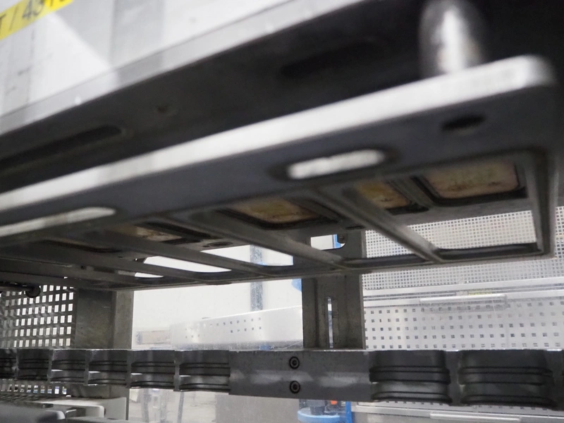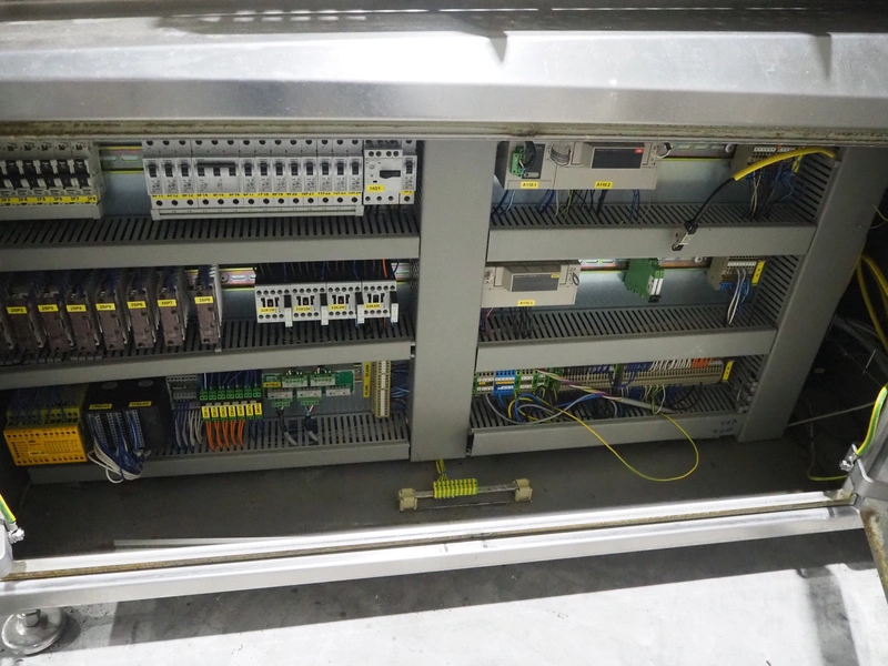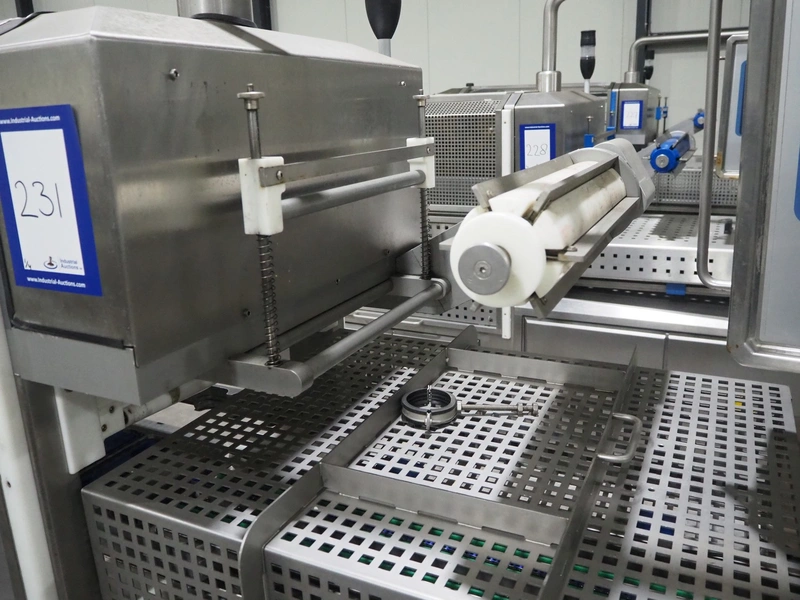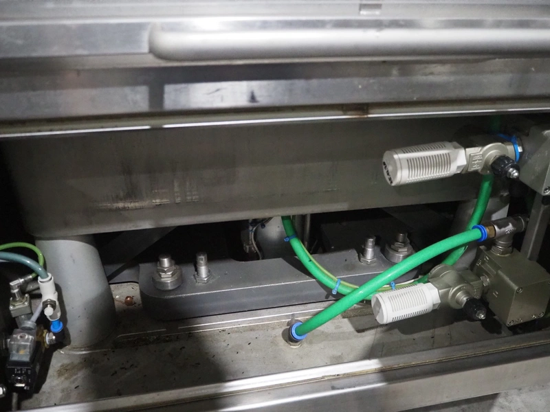 Sealpac traysealer, model: Sealpac 800, serial number: TVG 01109501, year of construction: 2004, 400/230 V, 3 Ph, 10 kW, weight: 2000 kg, dye: (6x) 258 mm x 70 mm, plastic belt, belt width: 360 mm, total dimensions: 6800 mm x 900 mm x 2100 mm. Including s/s trolley for dye's, dimensions: 1400 mm x 1000 mm x 1350 mm, pallet with dye, dye: (5x) 175 mm x 128 mm, total dimensions: 1200 mm x 800 mm x 400 mm.