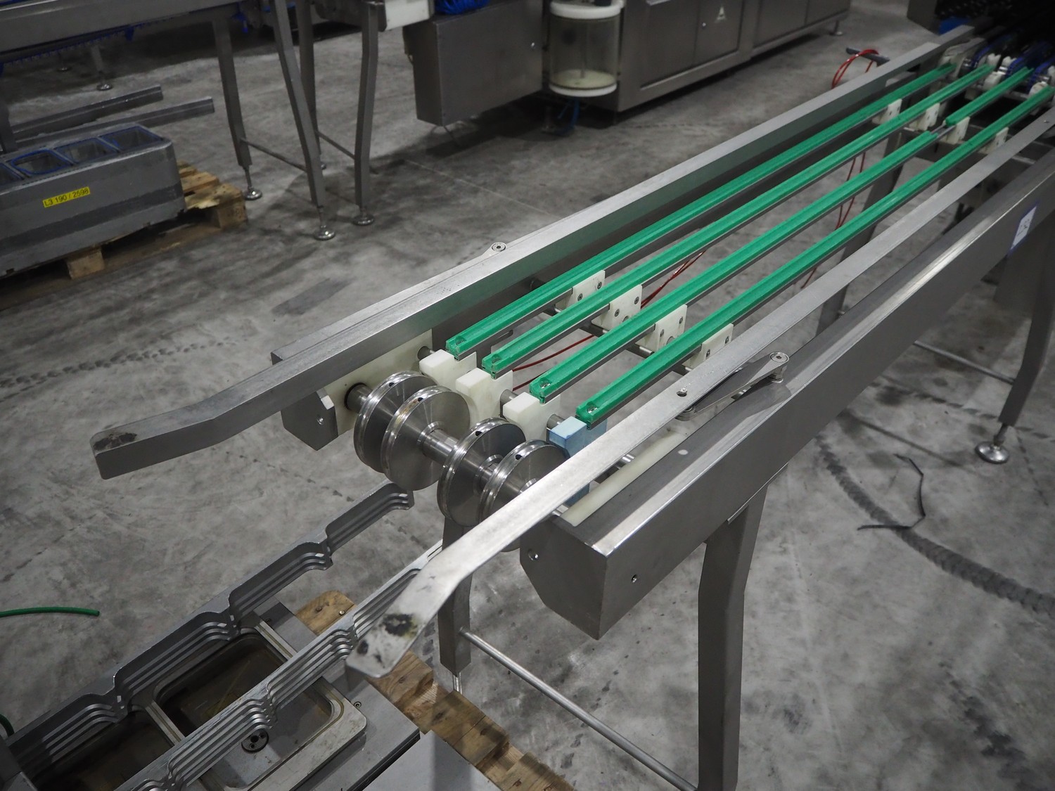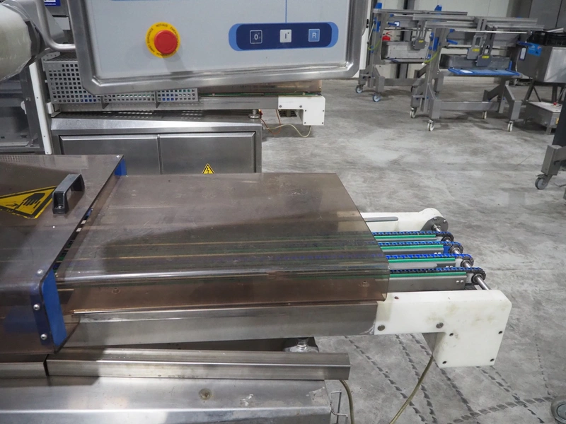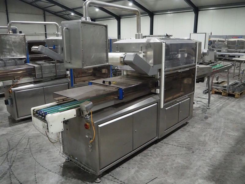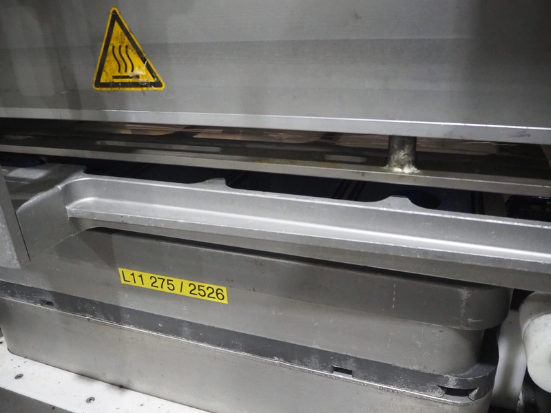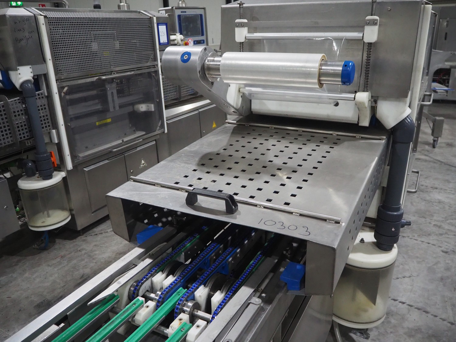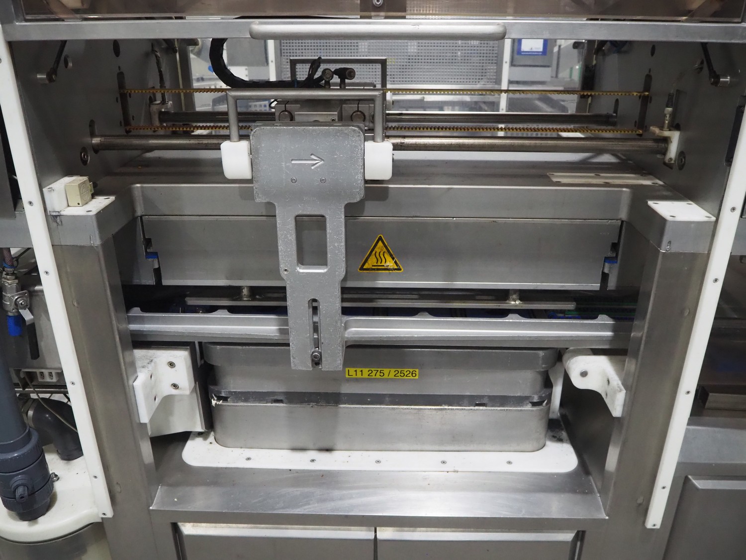 Sealpac traysealer, model: Sealpac 800, serial number: TVG 018640, year of construction: 2003, 400/230 V, 3 Ph, 10 kW, weight: 2000 kg, film width: 325 mm, dye: (4x) 260 mm x 158 mm, total dimensions: 6000 mm x 900 mm x 2100 mm. Including s/s trolley for dye's, dye: (4x) 225 mm x 178 mm, (5x) 230 mm x 168 mm, total dimensions: 1200 mm x 800 mm x 500 mm.