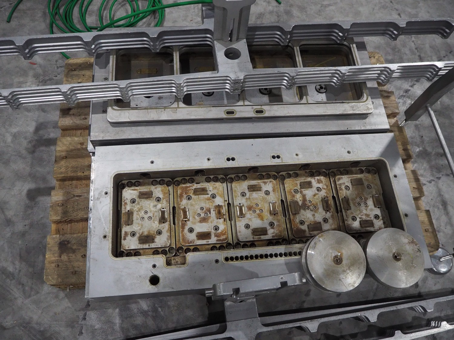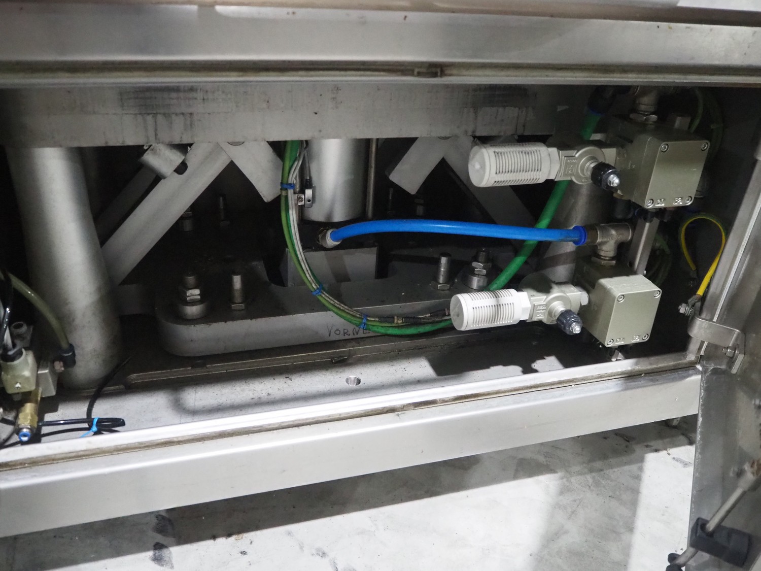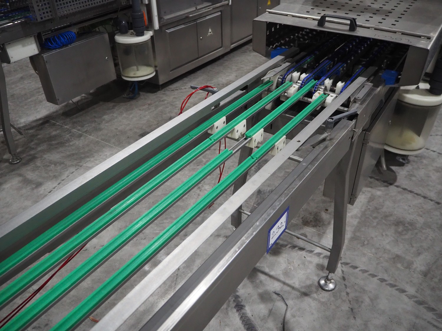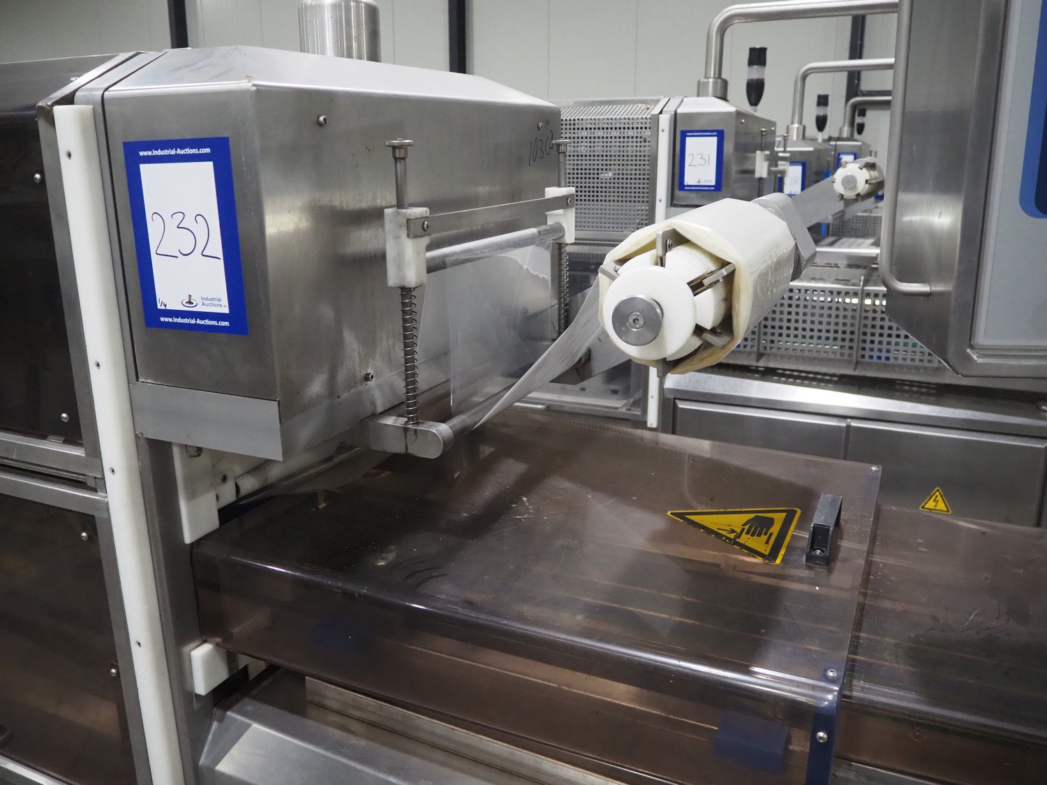 Sealpac traysealer, model: Sealpac 800, serial number: TVG 018640, year of construction: 2003, 400/230 V, 3 Ph, 10 kW, weight: 2000 kg, film width: 325 mm, dye: (4x) 260 mm x 158 mm, total dimensions: 6000 mm x 900 mm x 2100 mm. Including s/s trolley for dye's, dye: (4x) 225 mm x 178 mm, (5x) 230 mm x 168 mm, total dimensions: 1200 mm x 800 mm x 500 mm.