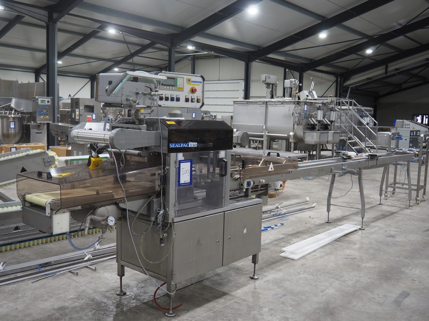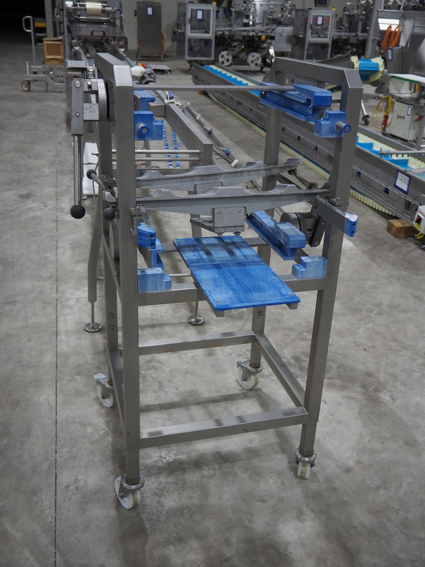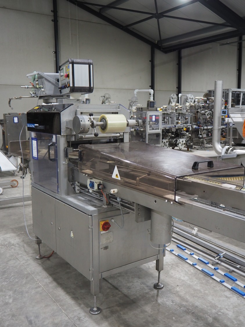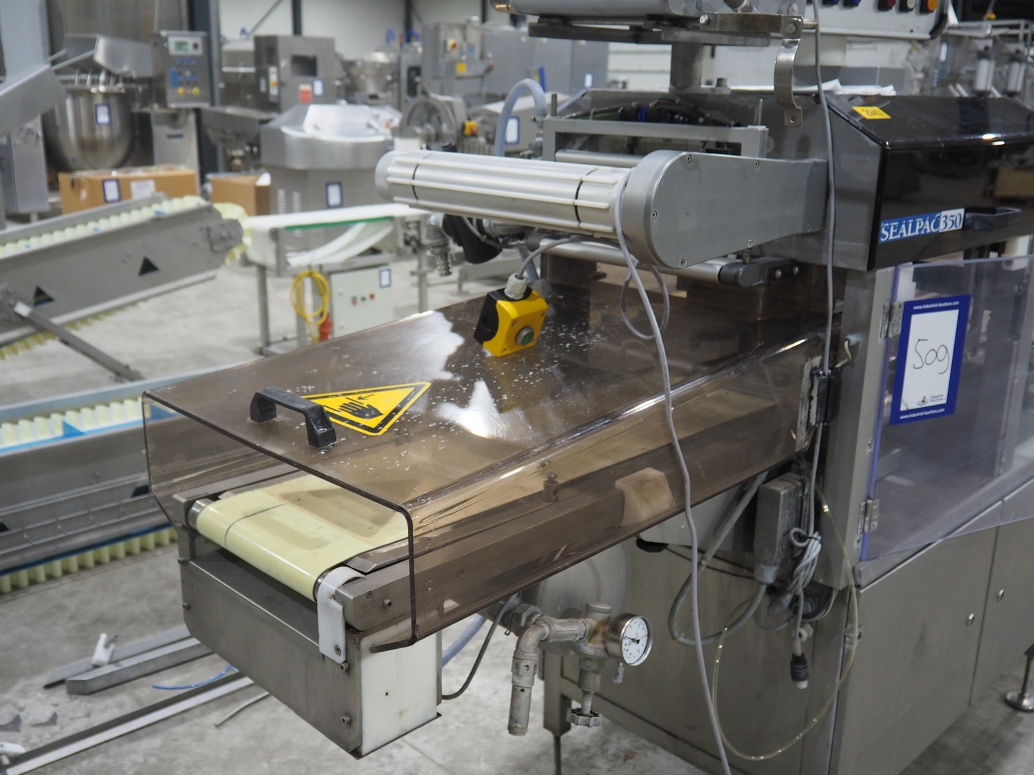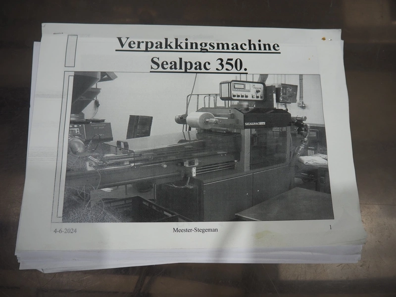 Sealpac traysealer, type: SEALPAC 350, serial number: TVG 02 823 01, year of construction: 2003, 400 V, 3 Ph, 3 kW, weight: 450 kg, dimensions dye: (2x) ø 115 mm, plastic belt, belt width: 250 mm, with Witt Gasetechnik gas mixing station total dimensions: 7000 mm x 700 mm x 1830 mm. Including s/s tool trolley, dimensions: 800 mm x 700 mm x 1350 mm.