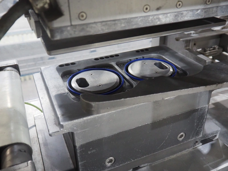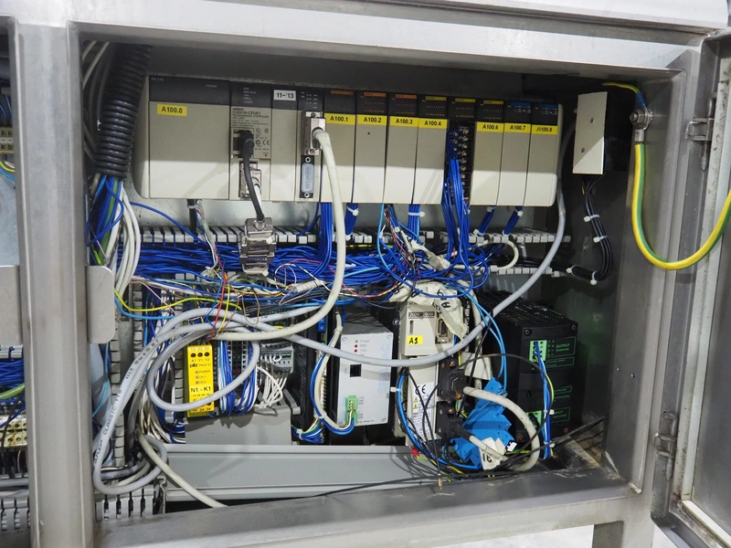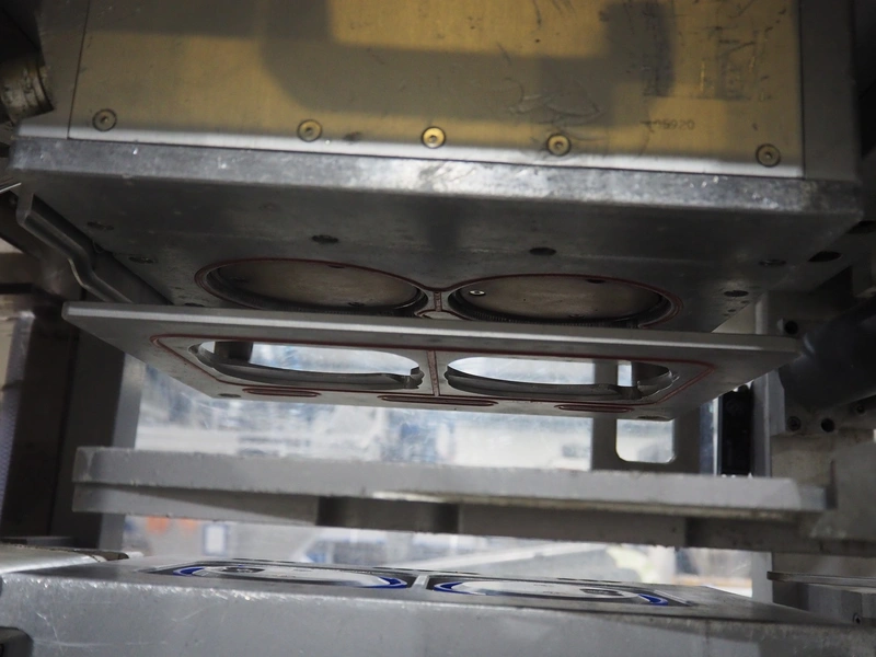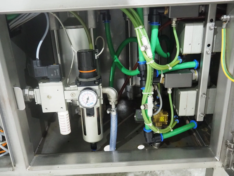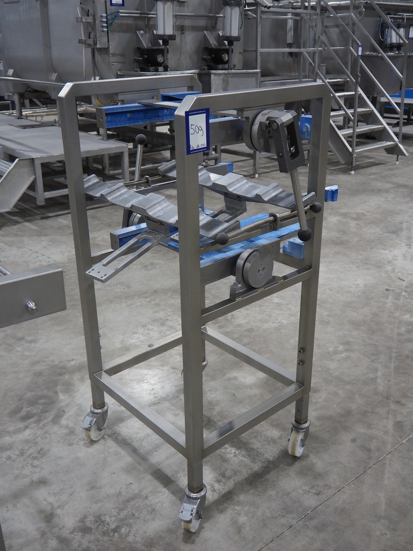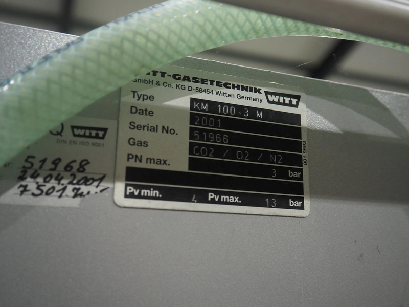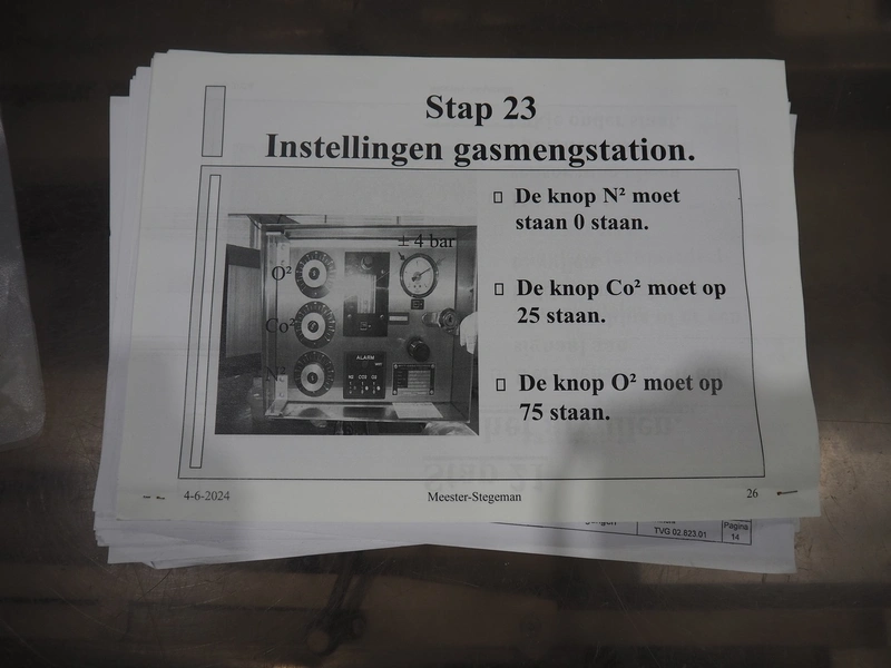 Sealpac traysealer, type: SEALPAC 350, serial number: TVG 02 823 01, year of construction: 2003, 400 V, 3 Ph, 3 kW, weight: 450 kg, dimensions dye: (2x) ø 115 mm, plastic belt, belt width: 250 mm, with Witt Gasetechnik gas mixing station total dimensions: 7000 mm x 700 mm x 1830 mm. Including s/s tool trolley, dimensions: 800 mm x 700 mm x 1350 mm.