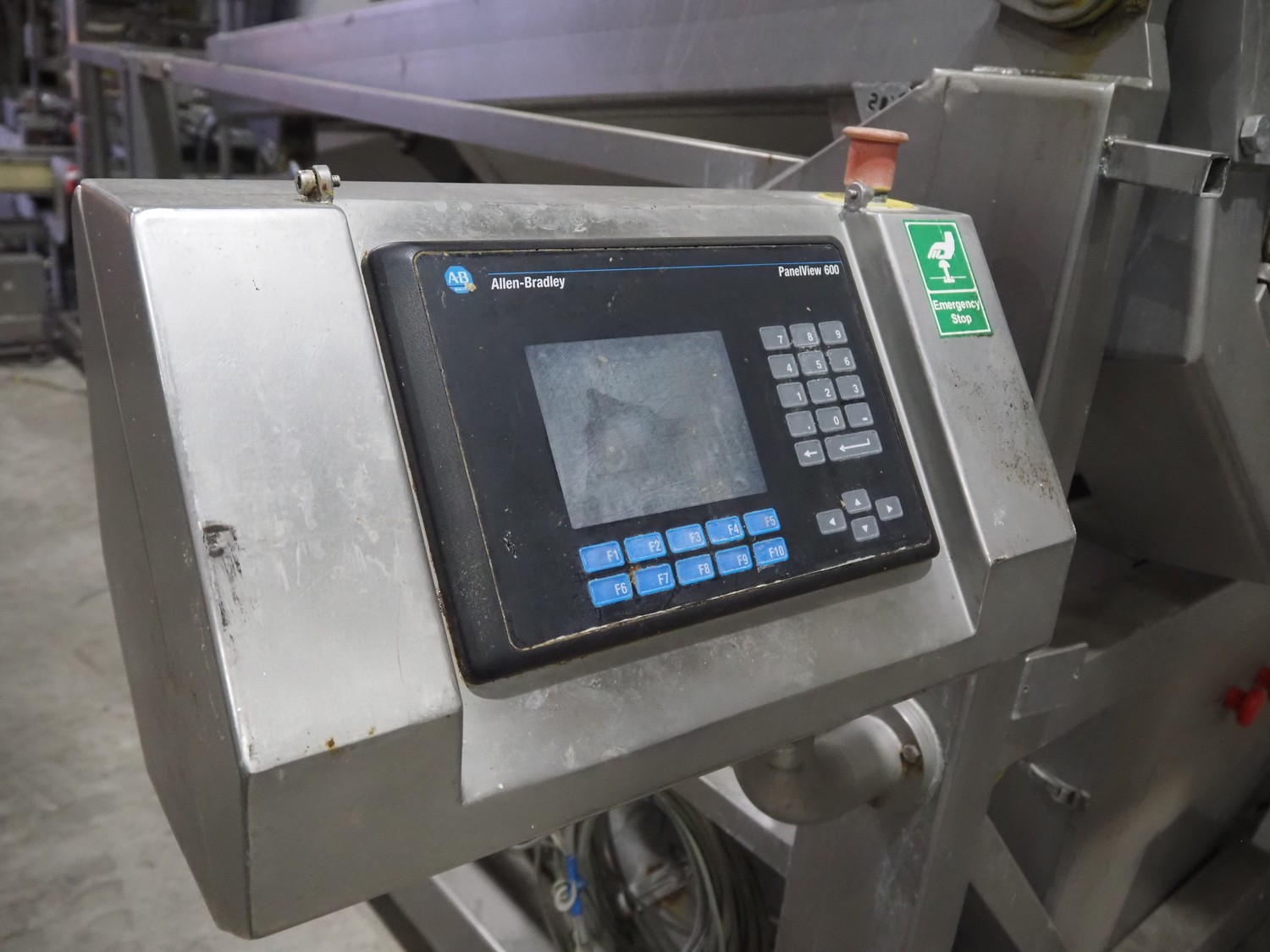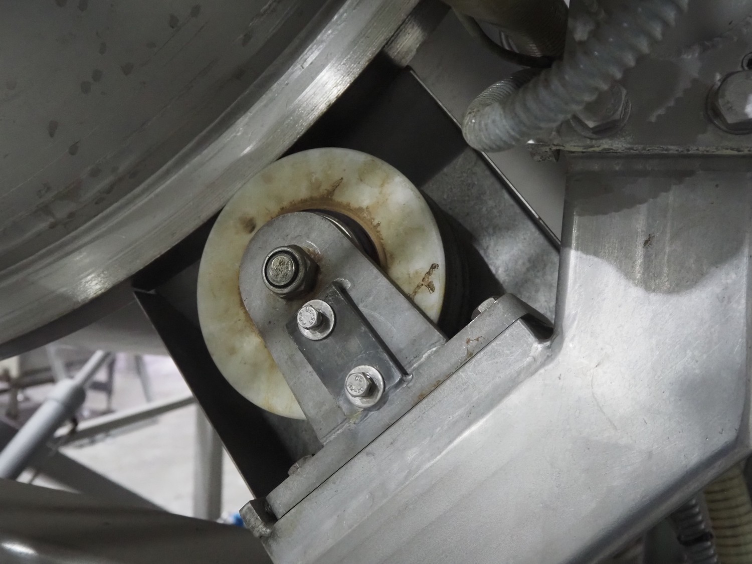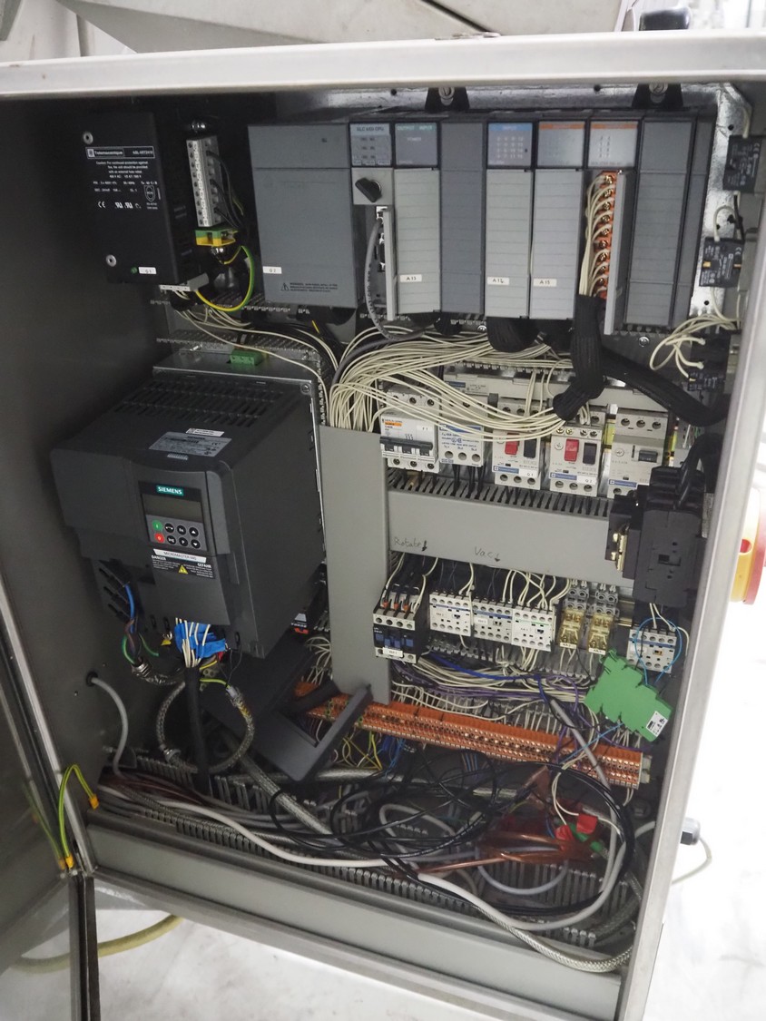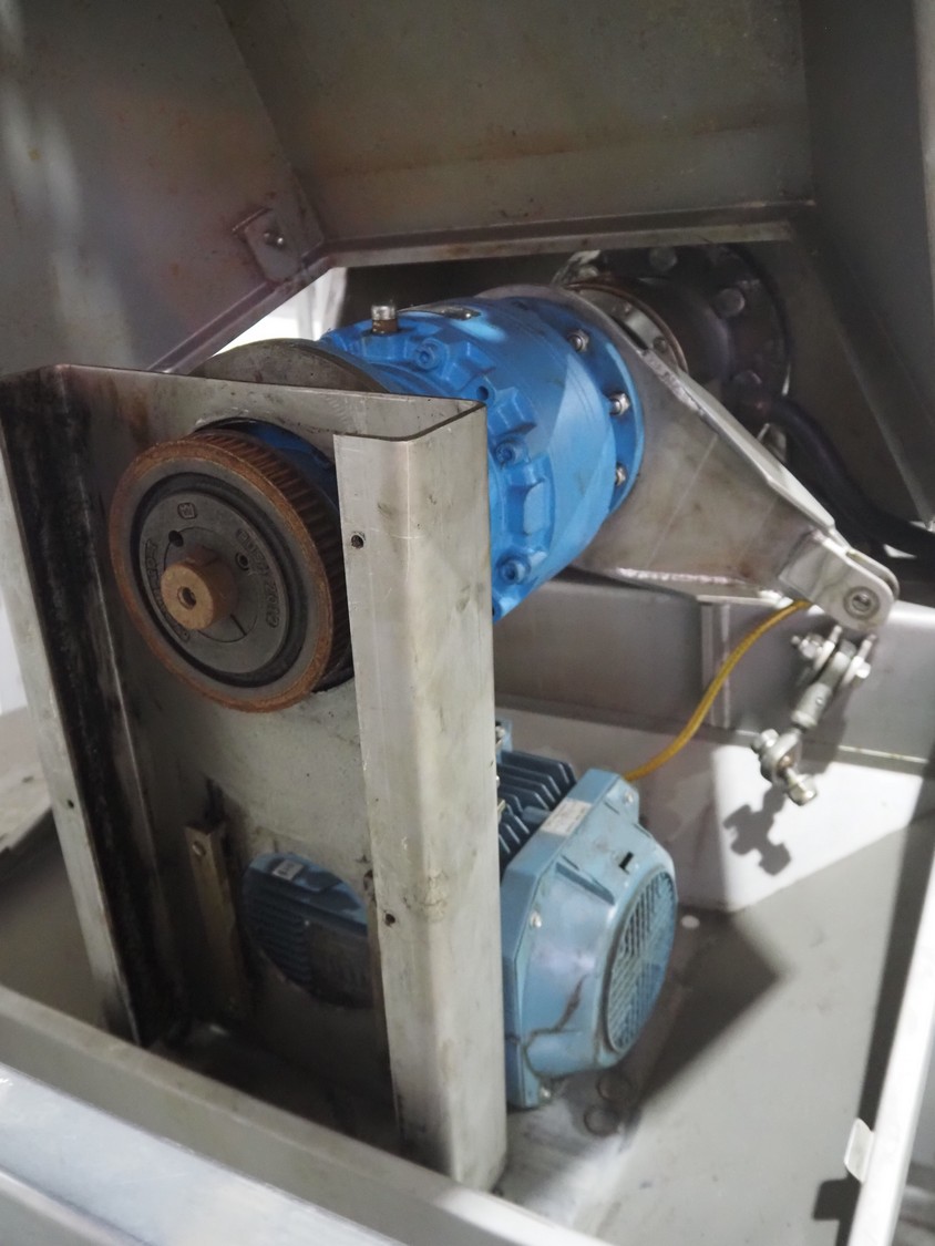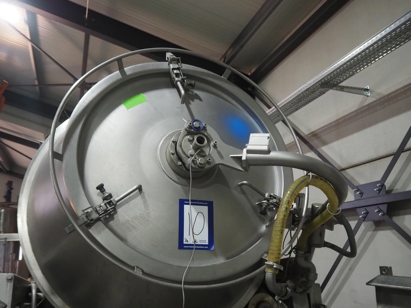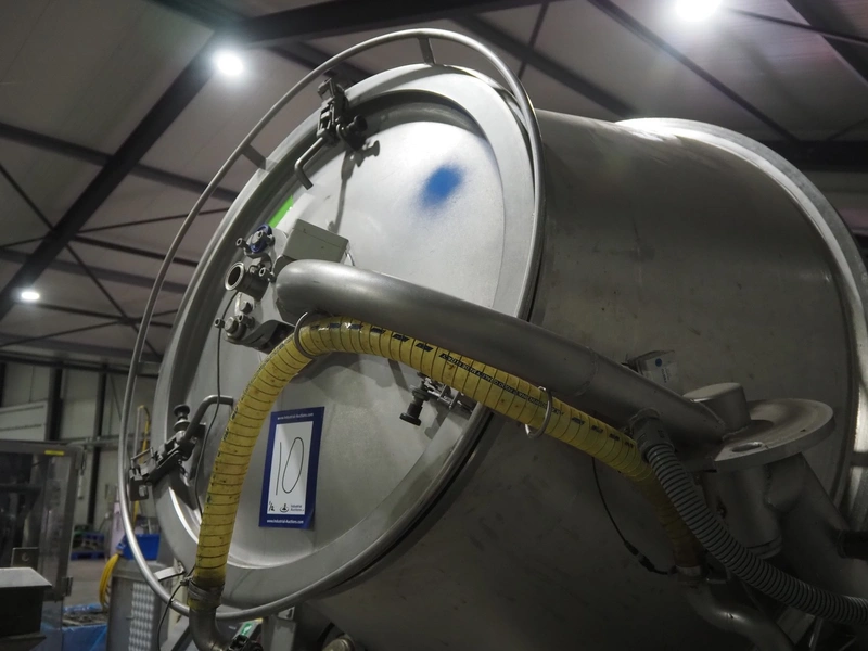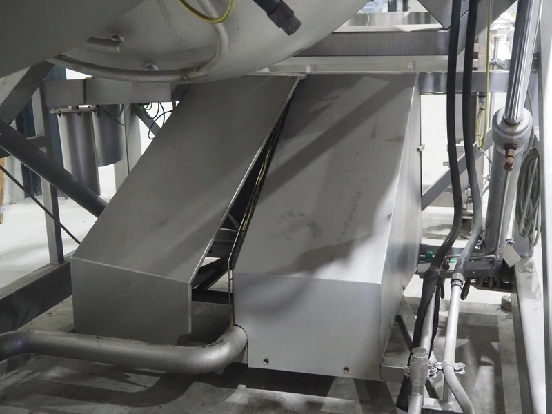 Wolfking Scanio vacuum tumbler with lifter for 200 liter meat bins, type: TRC2.5, serial number: 9241, year of construction: 2000, 415 V, 50 Hz, 20.4 A, total dimensions: 3750 mm x 2400 mm x 2750 mm. Lifter dimensions: 1600 mm x 1550 mm x 2720 mm. Without vacuum pump.