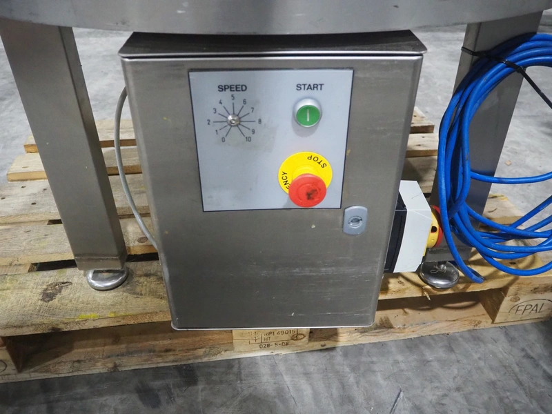 Icon Engineering s/s turning table, year of construction: 18/01/02, diameter table: 1010 mm, total dimensions: Ø 1040 mm x 860 mm.