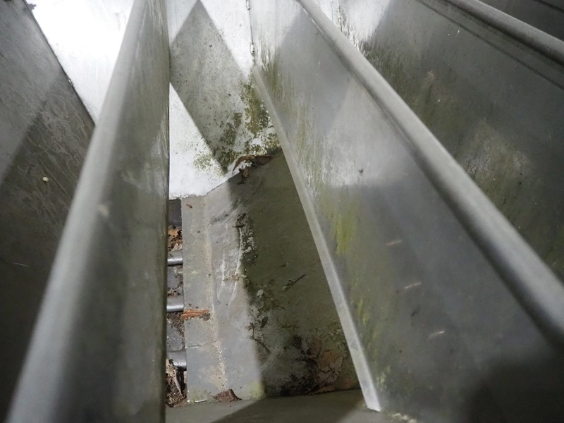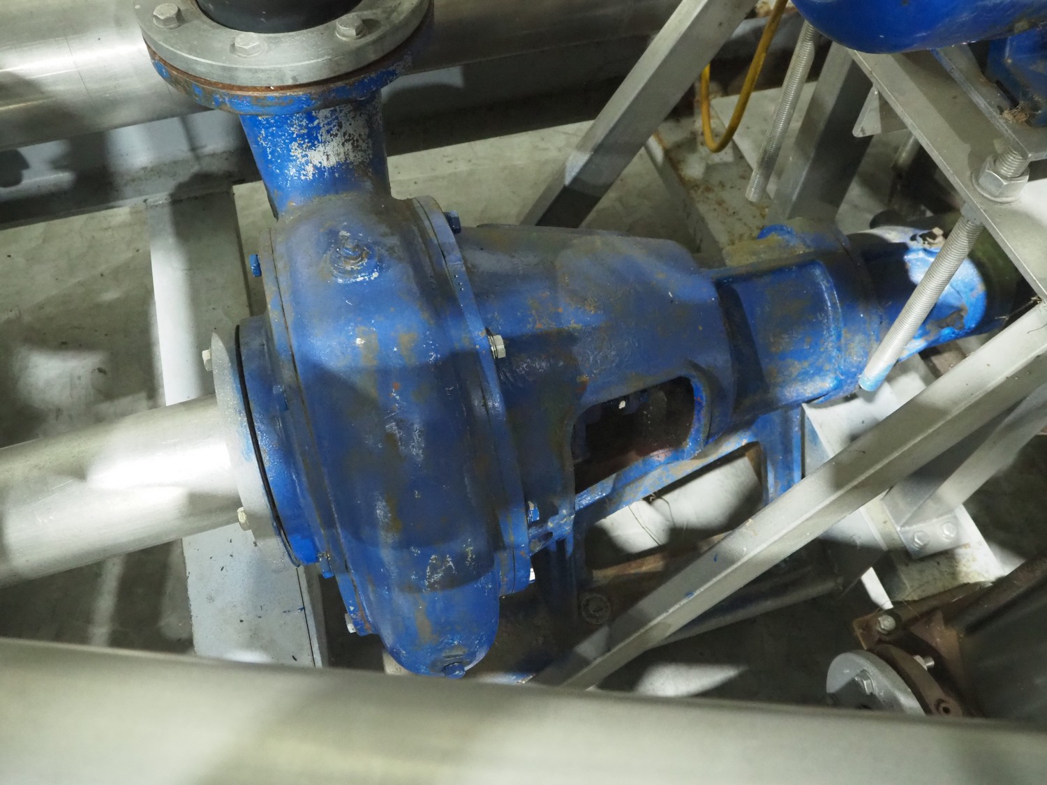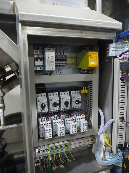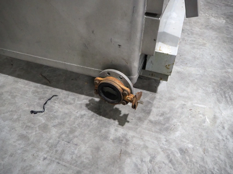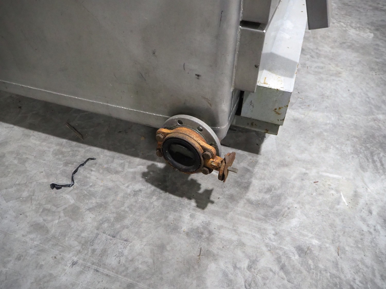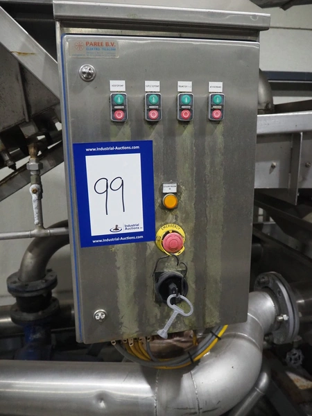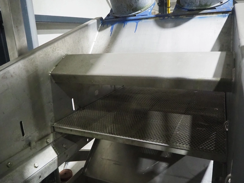 Vegetable washer with vibrating gutter, gutter width: 750 mm, perforations: Ø 5 mm, total dimensions: 5500 mm x 1600 mm x 2700 mm.