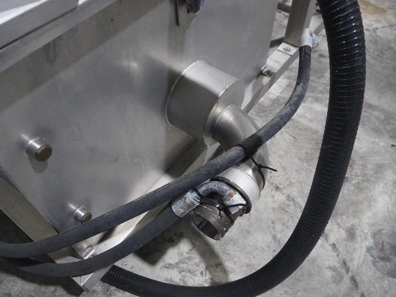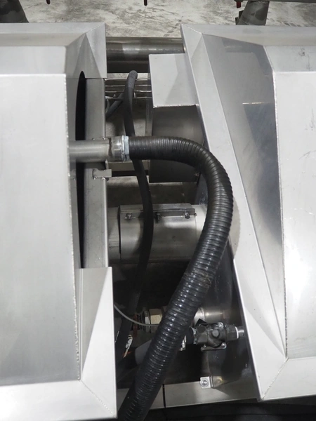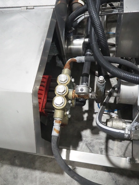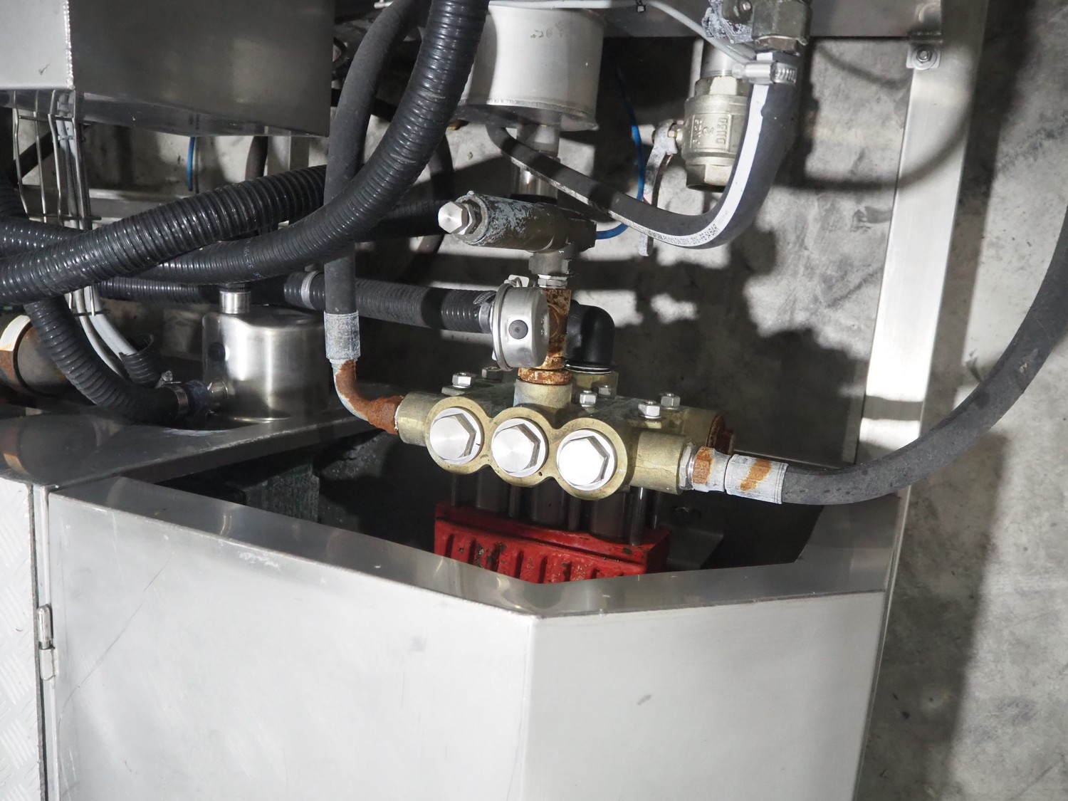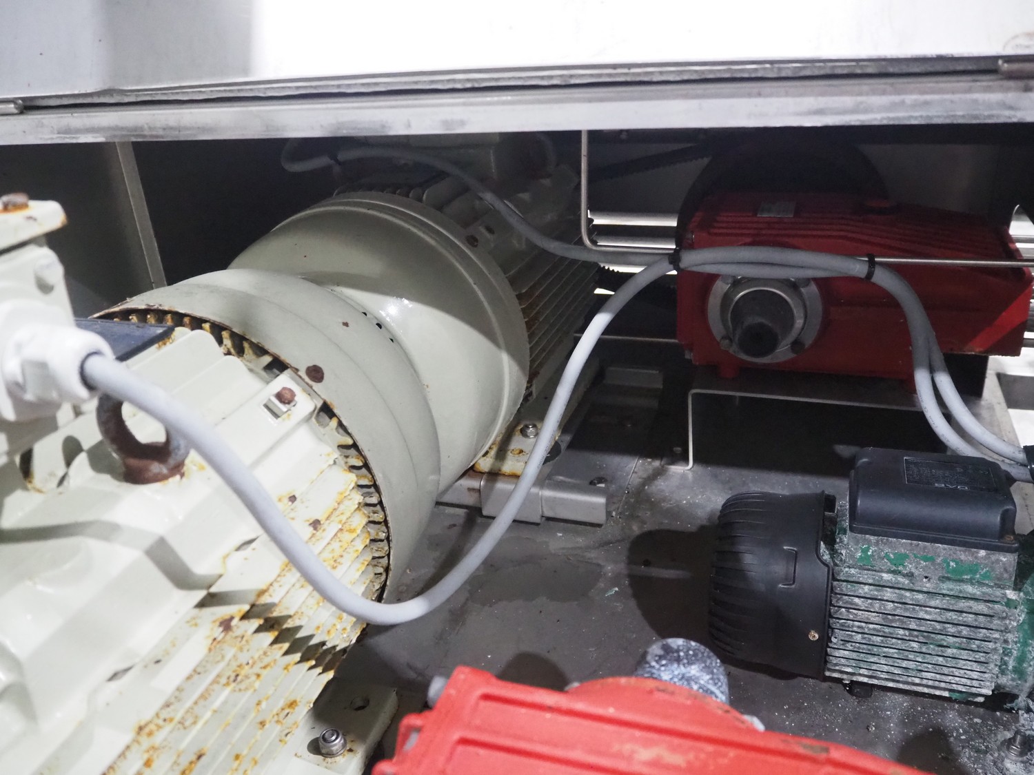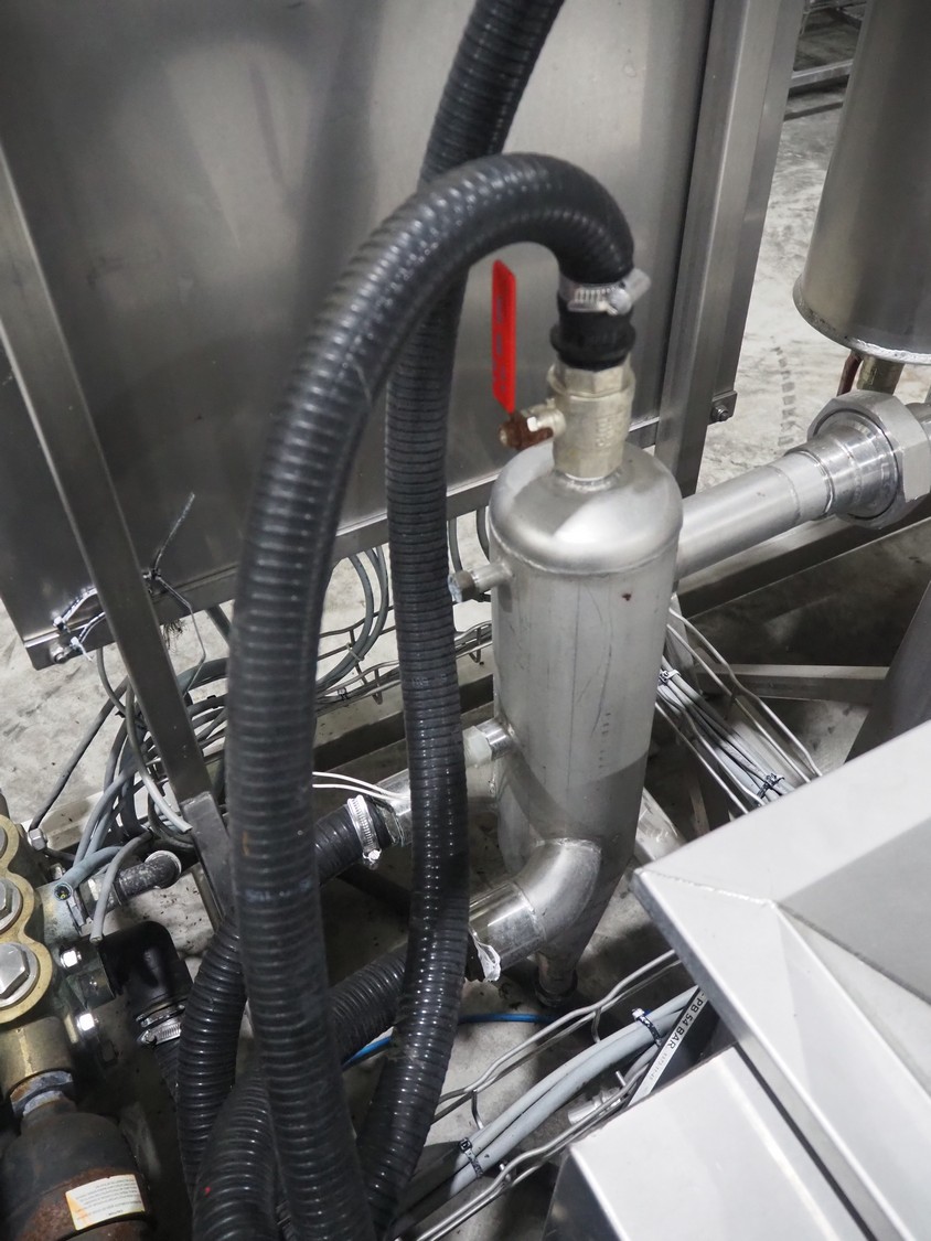 Van de Vecht de-sticker machine, 4 stations, inside dimensions: Ø 180 mm x 380 mm, total dimensions: 3200 mm x 1500 mm x 1440 mm.
