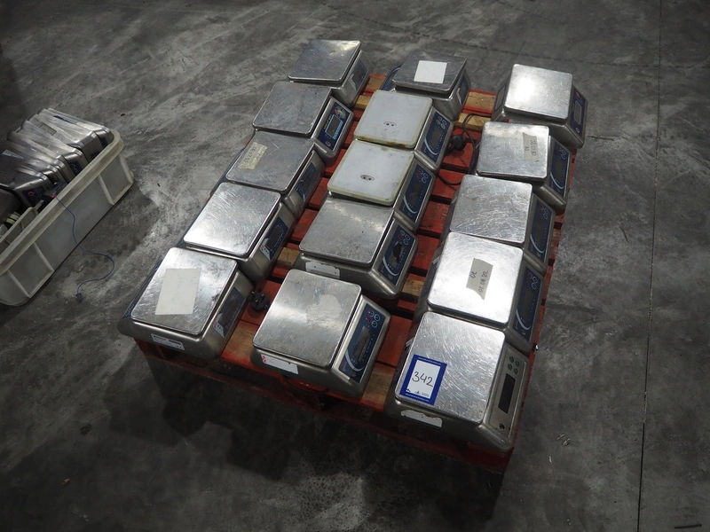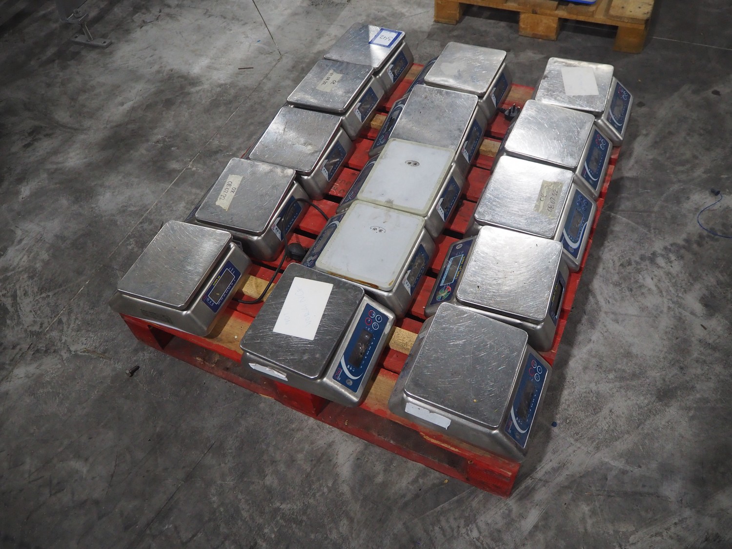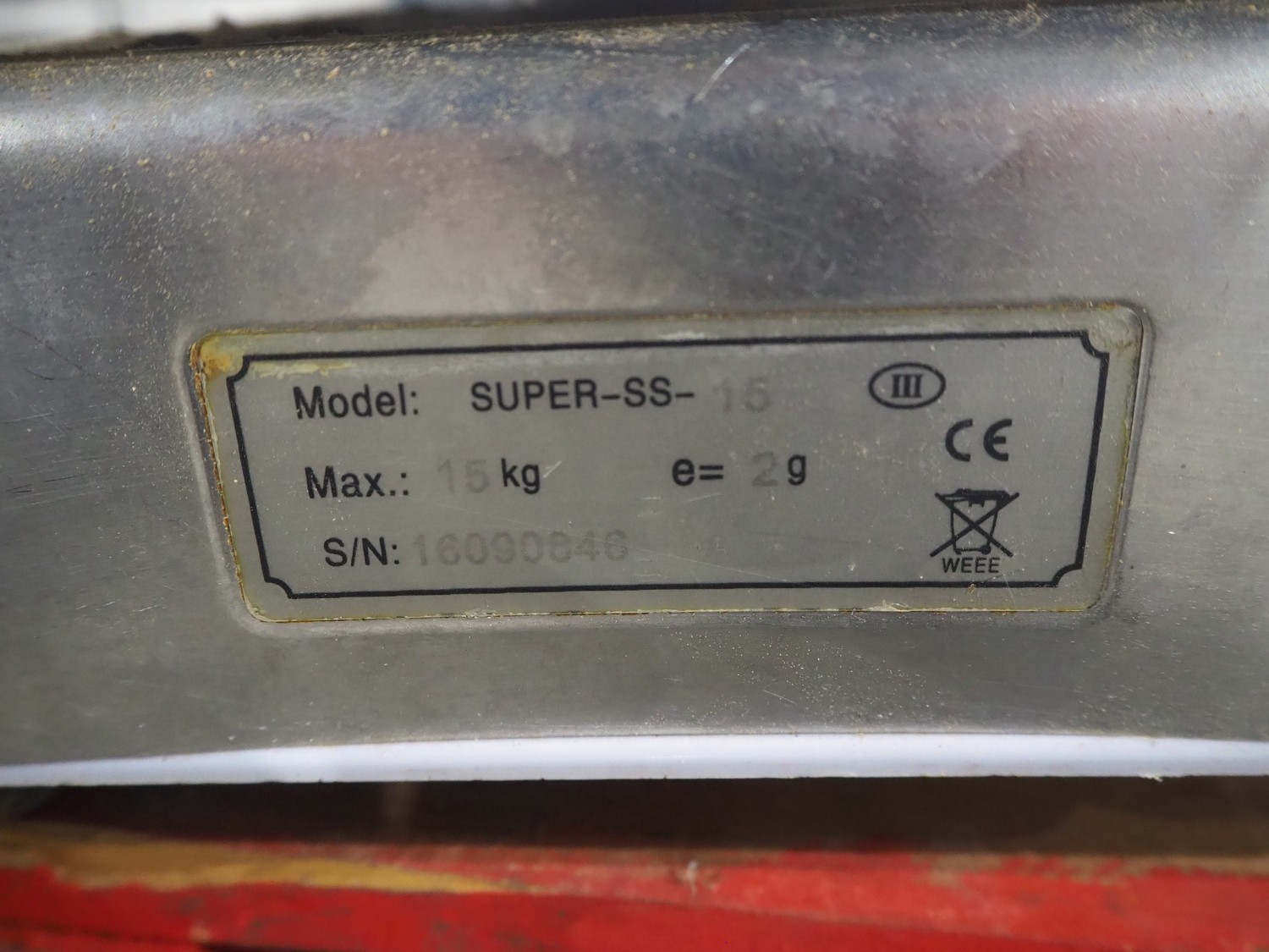 15 Baxtran weighing scales, model: SS15 CS, max: 15 kg, dimensions scale: 225 mm x 190 mm, total dimensions: 260 mm x 225 mm x 120 mm.