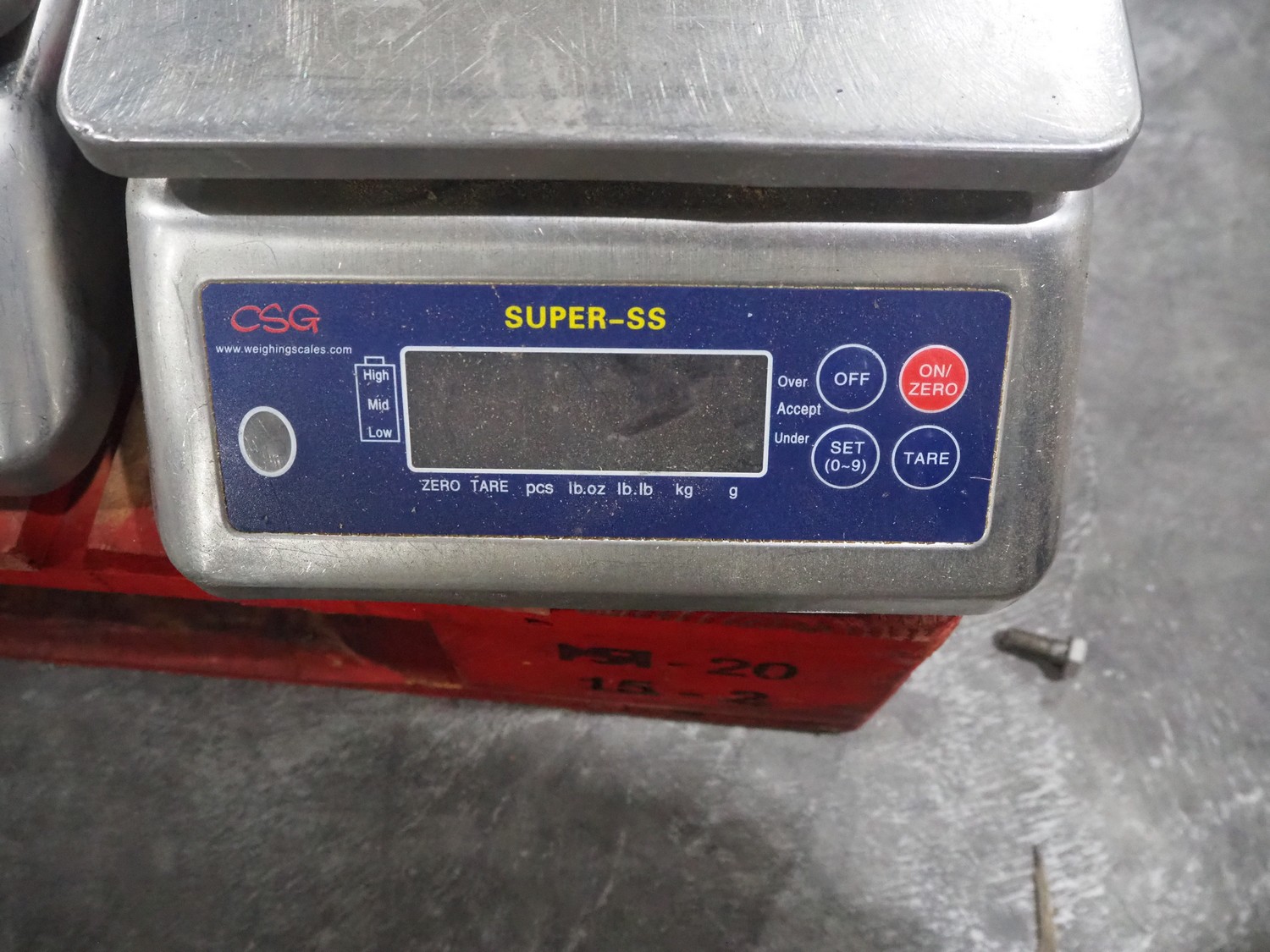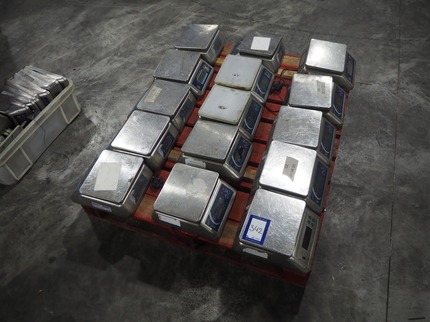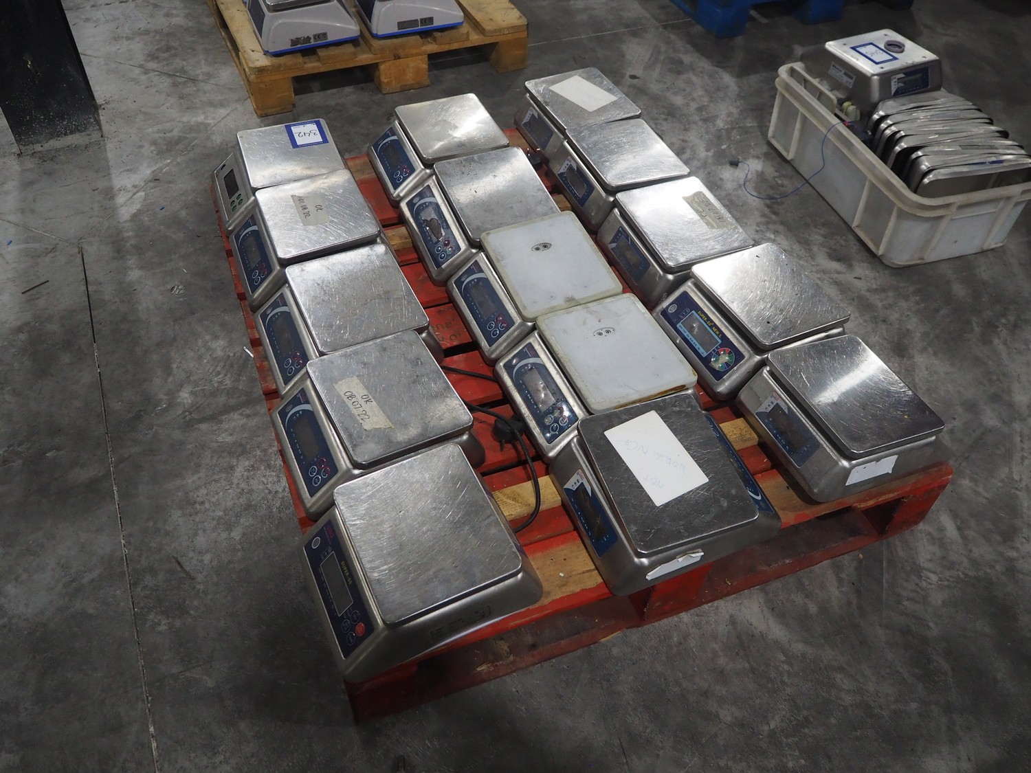 15 Baxtran weighing scales, model: SS15 CS, max: 15 kg, dimensions scale: 225 mm x 190 mm, total dimensions: 260 mm x 225 mm x 120 mm.