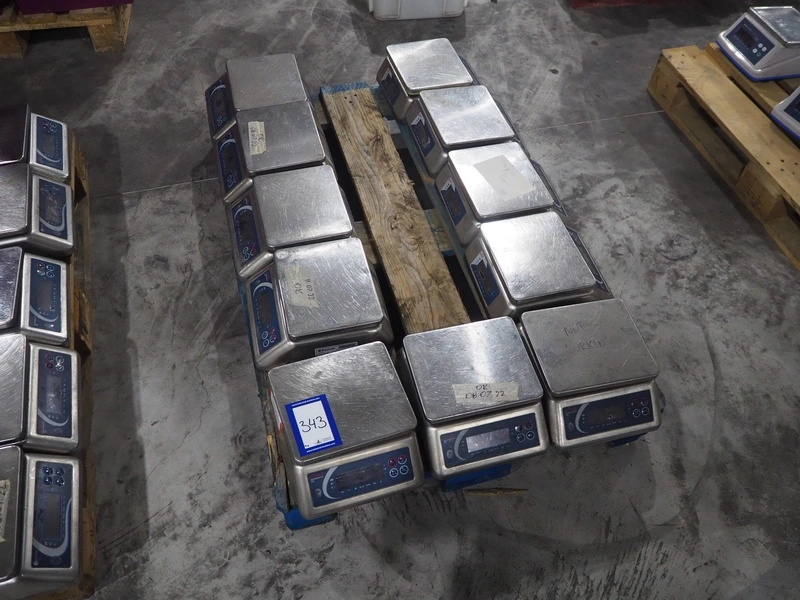 13 Baxtran weighing scales, model: SS15 CS, max: 15 kg, dimensions scale: 225 mm x 190 mm, total dimensions: 260 mm x 225 mm x 120 mm.