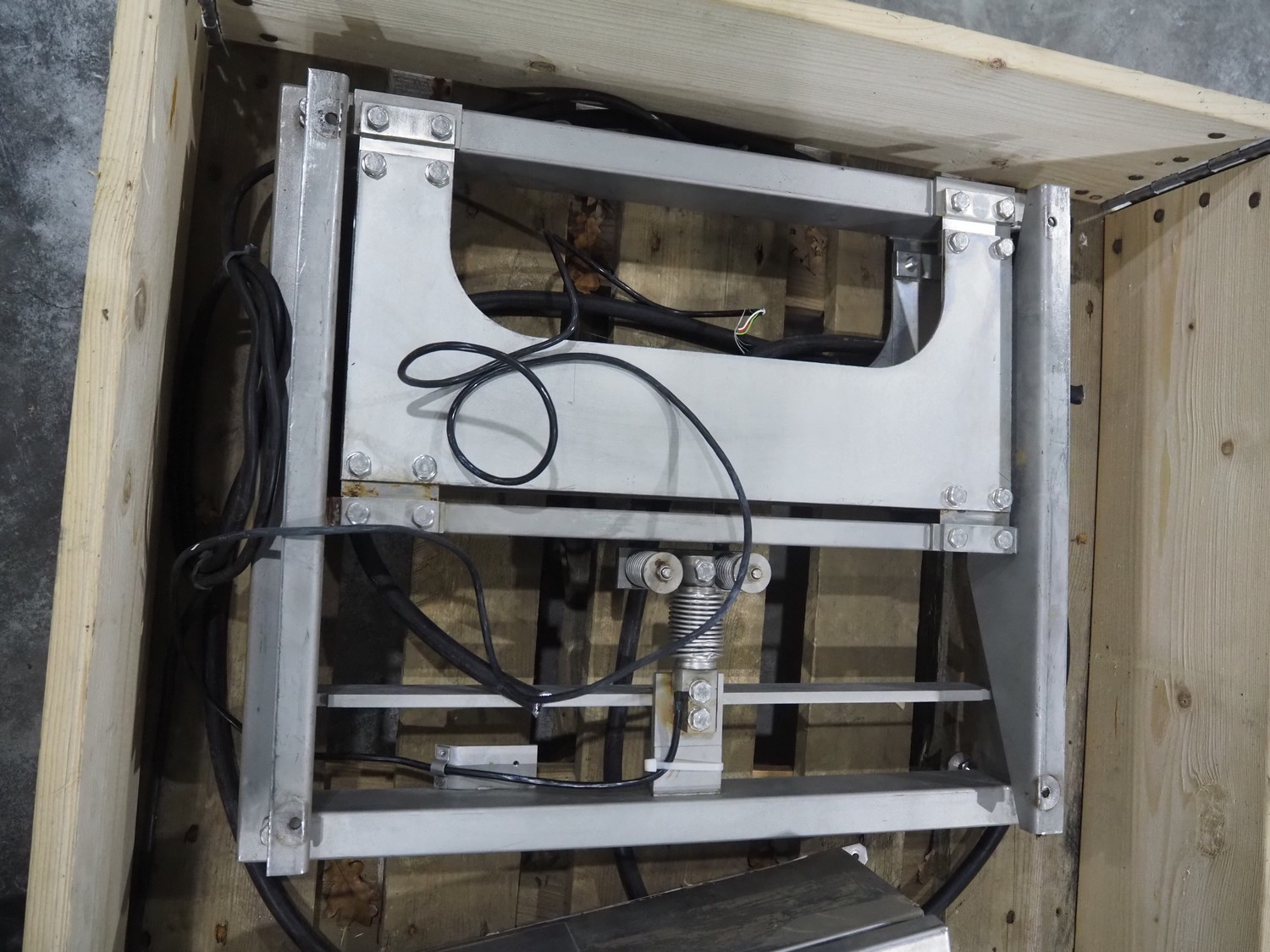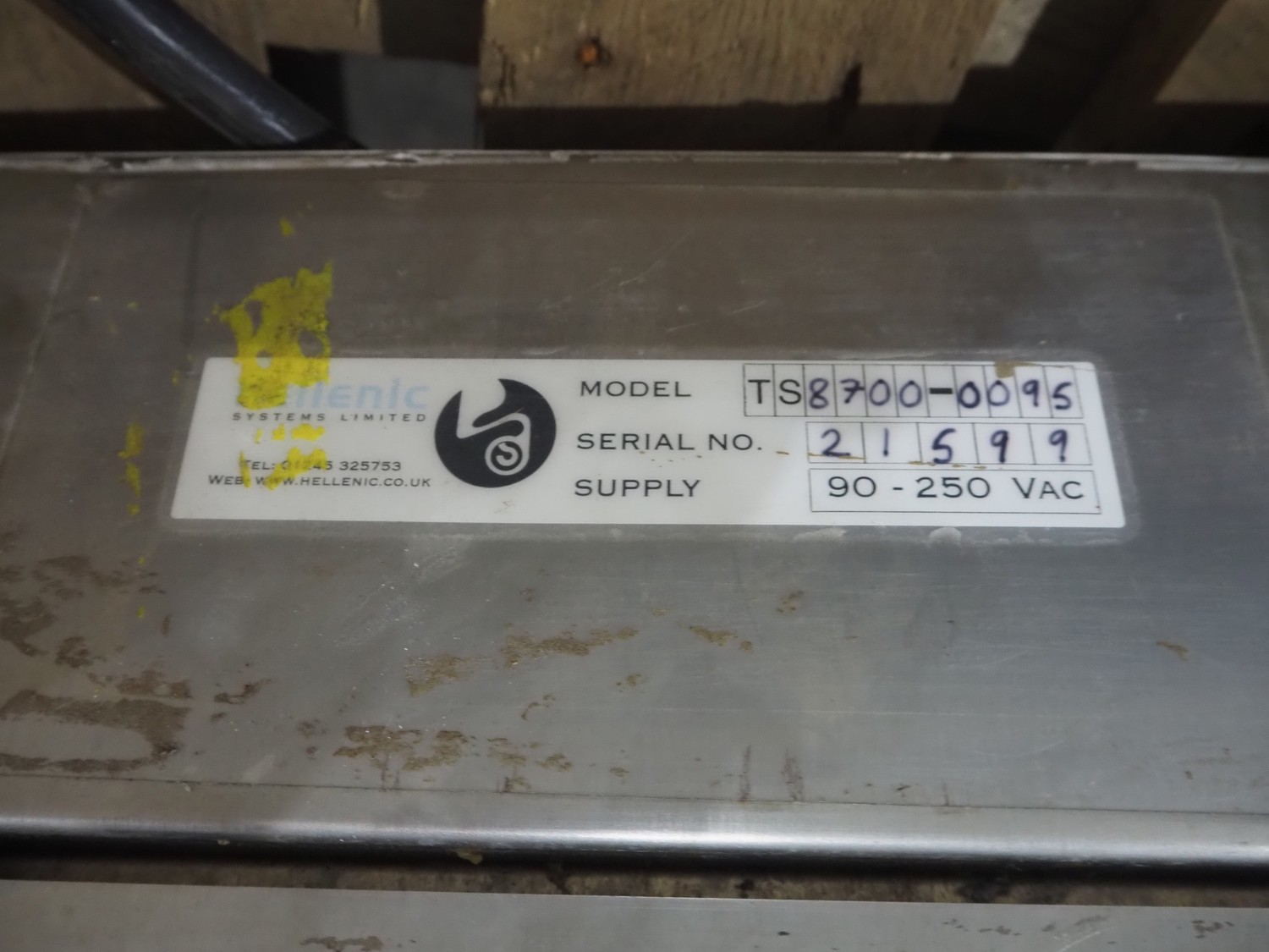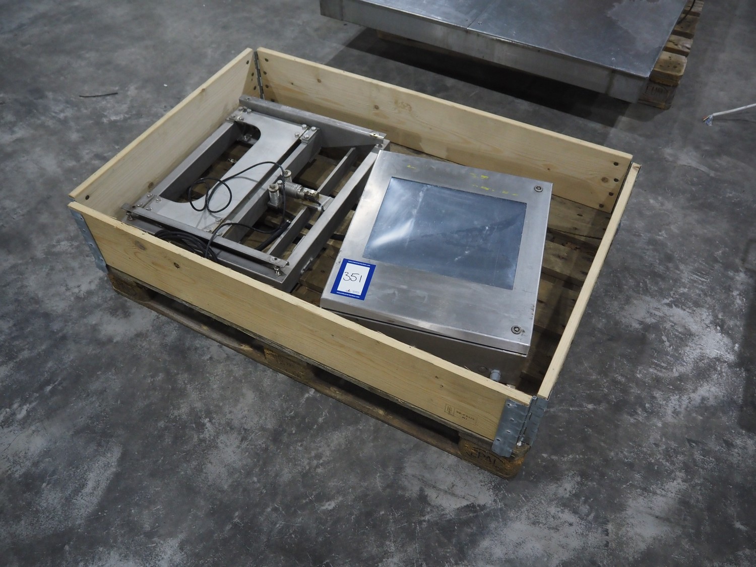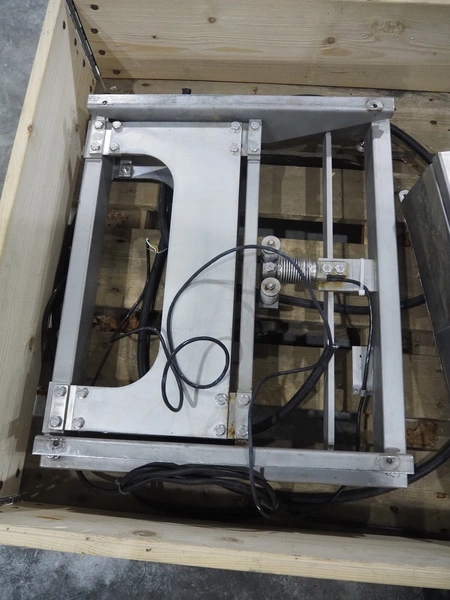 S/s weighing scale with Hellenic indicator, model indicator: TS8700, serial number: 21599, year of construction: 1995, 90/250 V, dimensions: 590 mm x 500 mm x 150 mm. Incomplete, missing scale plate.