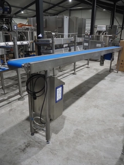 Transport belt, s/s frame, plastic belt, belt width: 200 mm, total dimensions: 4850 mm x 500 mm x 1100 mm.€ 150,000 bids15/01/2026 16:00 -