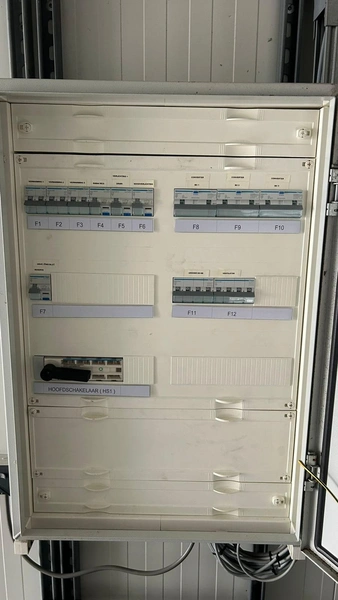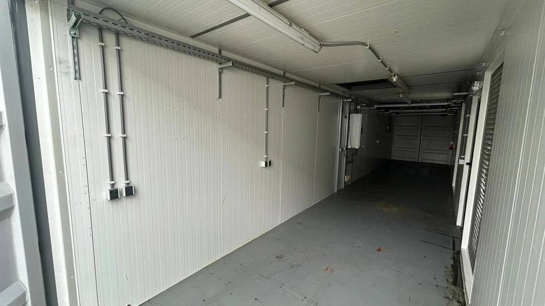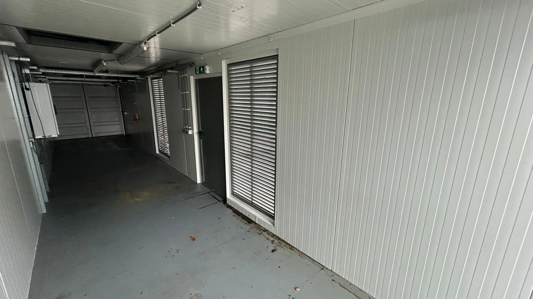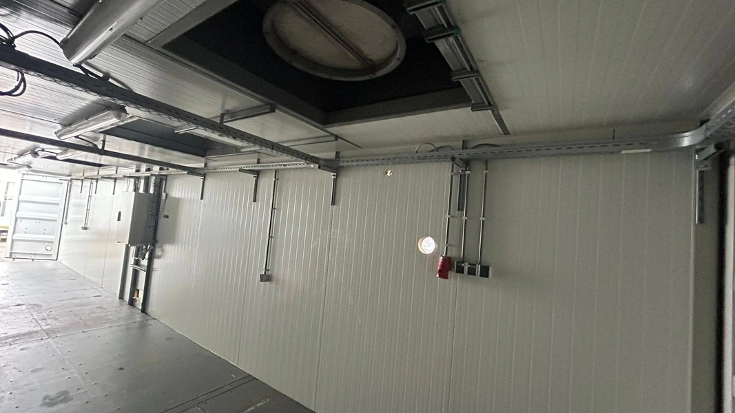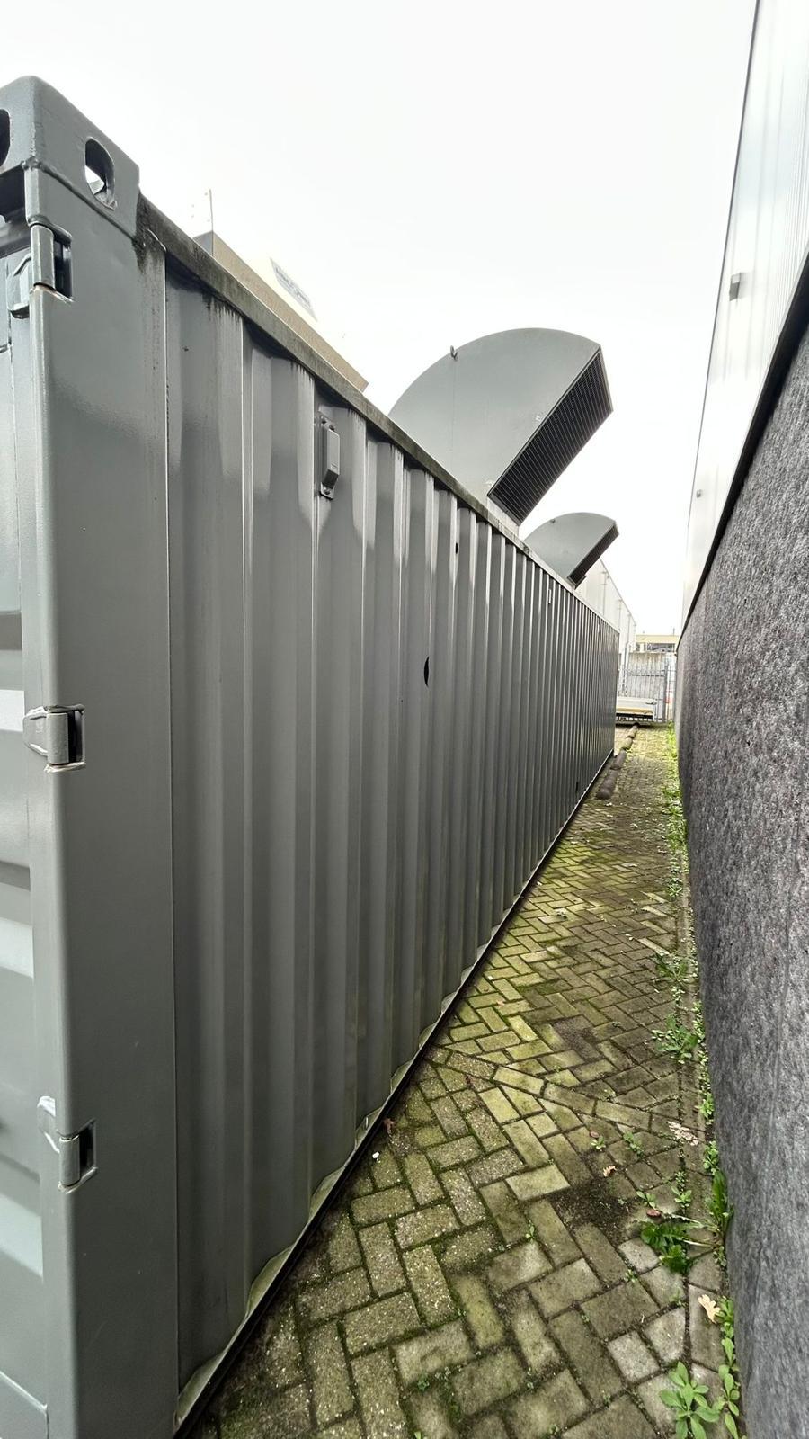Steel container used for air compressor installation, dimensions: 12150 mm x 2450 mm x 4150 mm. Lot located in Best (NL). Viewing and pick-up in consultation with Industrial Auctions BV.