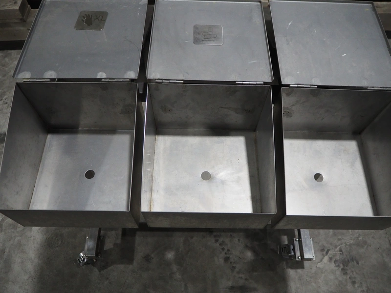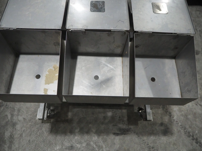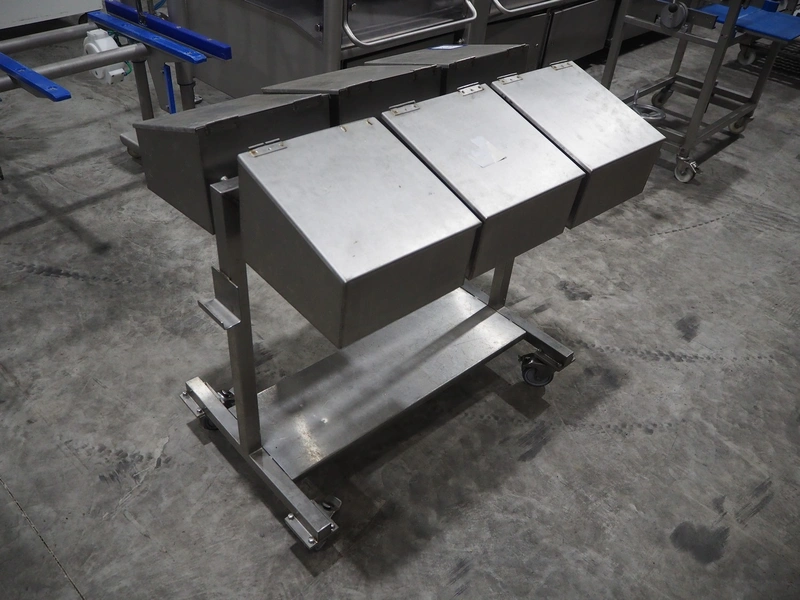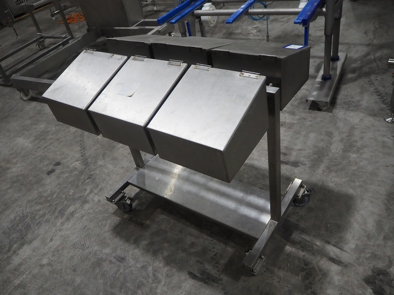 S/s trolley with 6 boxes, dimensions: 1000 mm x 750 mm x 1000 mm.