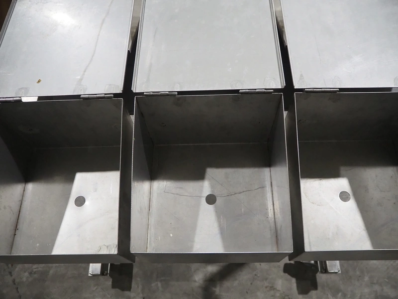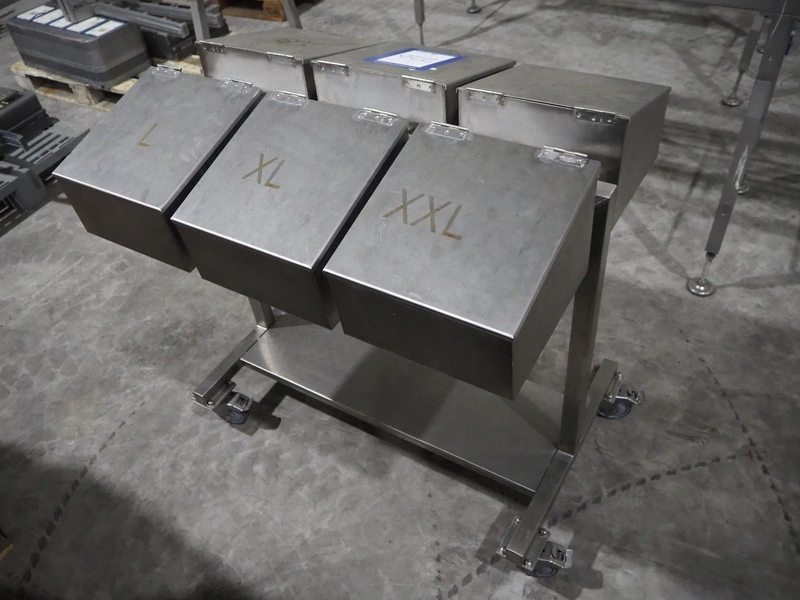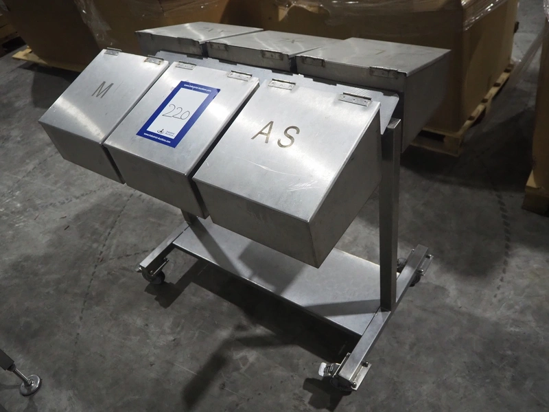 S/s trolley with 6 boxes, dimensions: 1000 mm x 750 mm x 1000 mm.