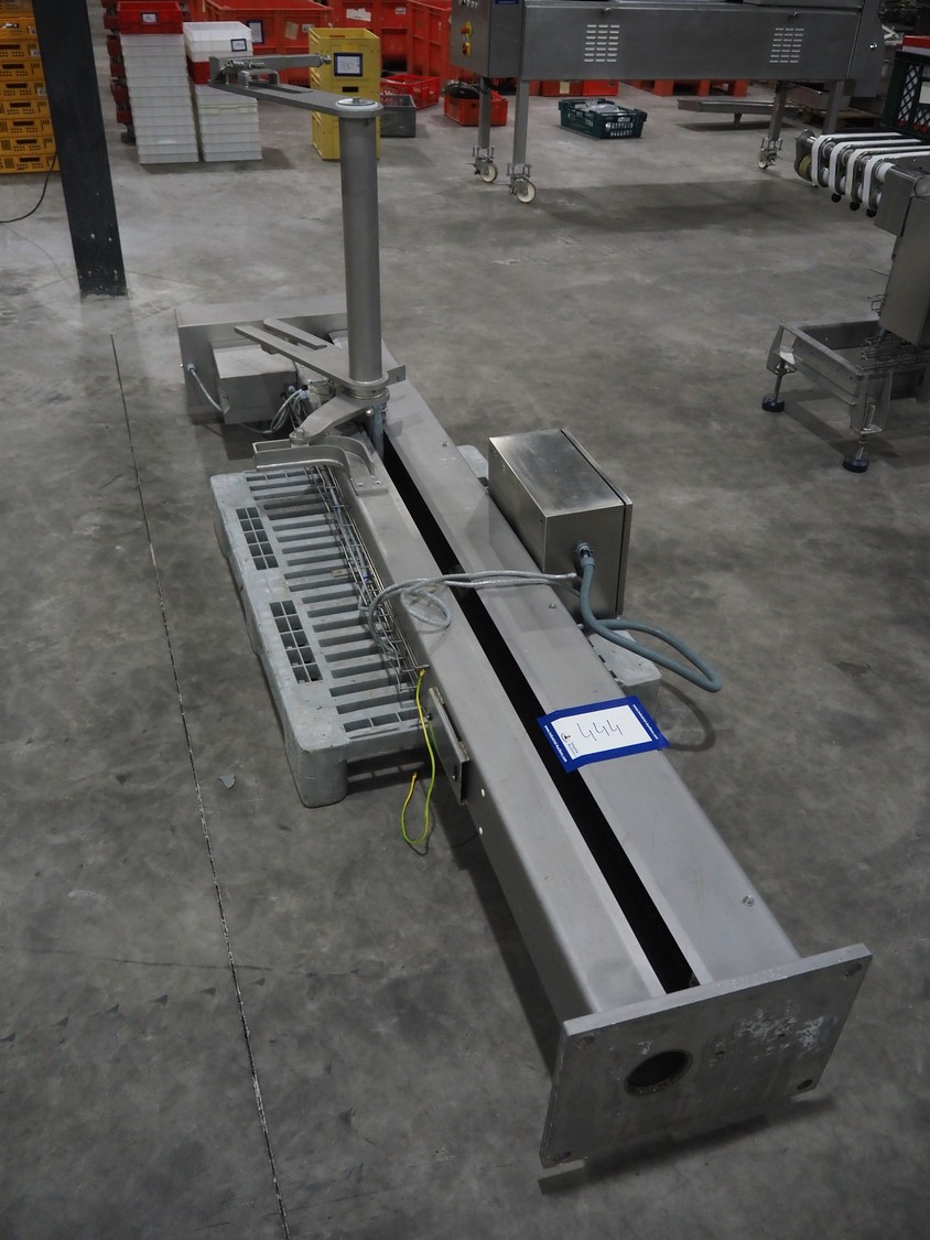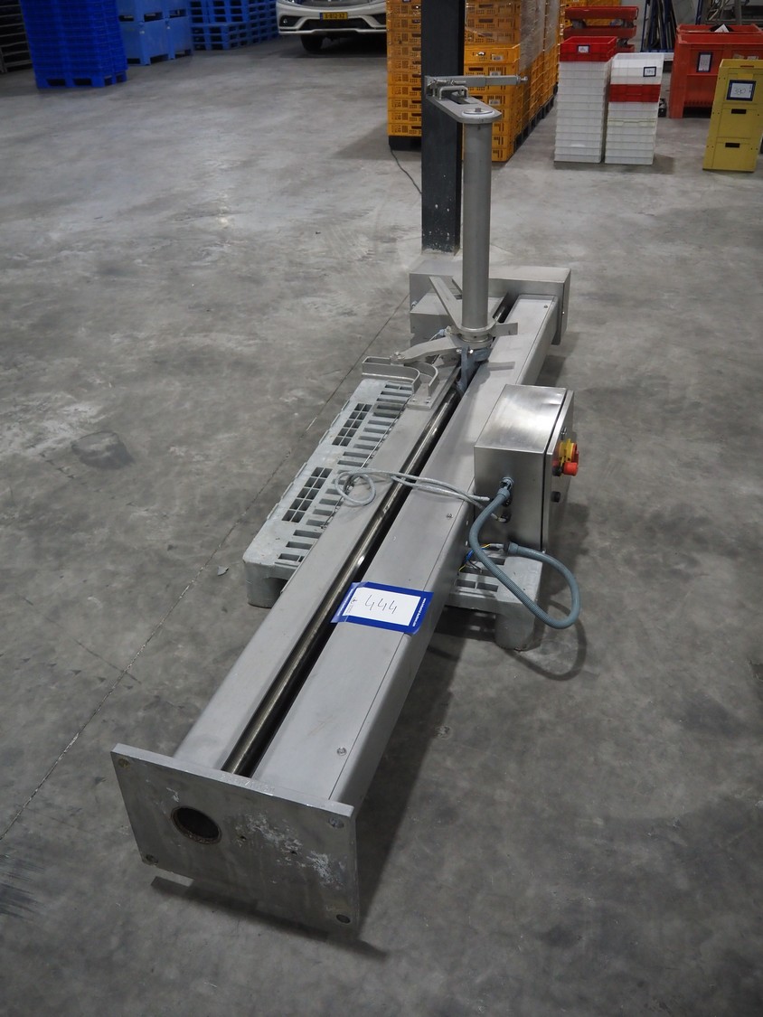 S/s lifter for meat bins, lifting height: 1700 mm, maximum capacity: 350 kg, total dimensions: 1100 mm x 900 mm x 2950 mm.