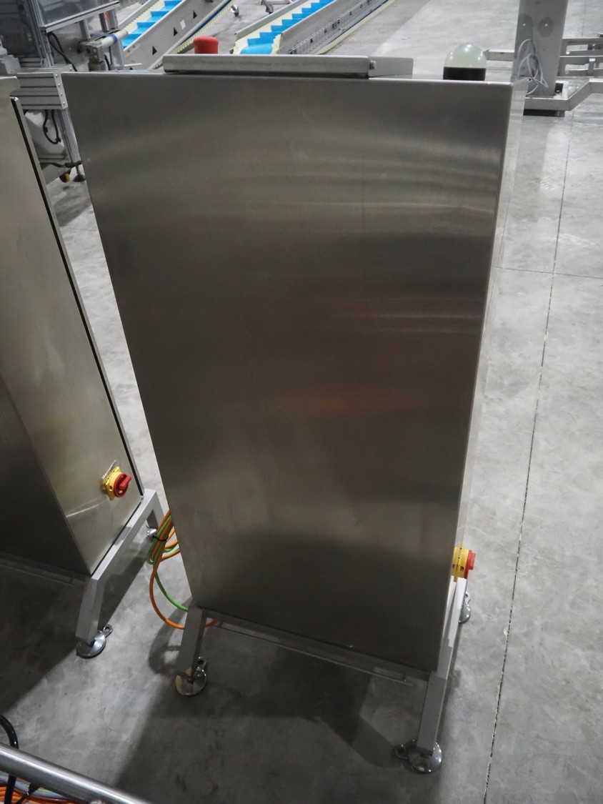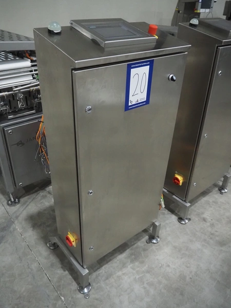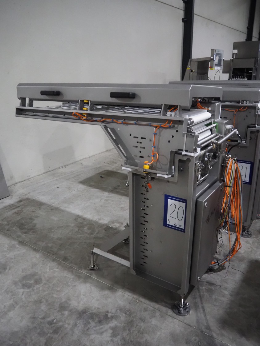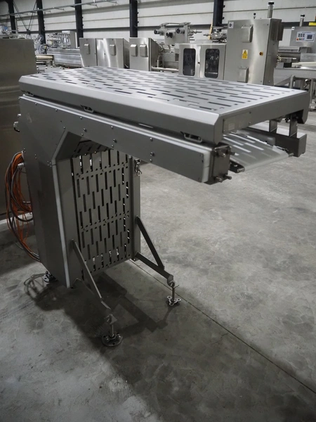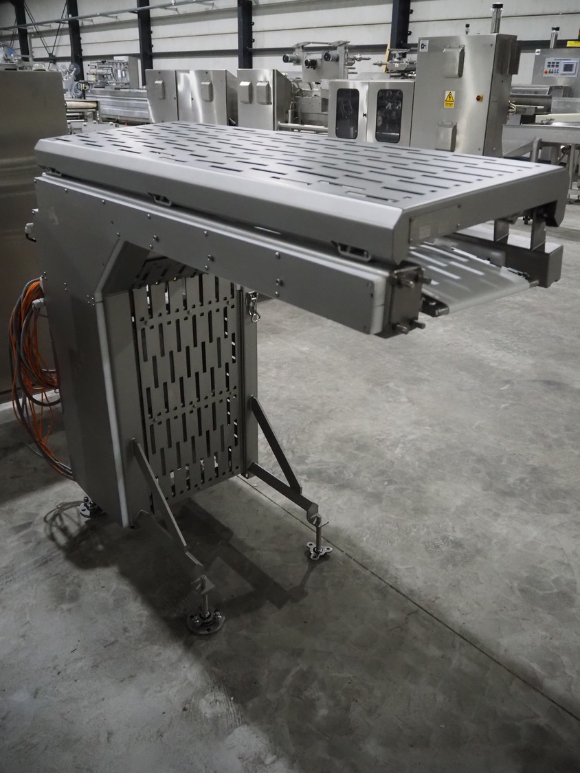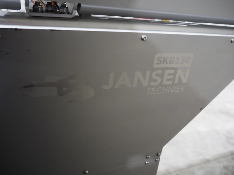 Jansen Techniek shuttle conveyor, type: SBK150, model: schietband, year of construction: 2019, plastic belt, belt width: 240 mm, total dimensions: 1400 mm x 600 mm x 1250 mm. Including switch cabinet, dimensions: 700 mm x 500 mm x 1250.