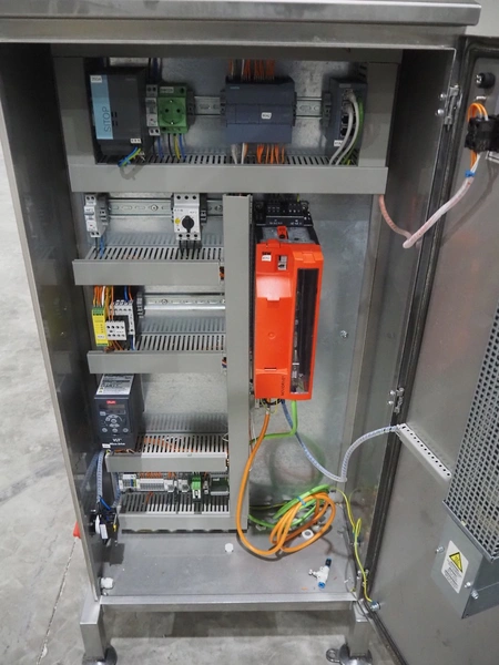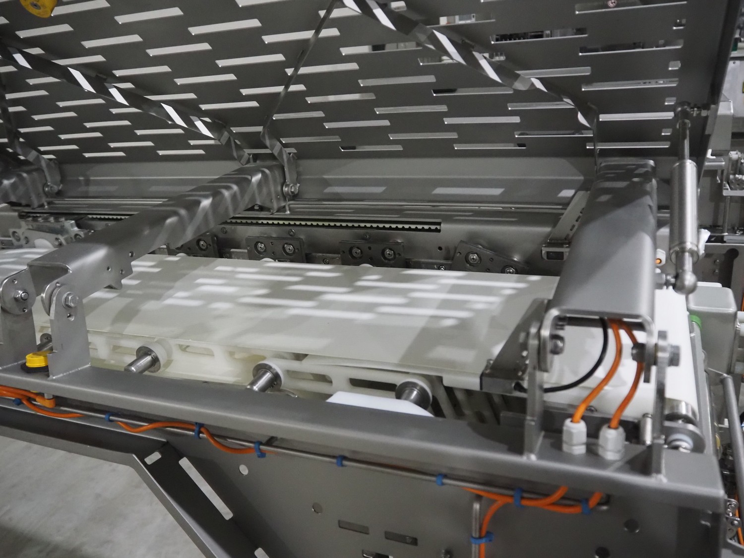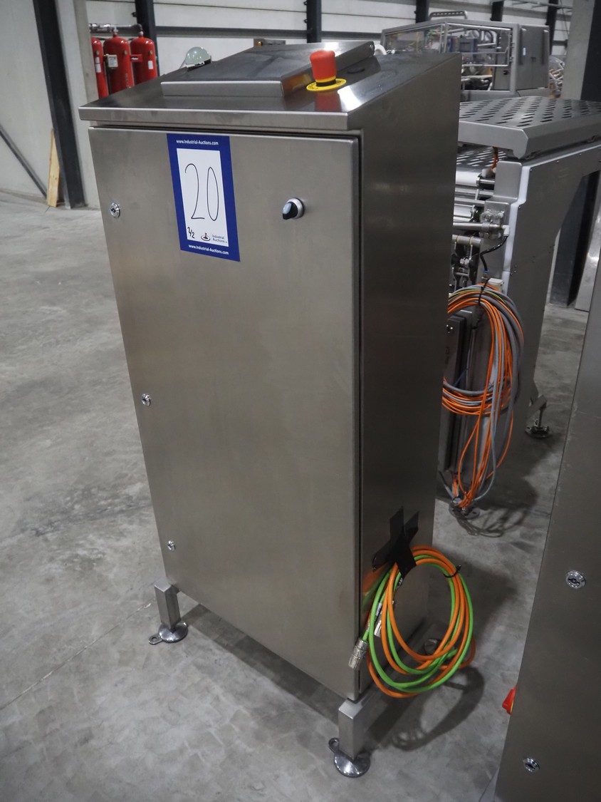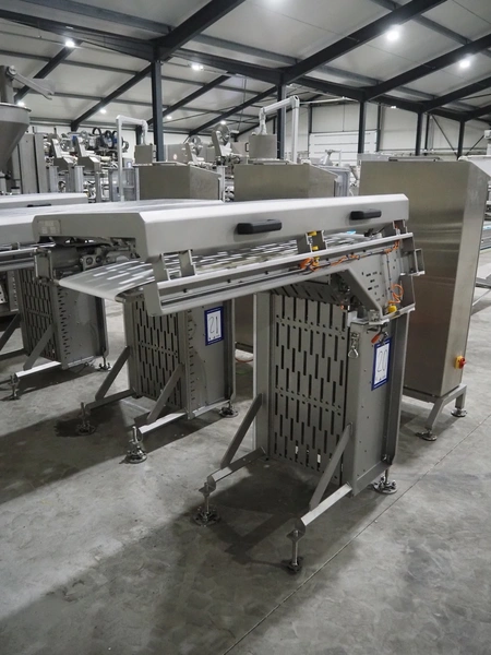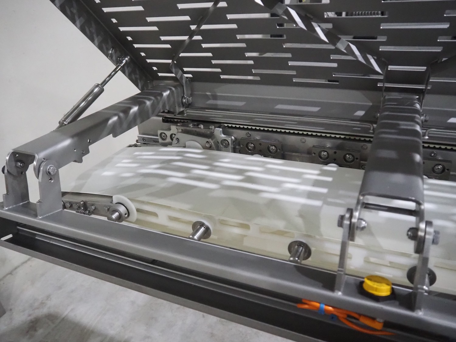 Jansen Techniek shuttle conveyor, type: SBK150, model: schietband, year of construction: 2019, plastic belt, belt width: 240 mm, total dimensions: 1400 mm x 600 mm x 1250 mm. Including switch cabinet, dimensions: 700 mm x 500 mm x 1250.
